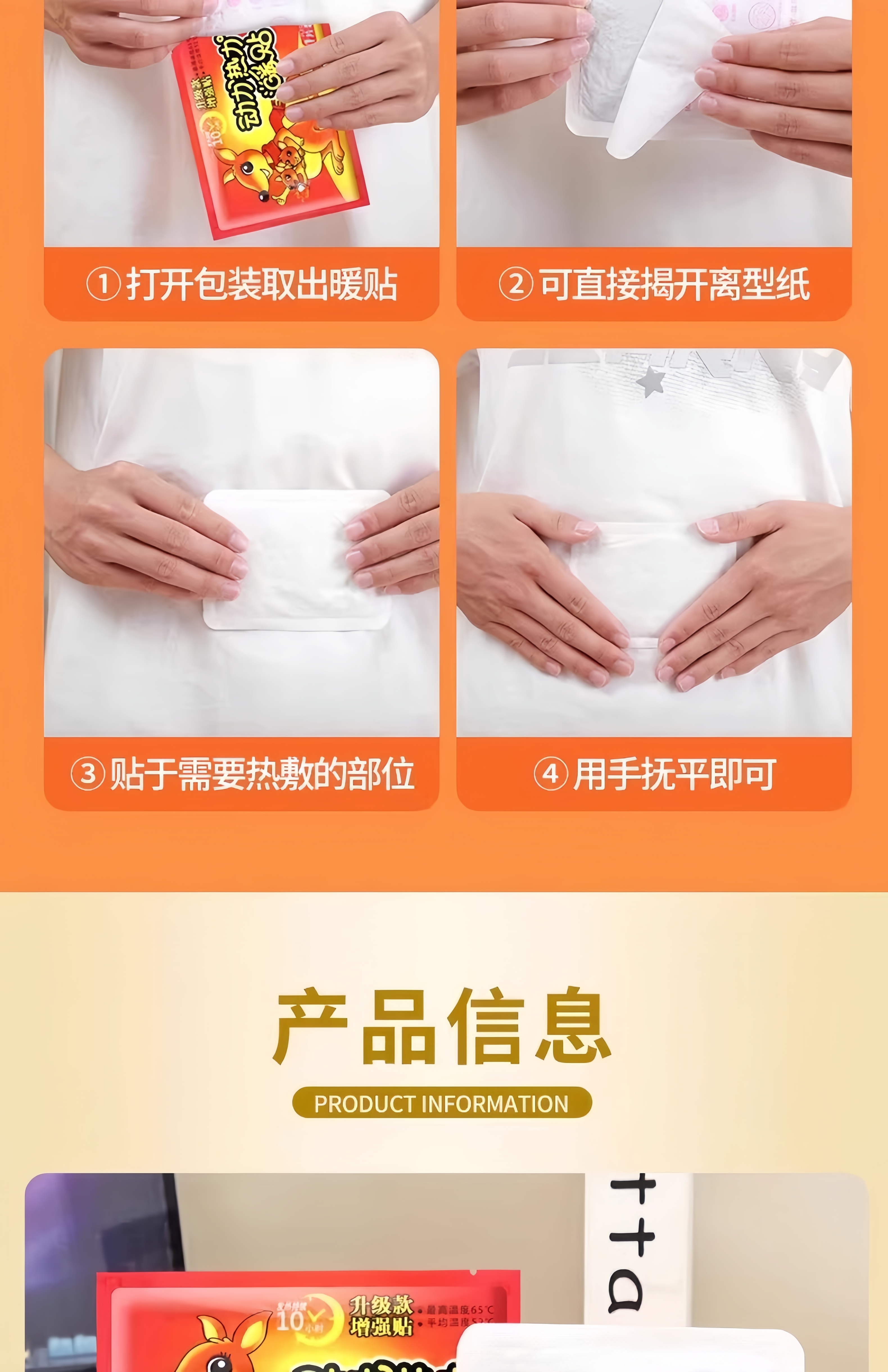 锐洲袋鼠暖贴宝宝贴自发热贴暖身贴女生用冬天24小时升温持续10h 增强型-20片装送10片【共发30片】