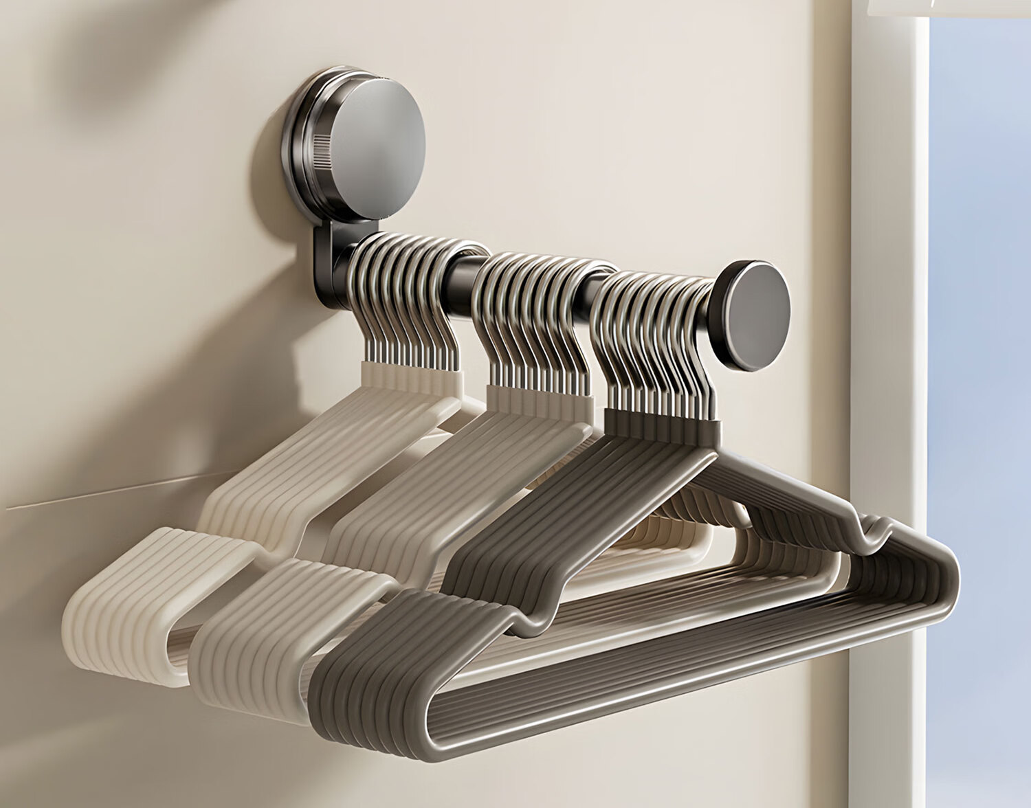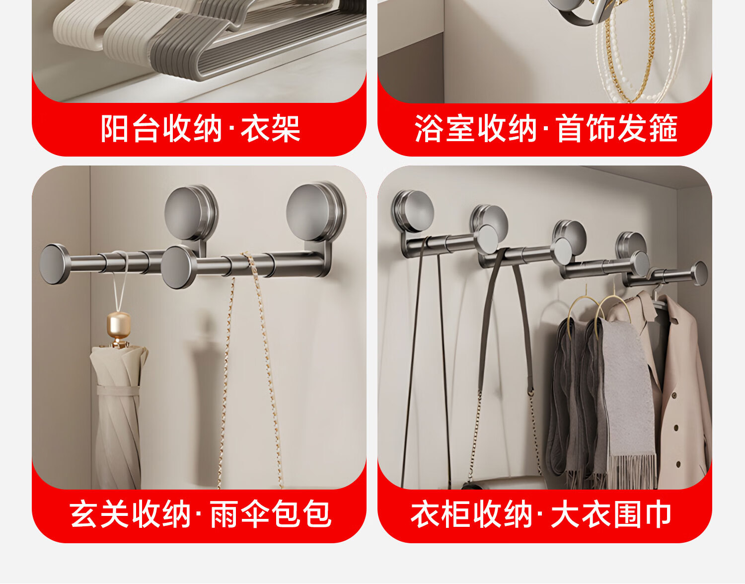 吱凡日本吸盘阳台衣架收纳神器免打孔家用多功能伸缩挂衣架子墙上壁挂 【吸盘可伸缩】1个装枪灰【掉落包赔】