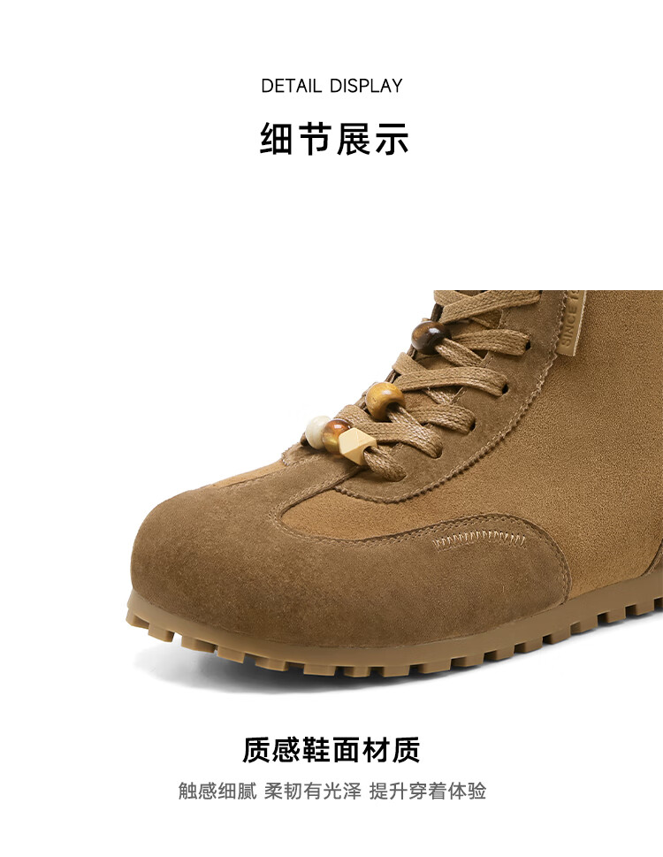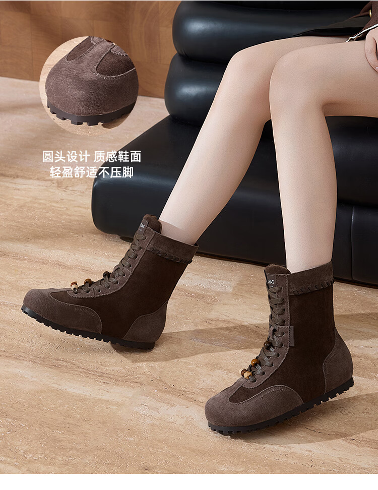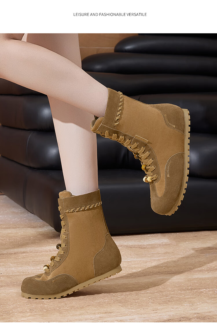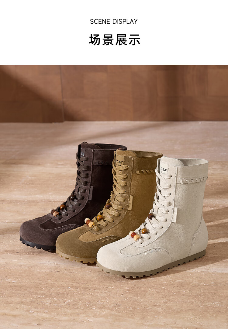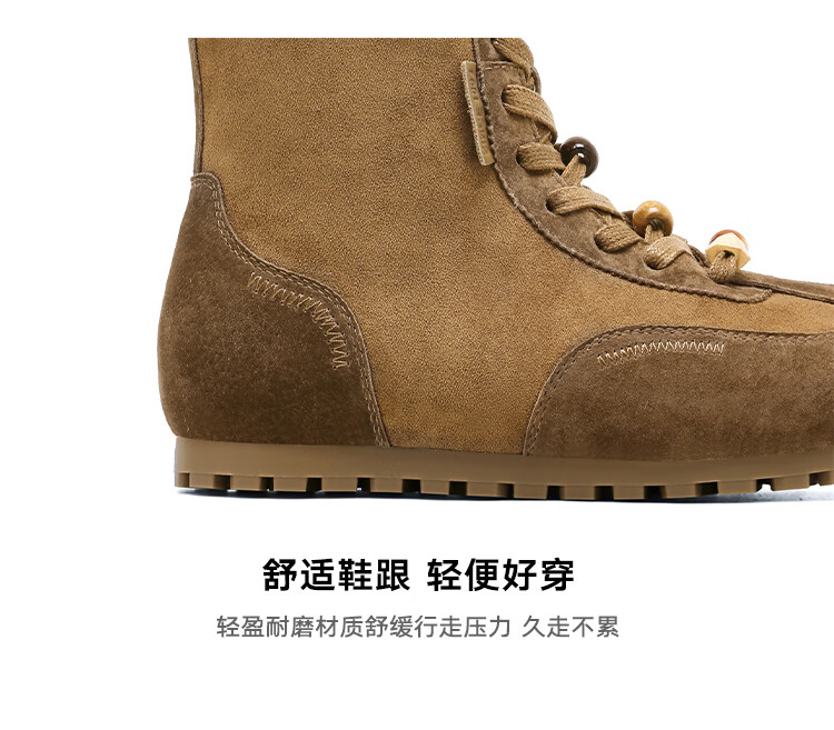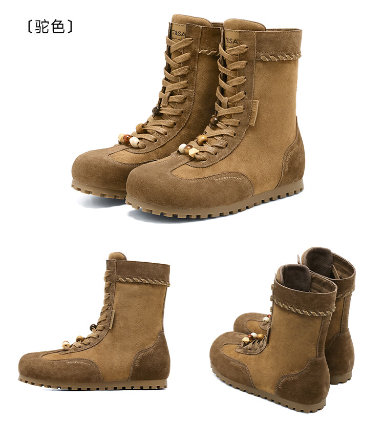 星期六短靴女款2025新款秋季咖色复古靴子西部工装马丁靴绒面女靴 杏色 【潮流百搭】厚底3cm 35