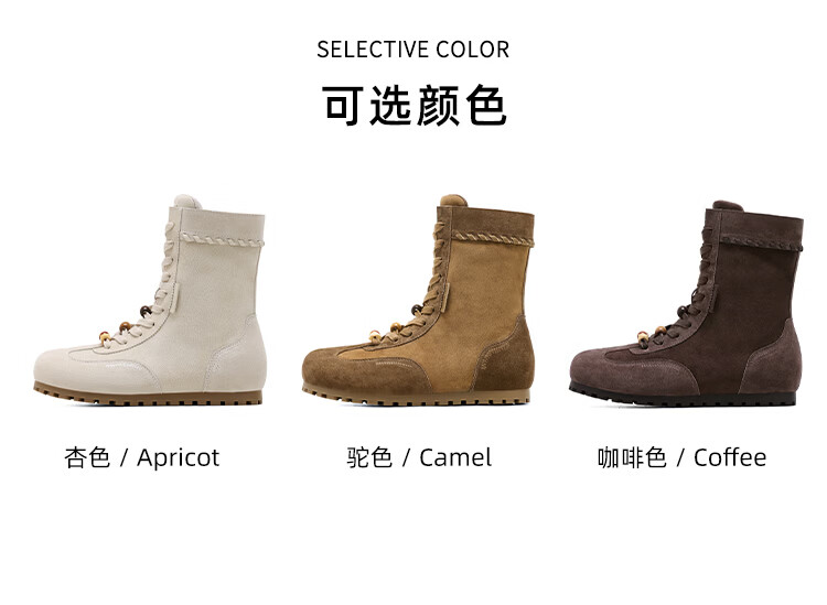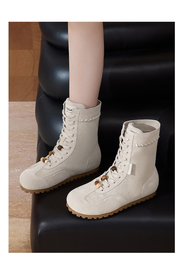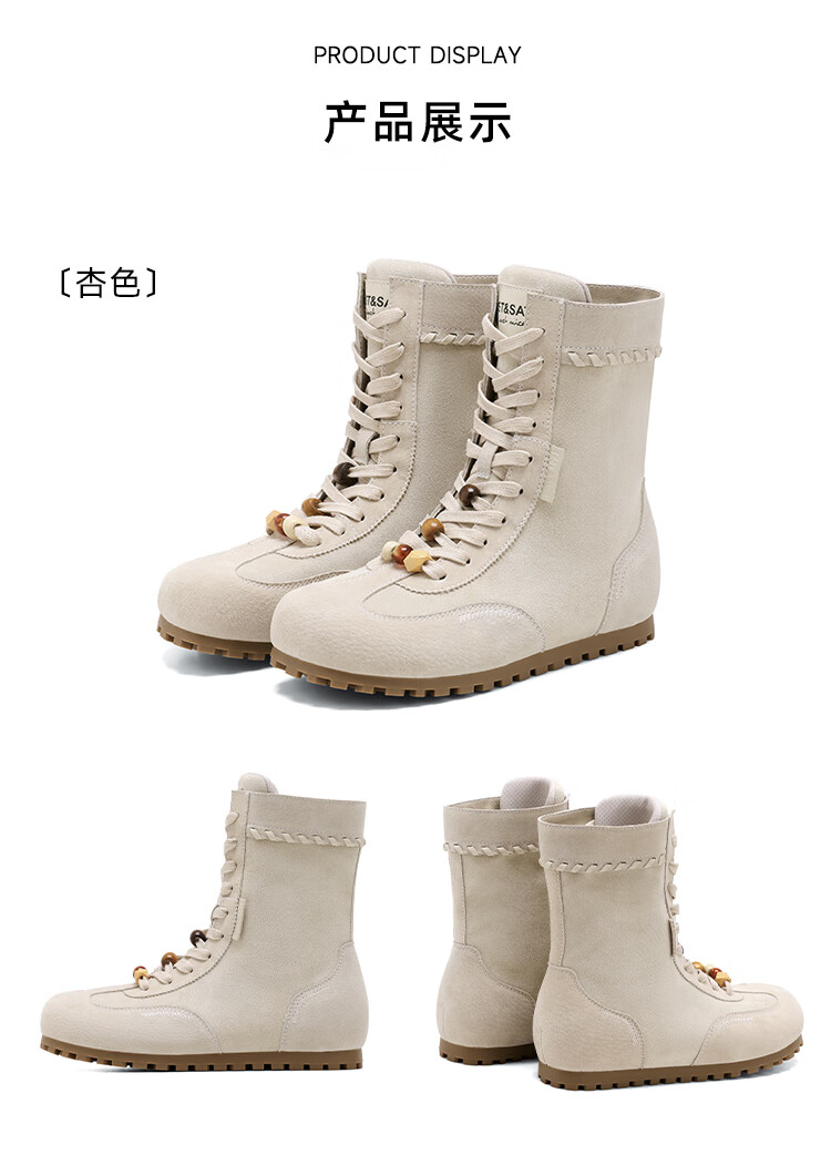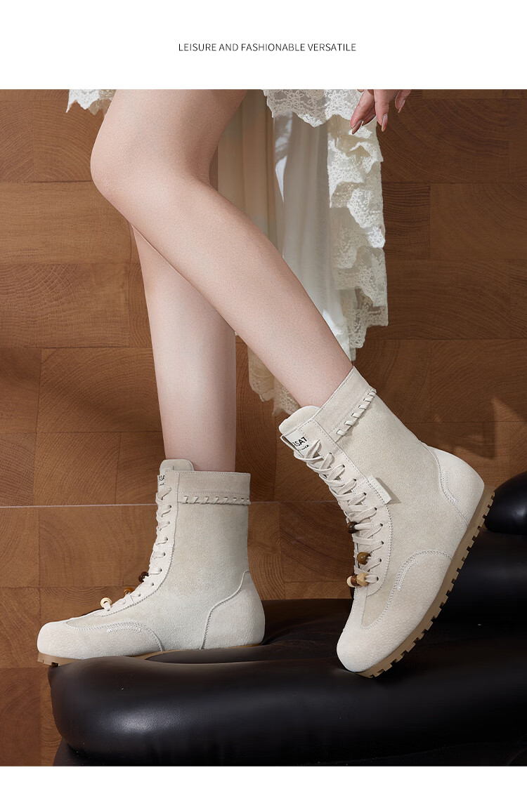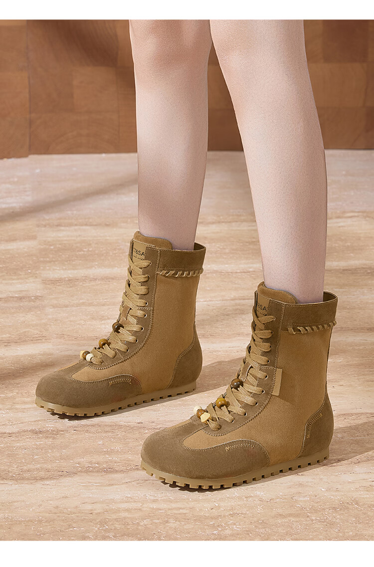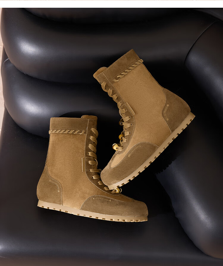 星期六短靴女款2025新款秋季咖色复古靴子西部工装马丁靴绒面女靴 杏色 【潮流百搭】厚底3cm 35