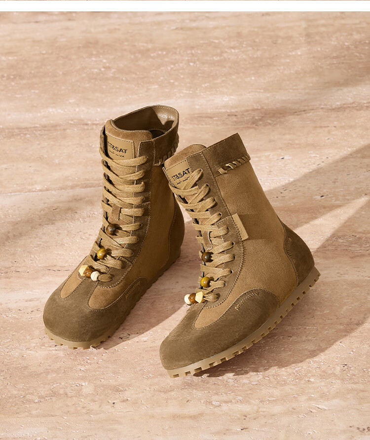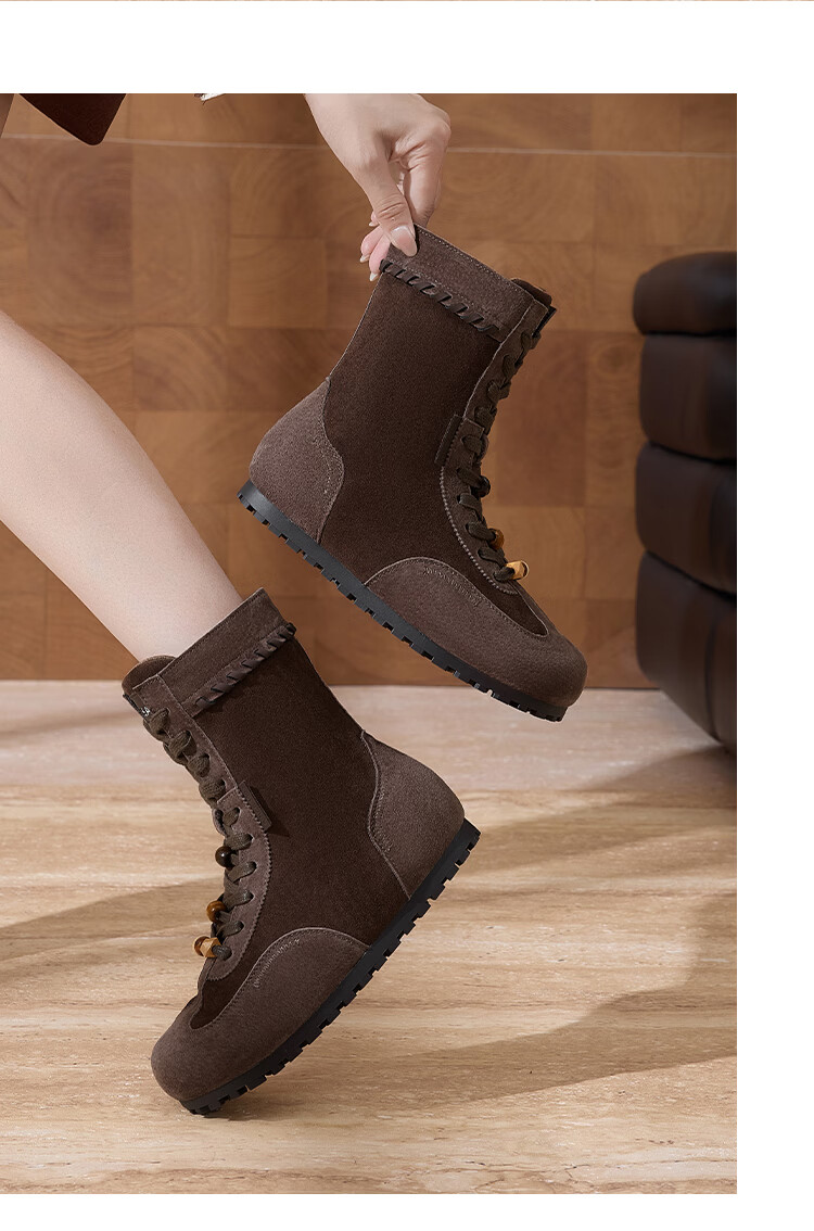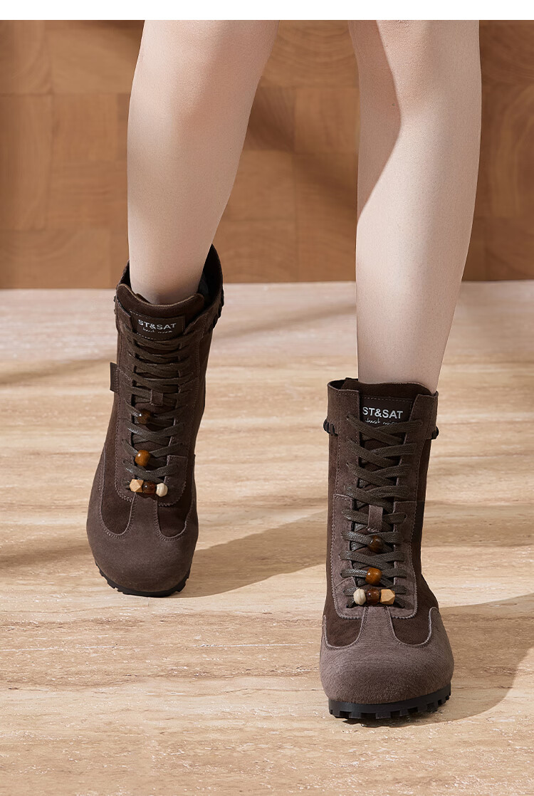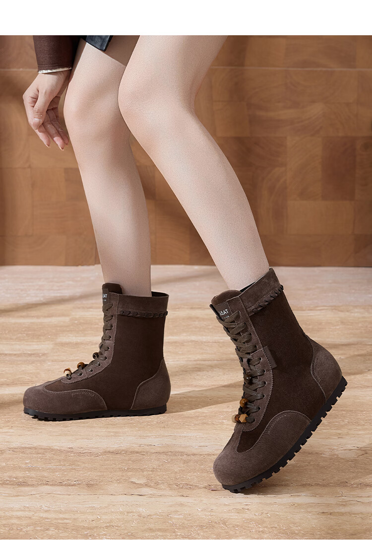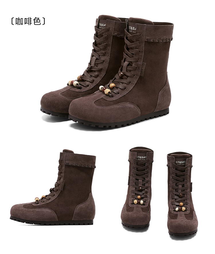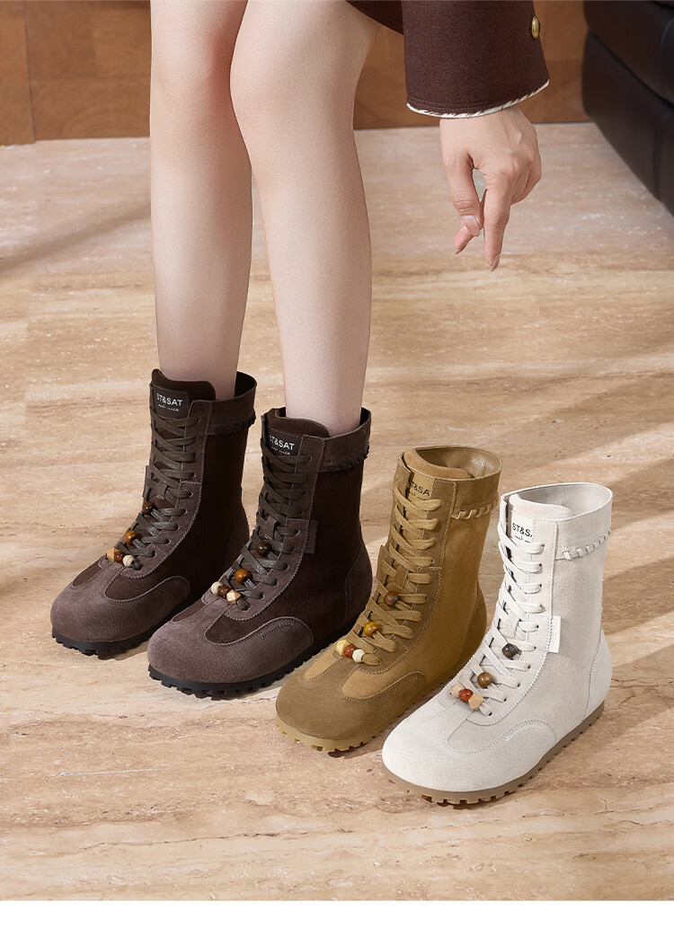 星期六短靴女款2025新款秋季咖色复古靴子西部工装马丁靴绒面女靴 杏色 【潮流百搭】厚底3cm 35