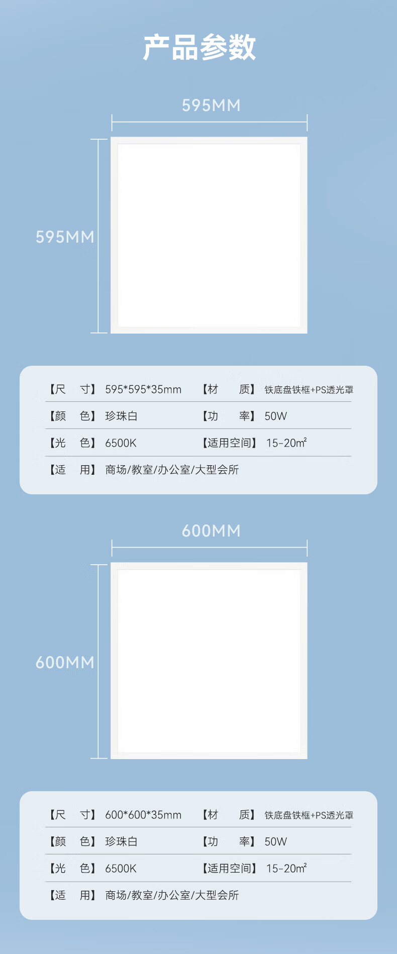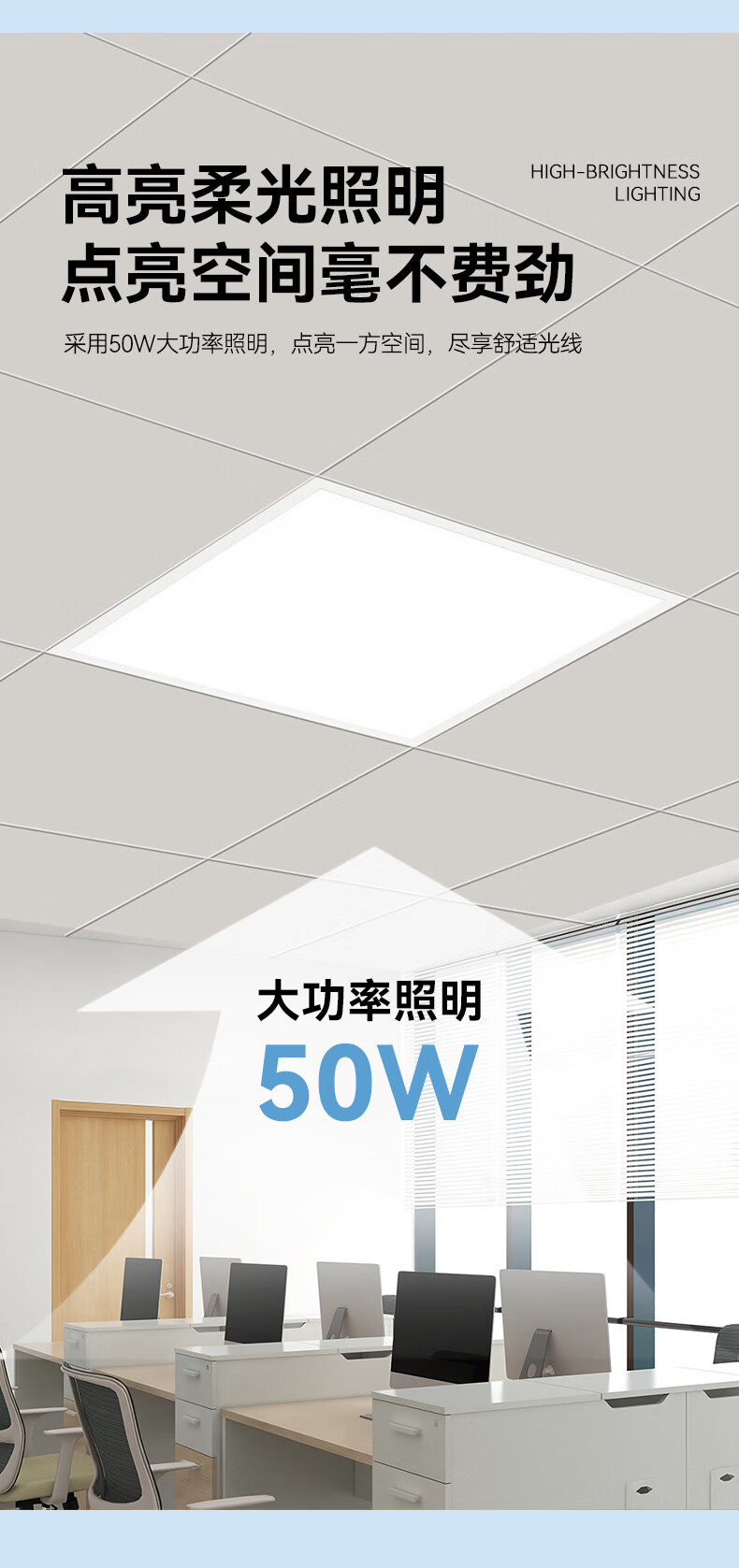 阳光照明 集成顶LED平板灯 600x600工程办公室面板灯 政府补贴灯具 【6只起售 物流包装】600x600丨50w