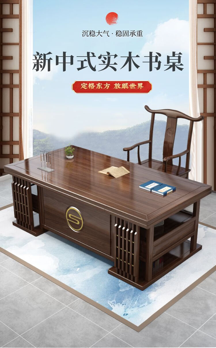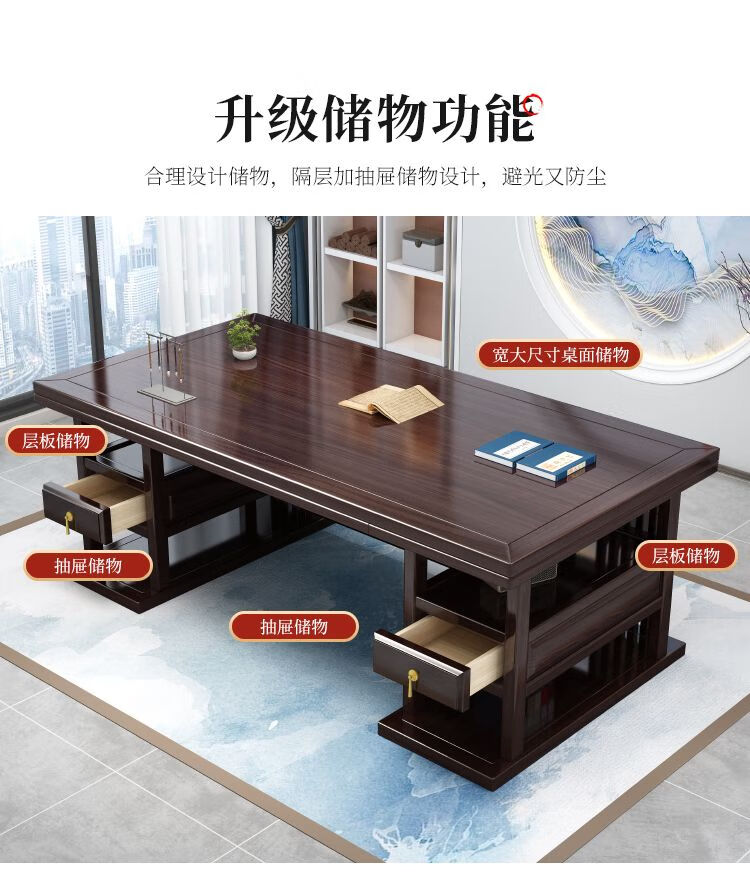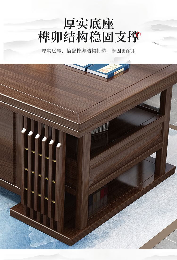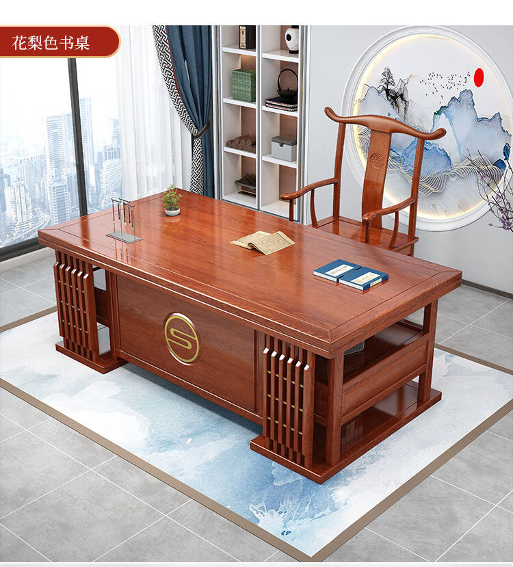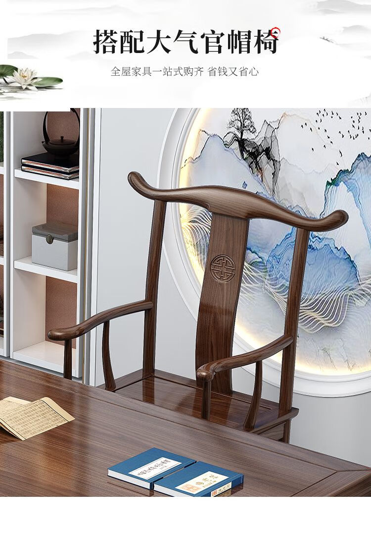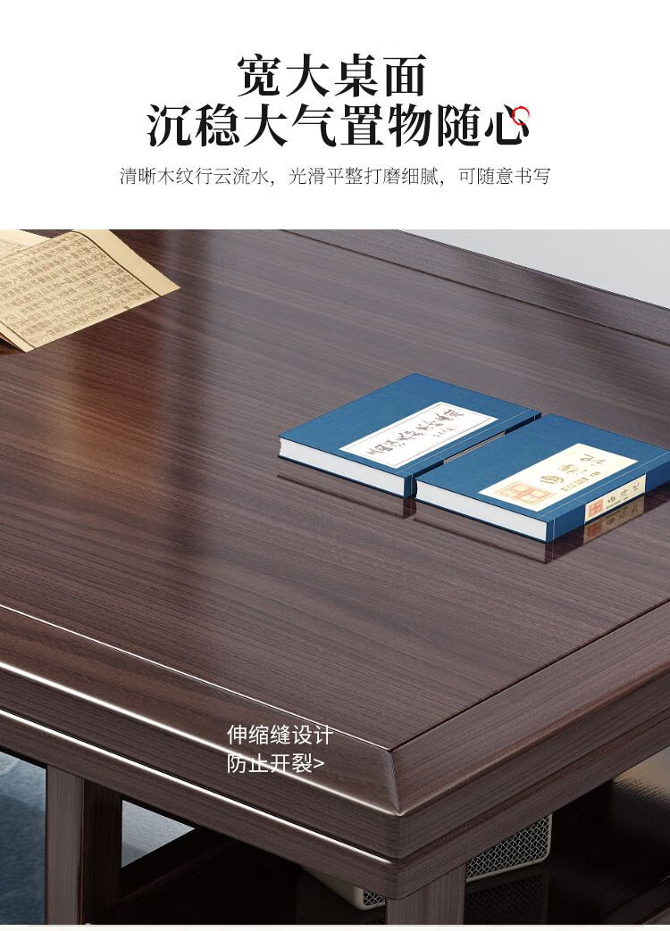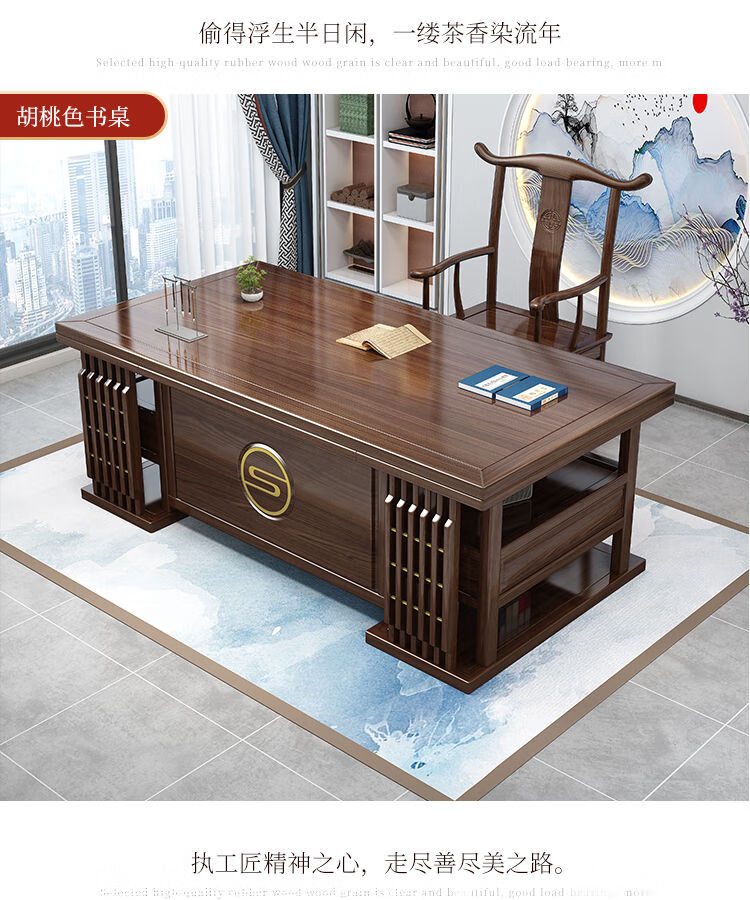 倘然之家实木办公桌中式书桌椅组合仿古典家用老板桌茶桌书房书法中医诊桌 祥云胡桃色1.6+单桌