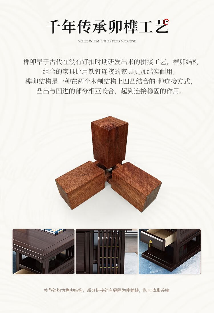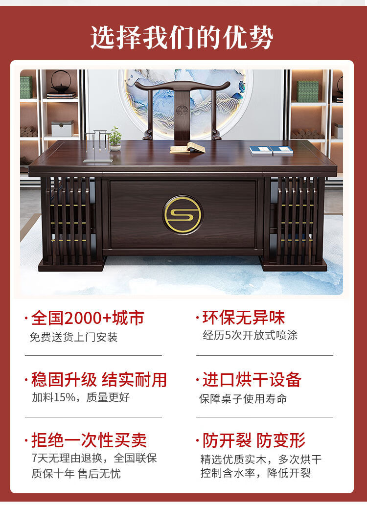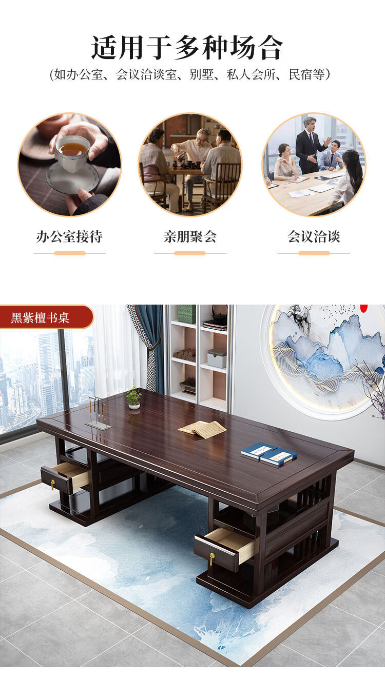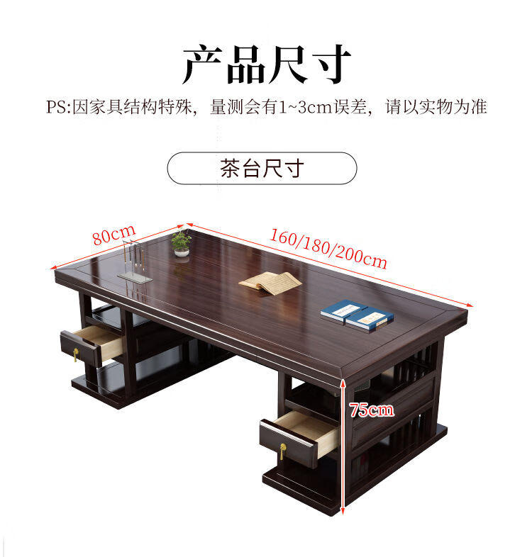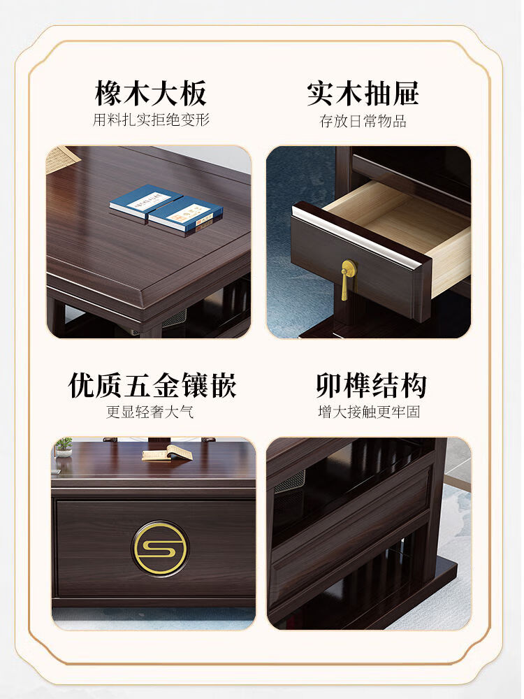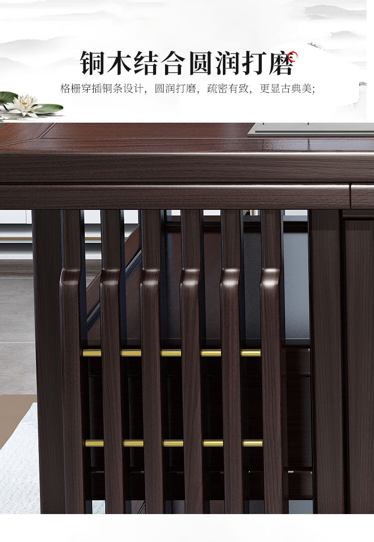 倘然之家实木办公桌中式书桌椅组合仿古典家用老板桌茶桌书房书法中医诊桌 祥云胡桃色1.6+单桌