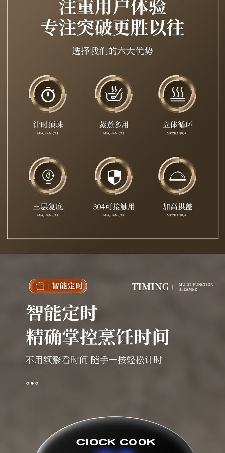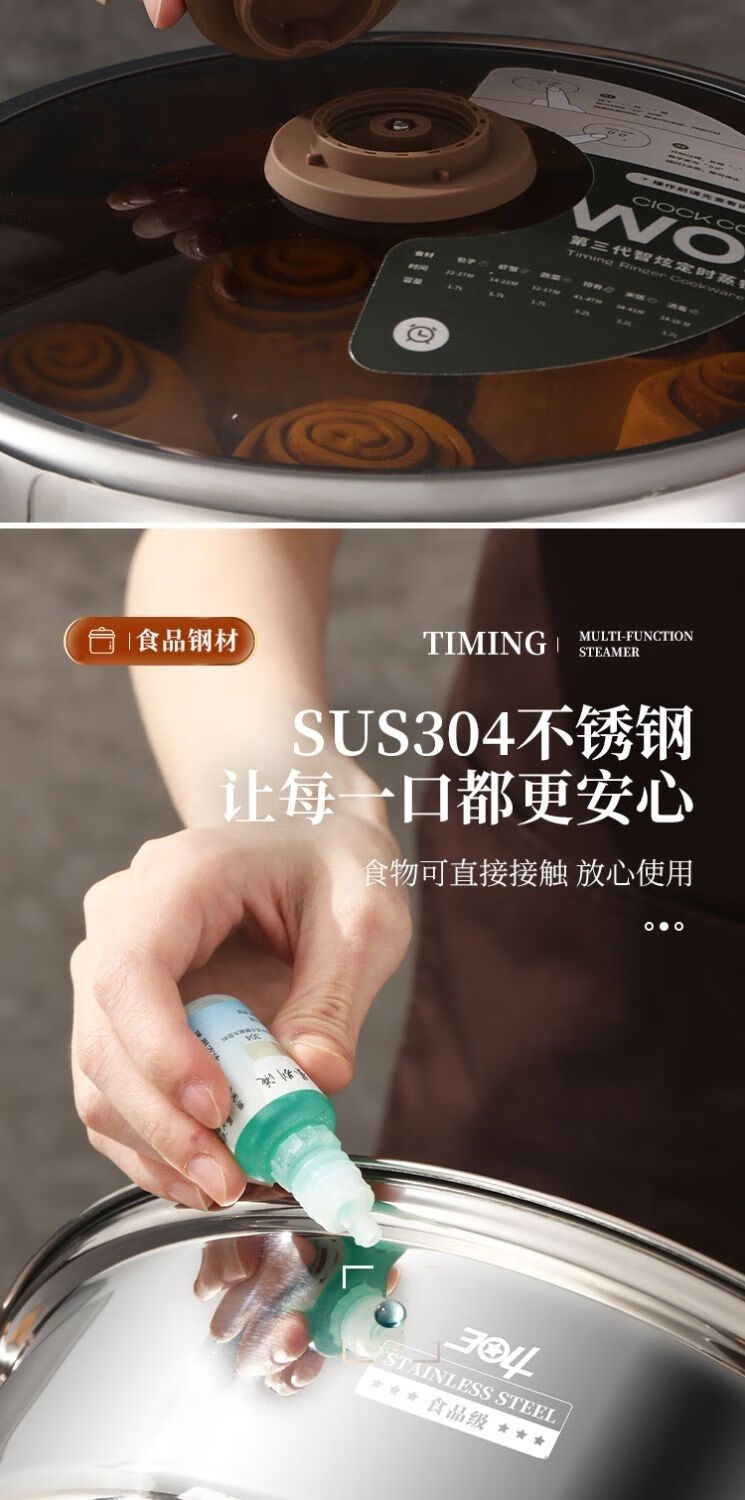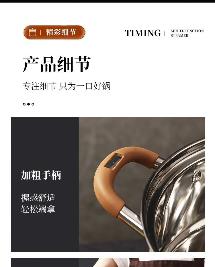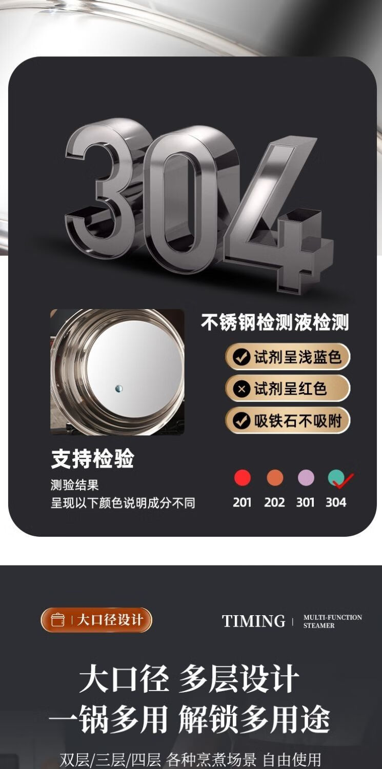 简漾德国304蒸锅特厚家用定时多层蒸笼蒸馍锅蒸鱼大容量电磁炉燃气灶 双层【1锅+1盖+2蒸片】 1cm 28CM