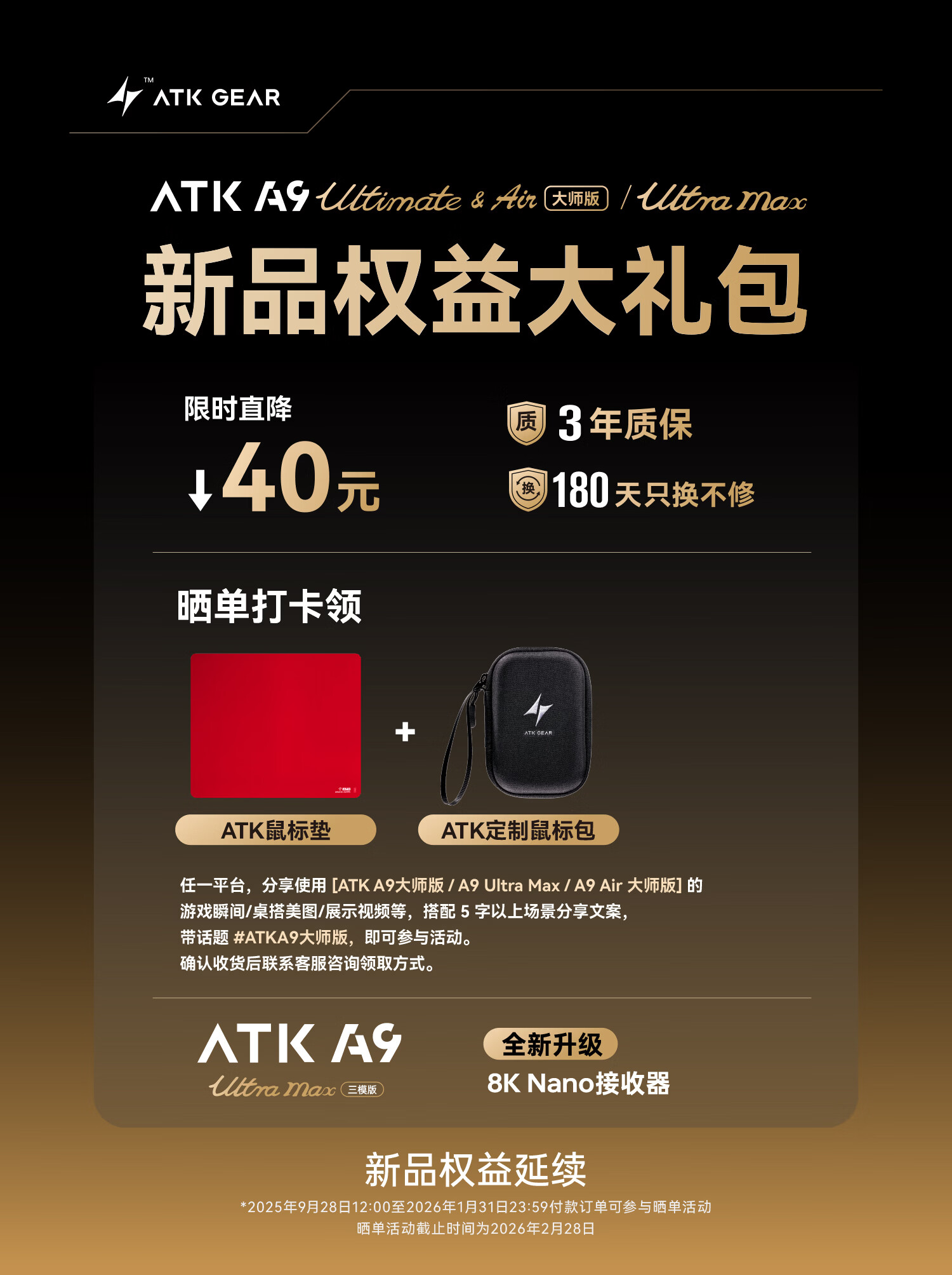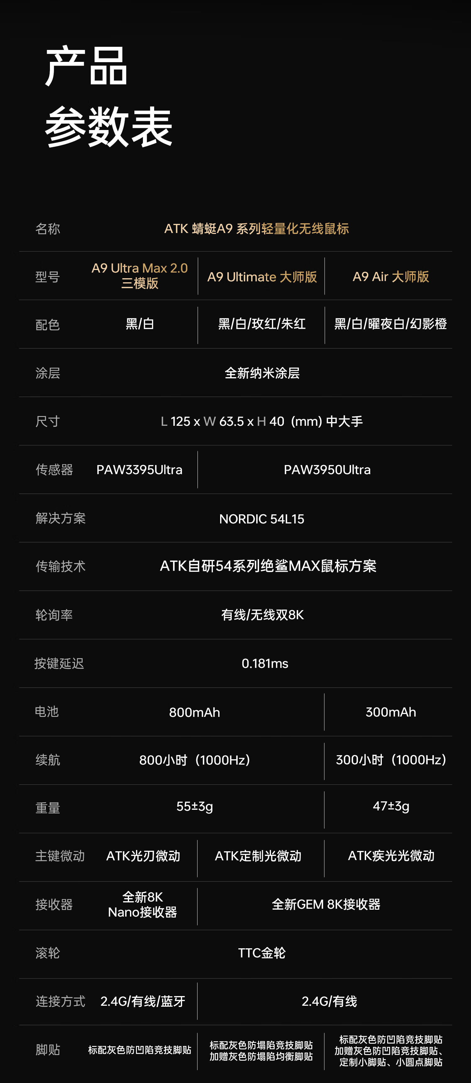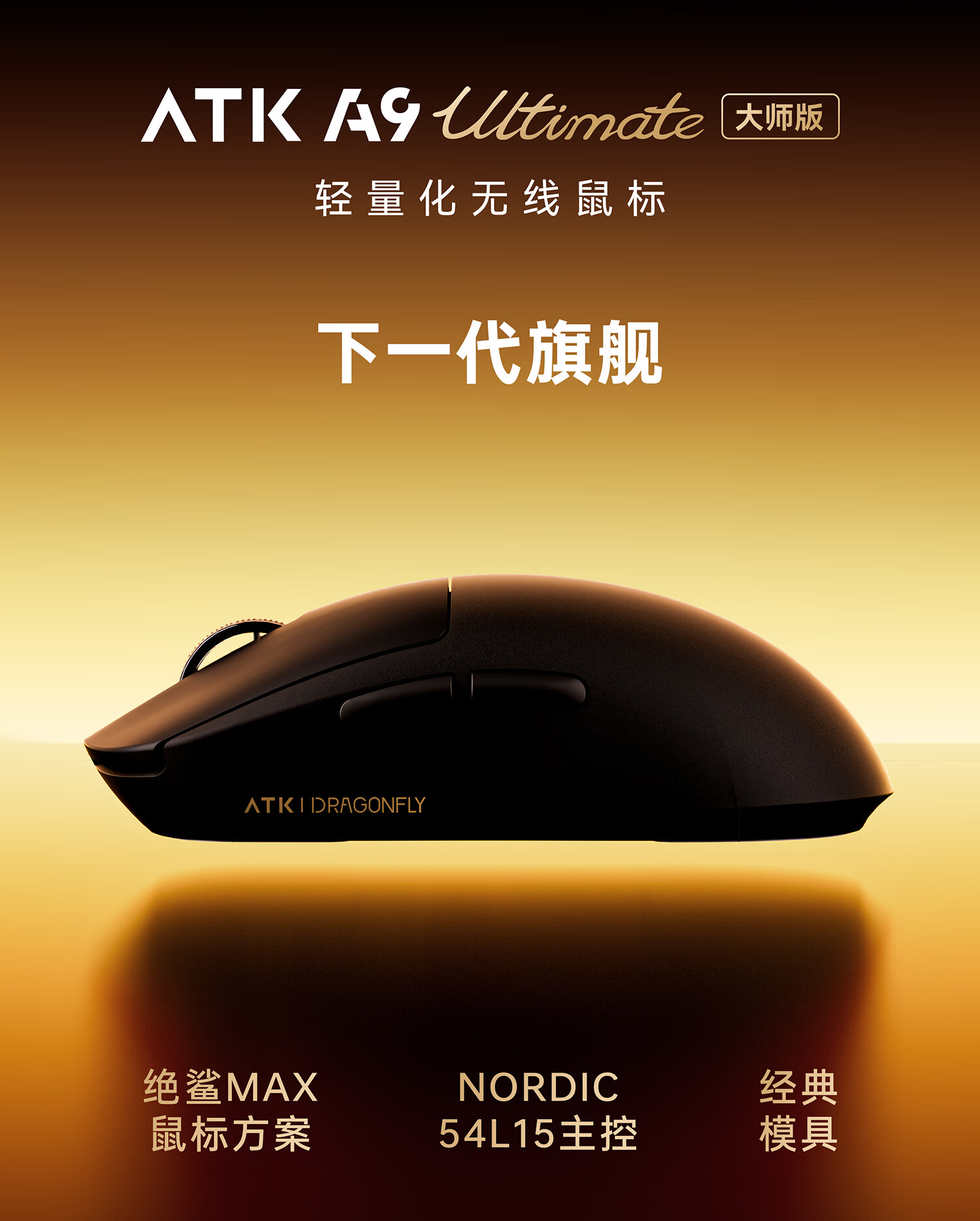 ATK蜻蜓A9无线鼠标游戏电竞办公鼠标 54芯片轻量化对称极简工学设计 FPS/MOBA大师版 A9大师版白色