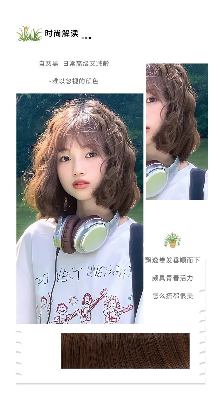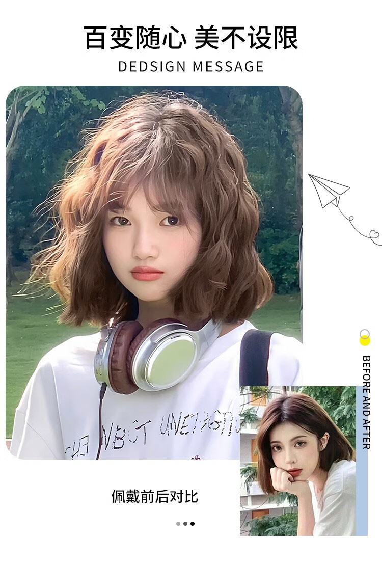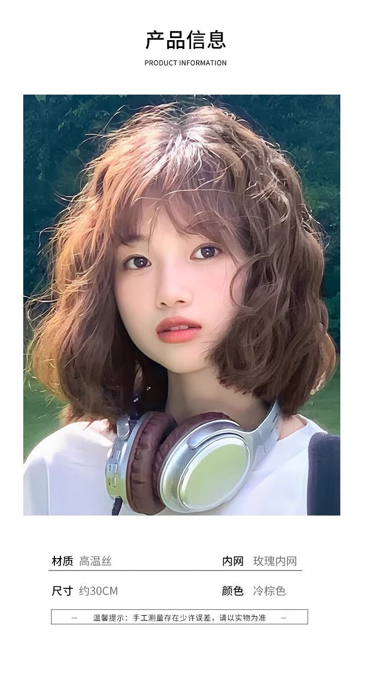 千丝雅假发女短发羊毛卷仿真发自然全头套时尚蓬松透气整顶假发套 慵懒短卷发 【黑茶棕】 短发 30cm