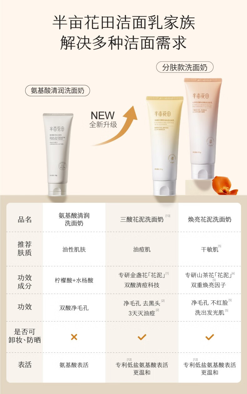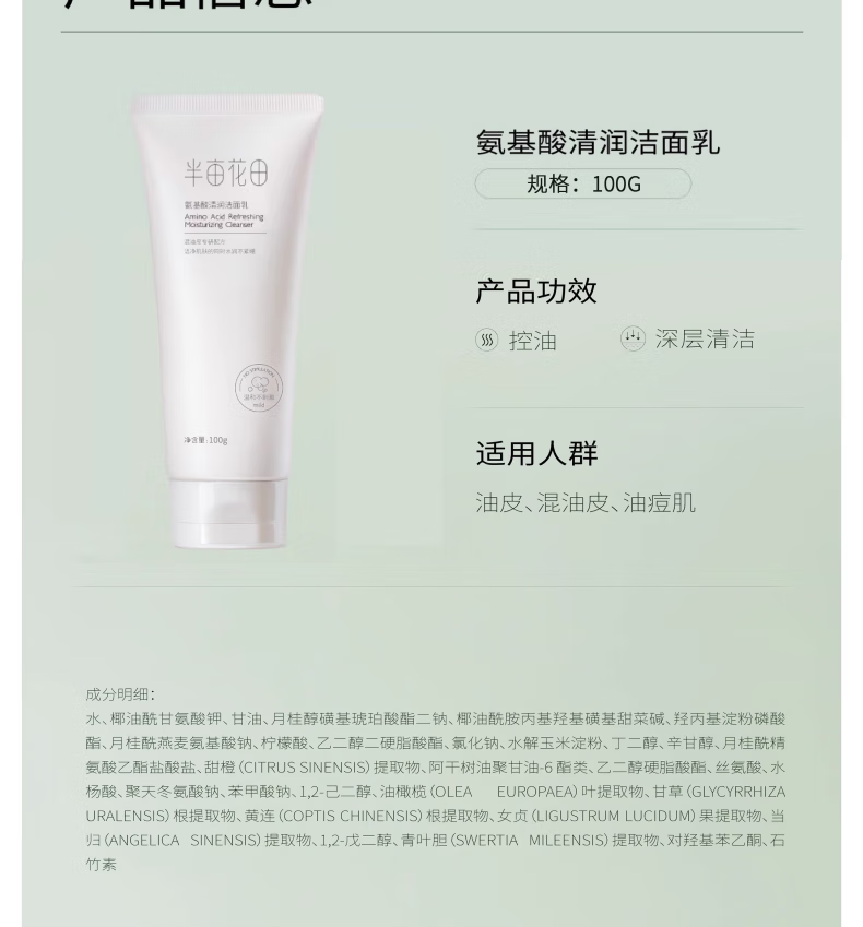 半亩花田洁面乳护肤品礼物男女通用洗面奶洁面乳 氨基酸清润洁面乳120g