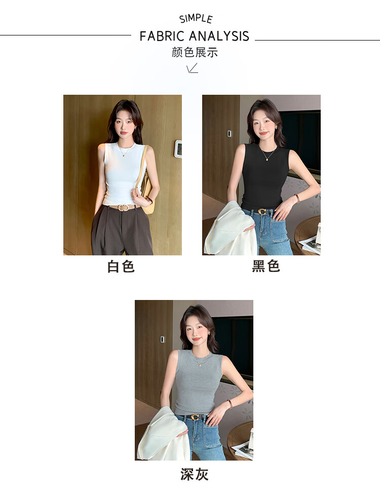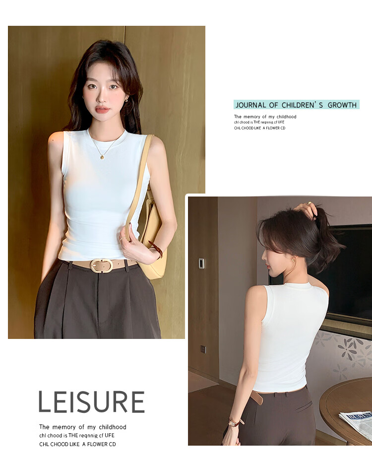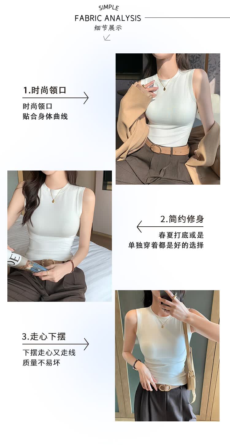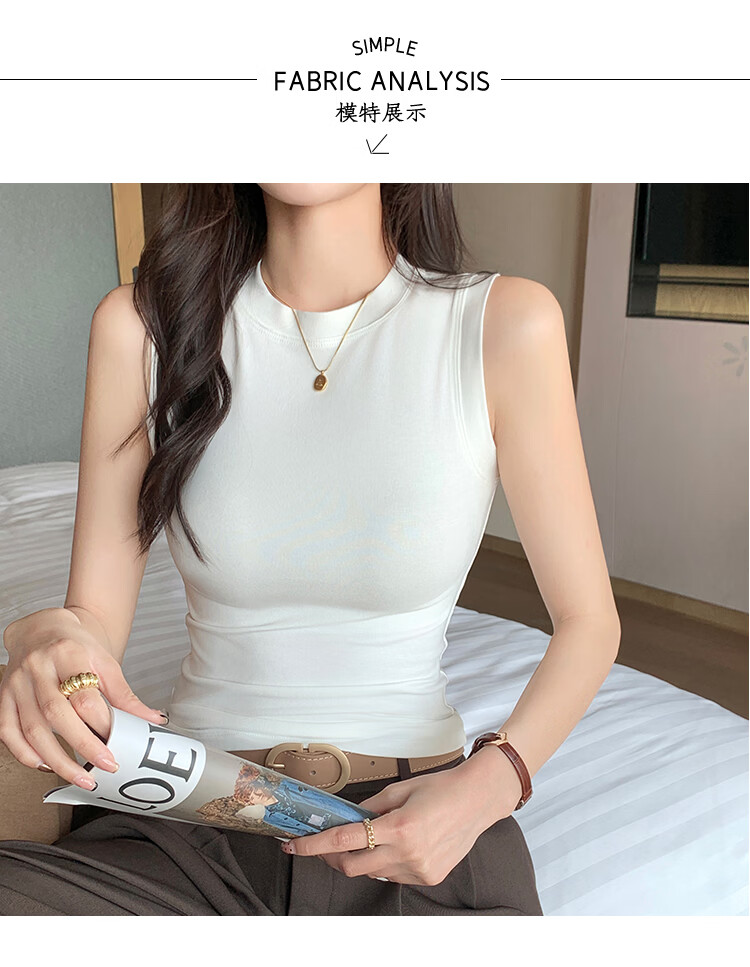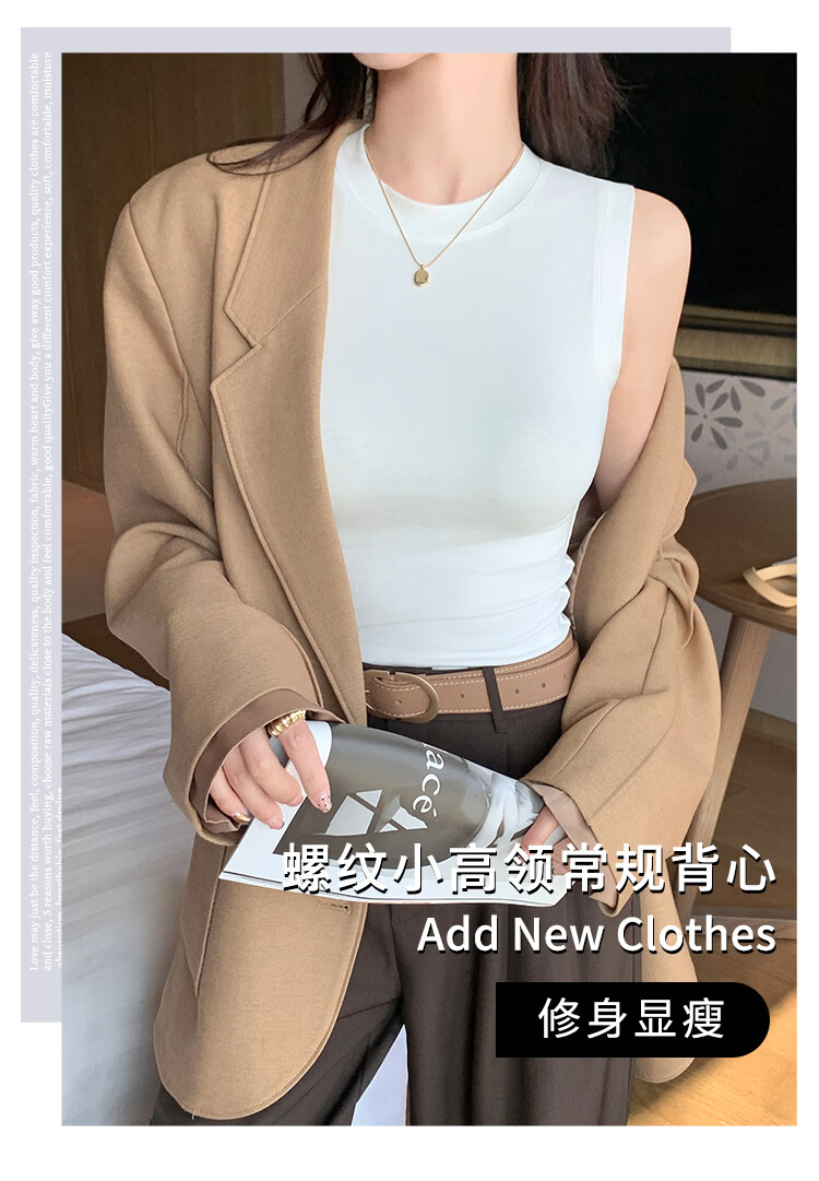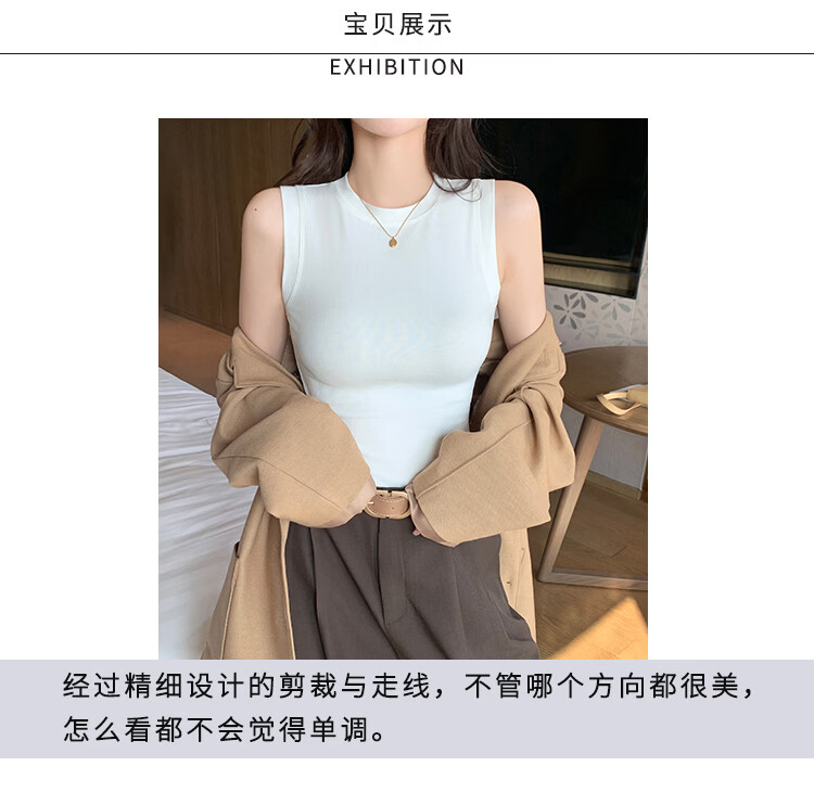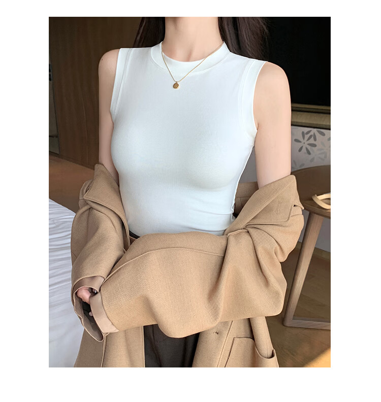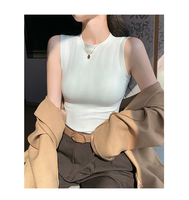 森恒羊白色小高领吊带背心女春夏修身防走光遮副乳打底内搭短款螺纹上衣 深灰色【螺纹小高领】 2XL 【125-140斤】