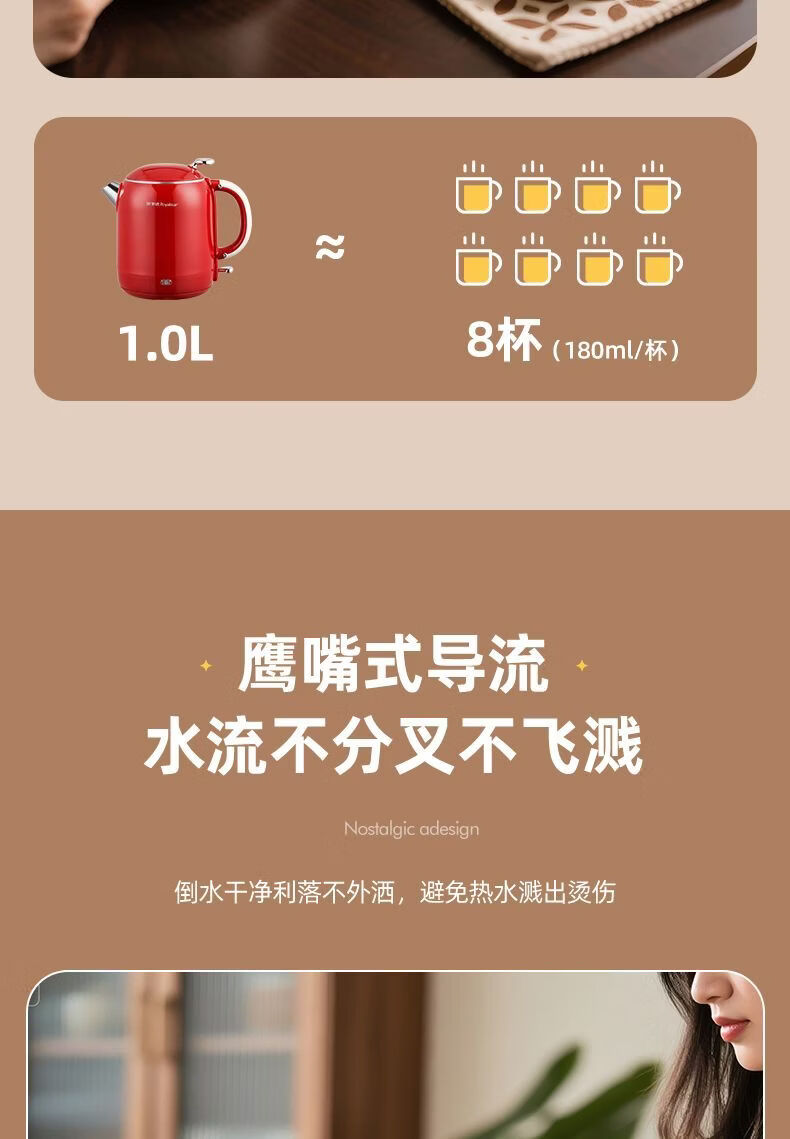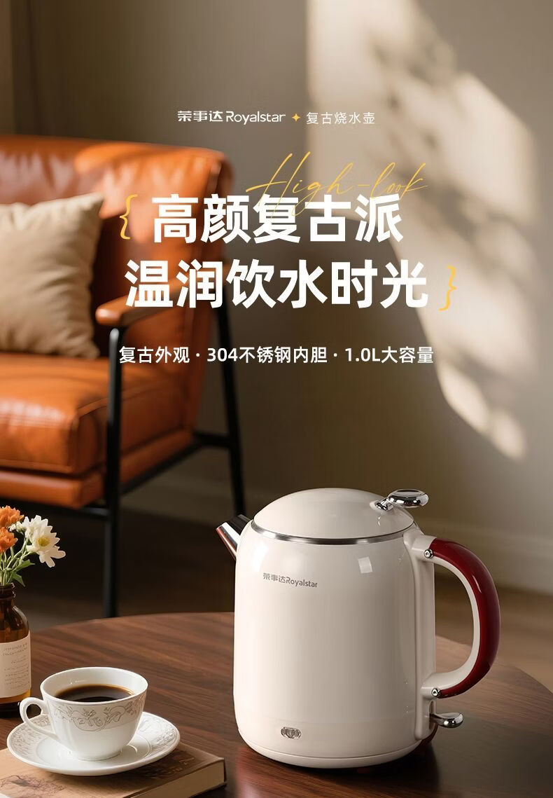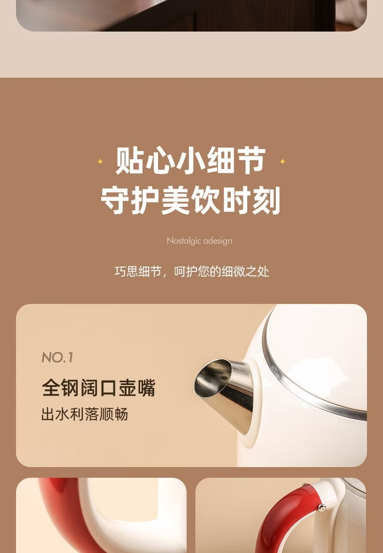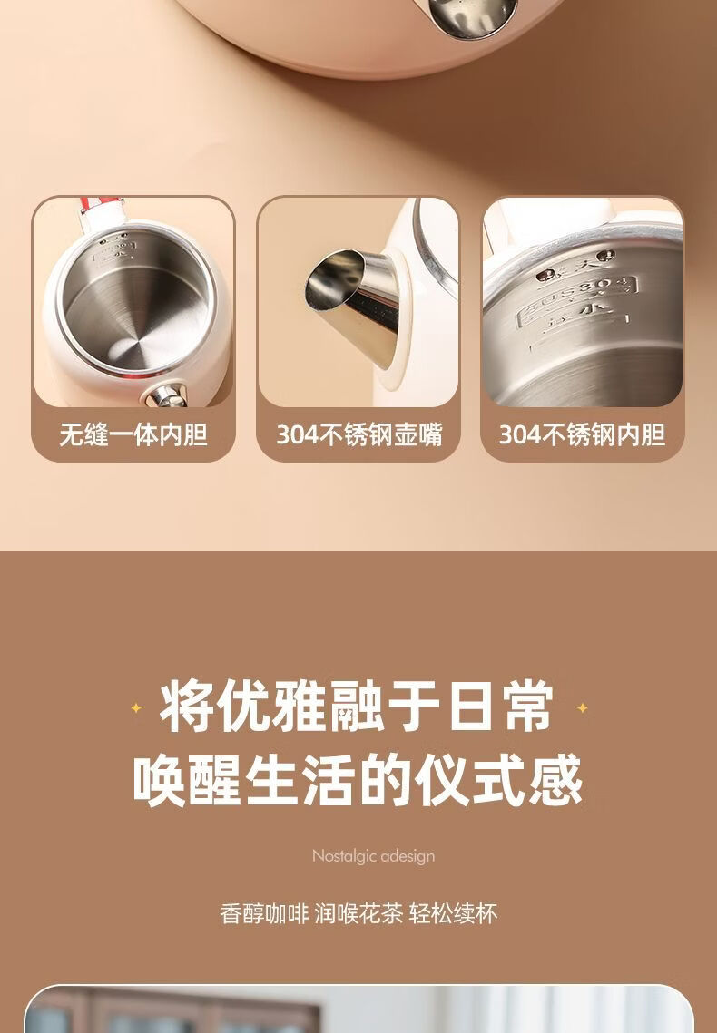 电热水壶家用电烧水壶自动断电开水壶泡茶烧水器热水壶 1L 【白色】优质304钢/智能保温款