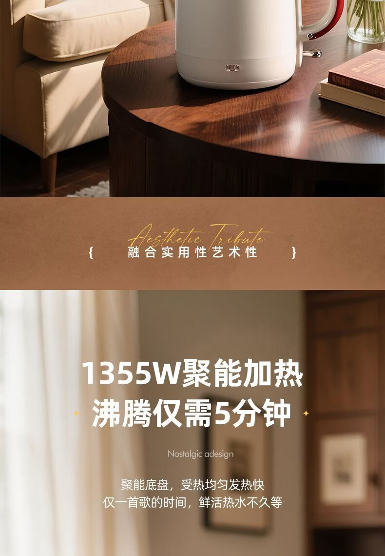 美的全玻璃养生壶 办公室烧水壶 家用多功能煮茶壶 花茶煮茶器 迷你小型电热水壶 围炉煮茶壶 【全玻璃】0金属0胶水0涂层 1L