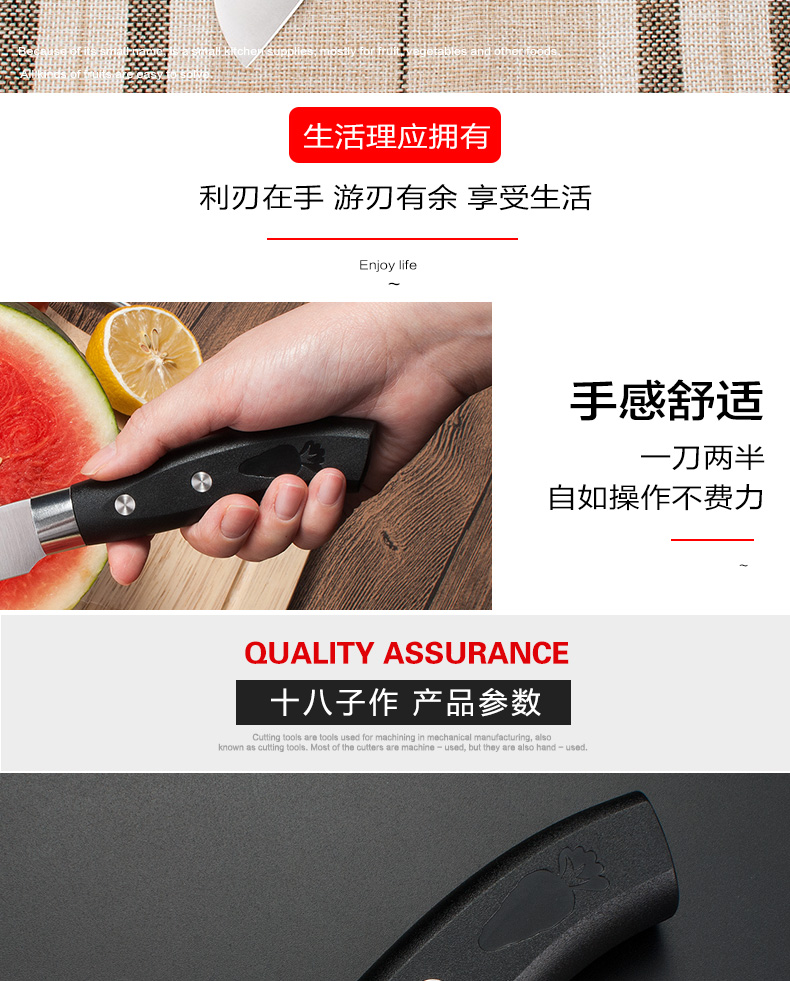十八子作 水果刀不锈钢瓜果刀套装厨房家用刺身料理切西瓜长款套装组合刀具 A款小水果刀 (H332-D)配刀套