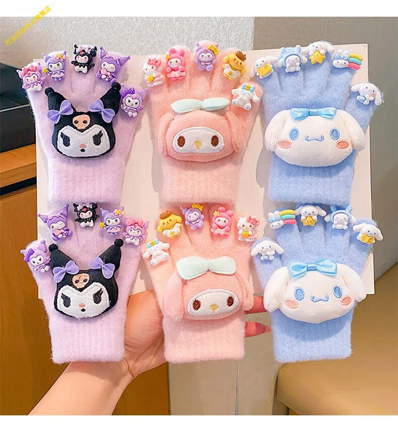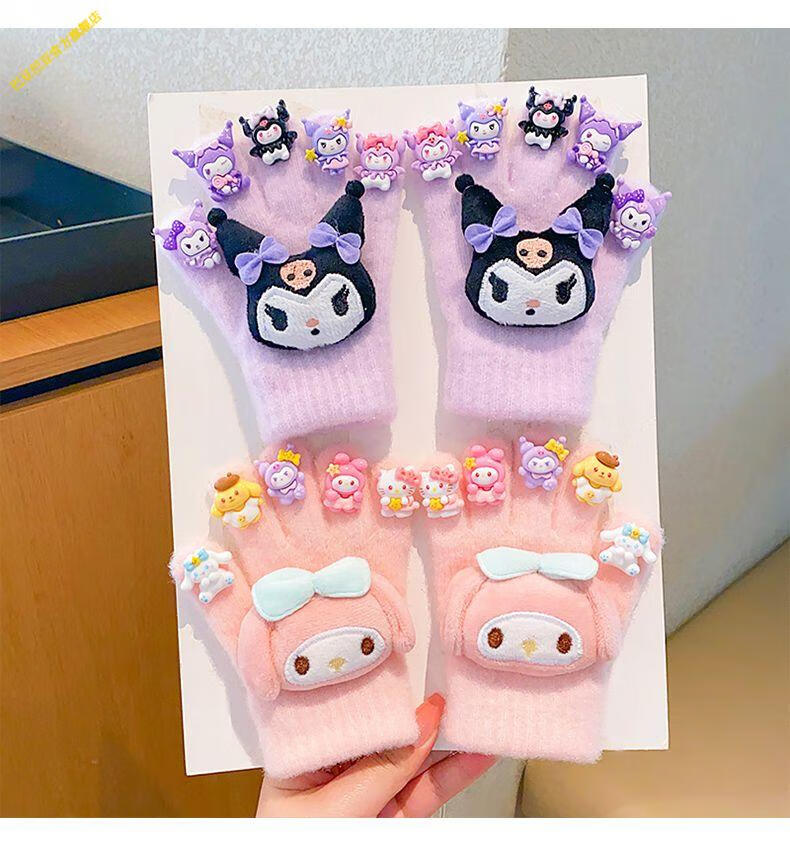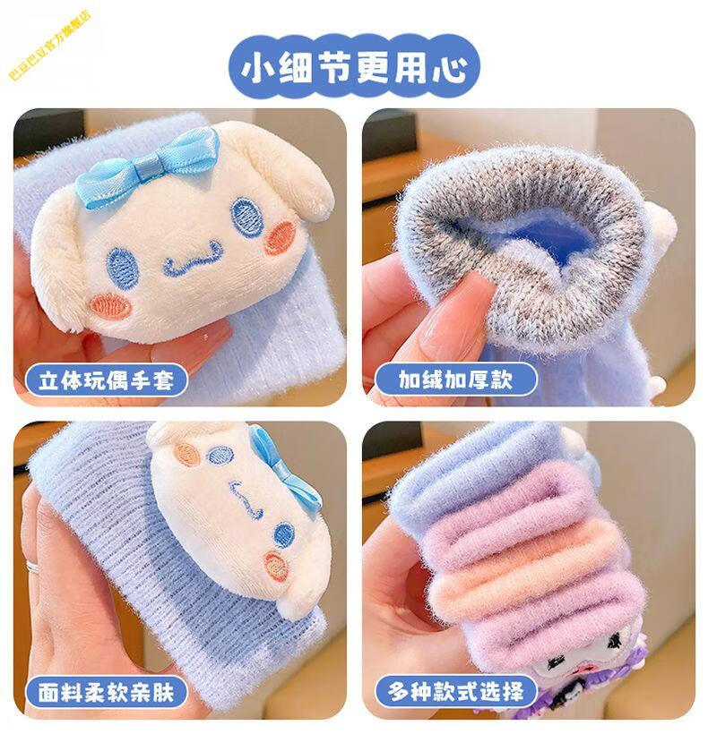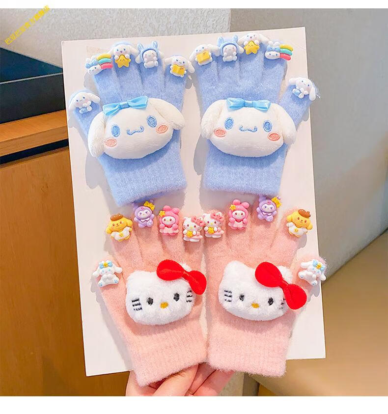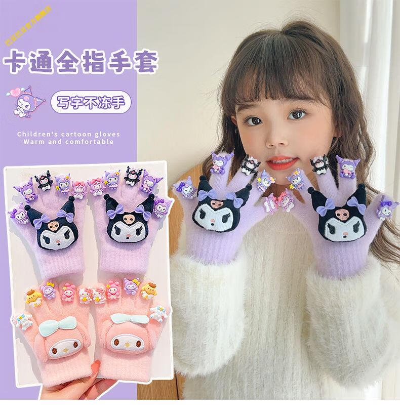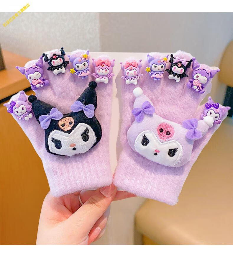 G.duck小黄鸭儿童卡通库洛米手套冬季保暖防冻男女童卡通DIY宝宝加厚五 萌紫库洛米
