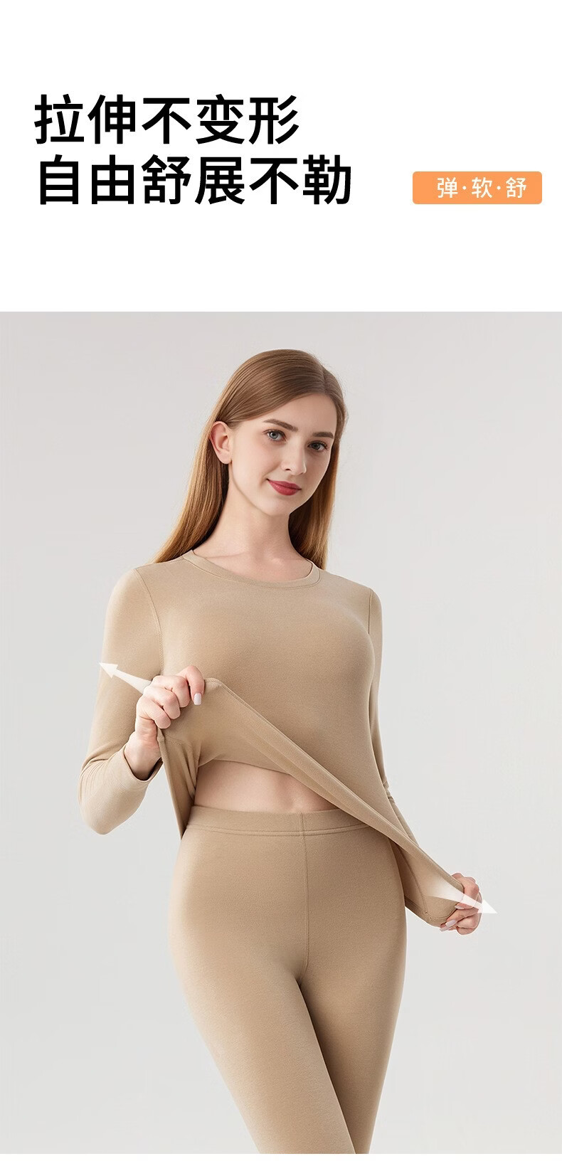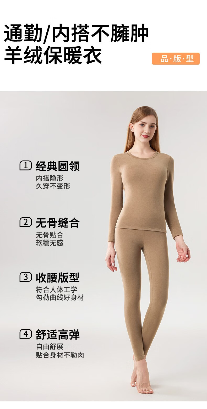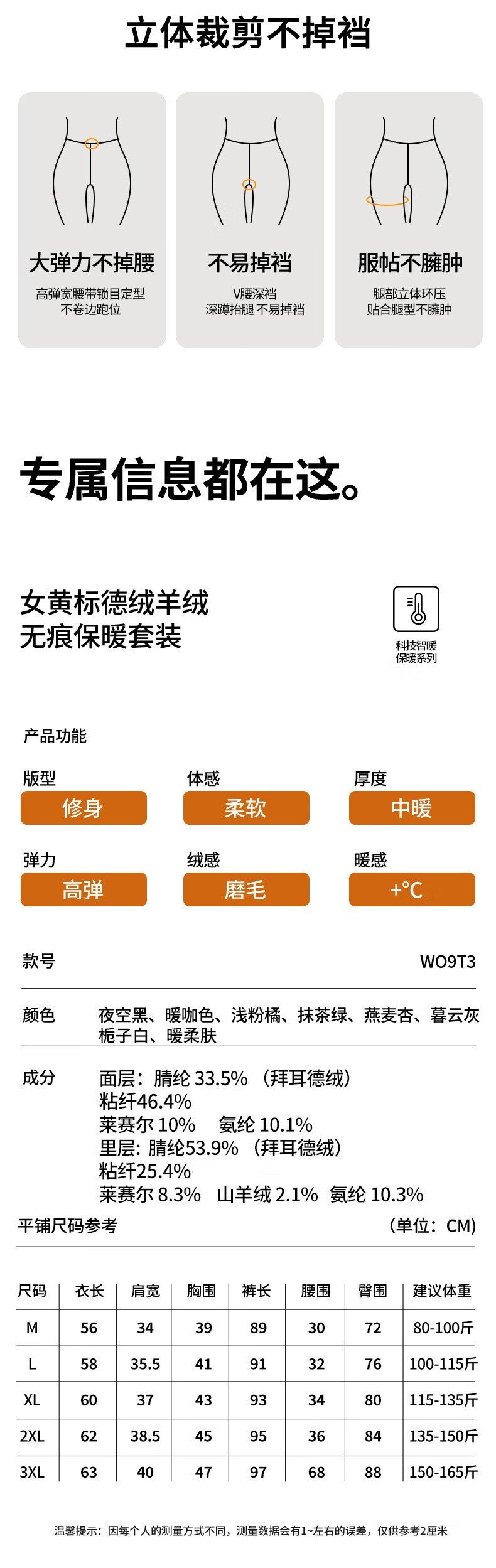 EMZ鄂尔多斯女士山羊绒保暖内衣套装双面绒无痕发热打底衫打底裤新款 包边套装暖柔肤 3XL (建议150-165斤)