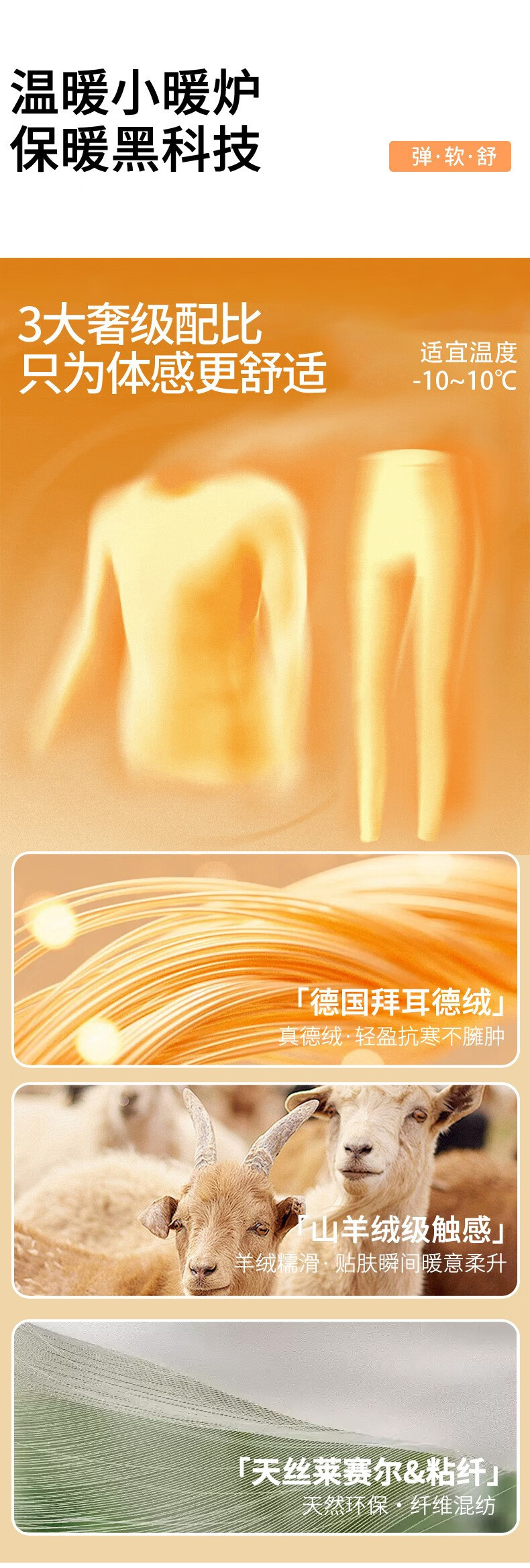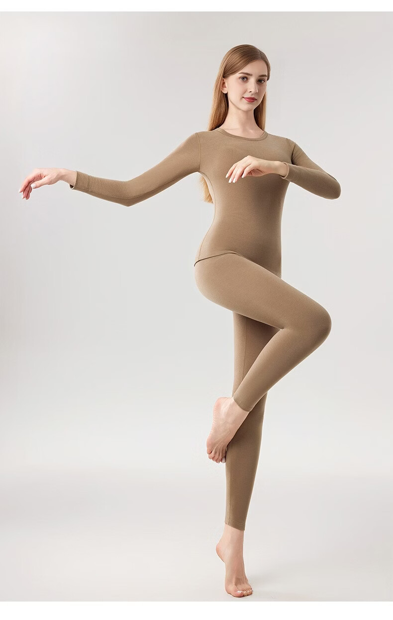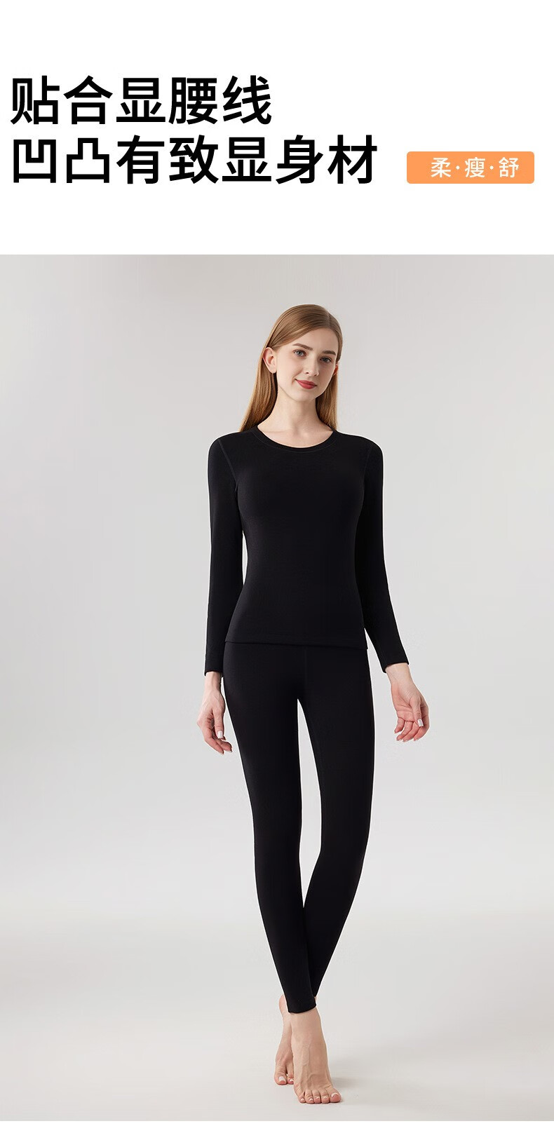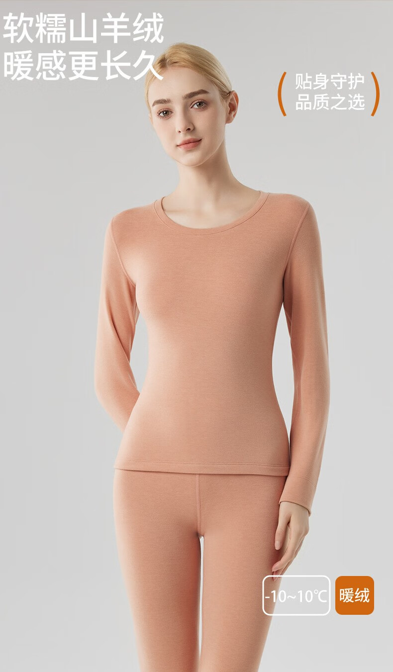 EMZ鄂尔多斯女士山羊绒保暖内衣套装双面绒无痕发热打底衫打底裤新款 包边套装暖柔肤 3XL (建议150-165斤)