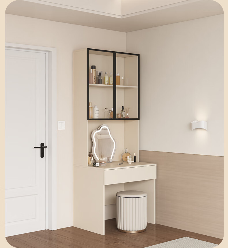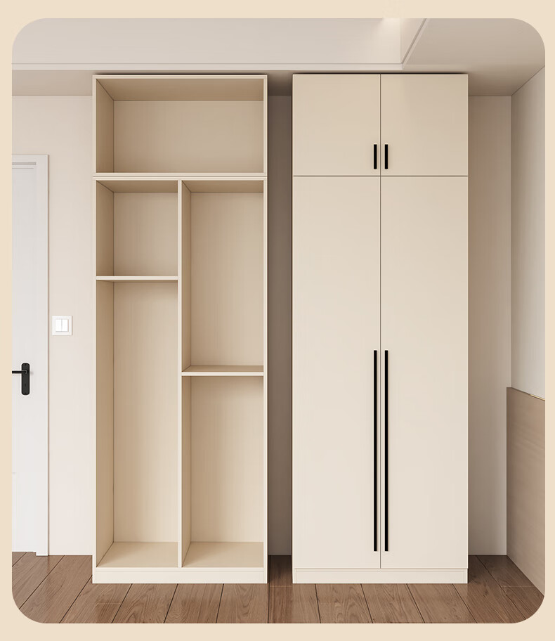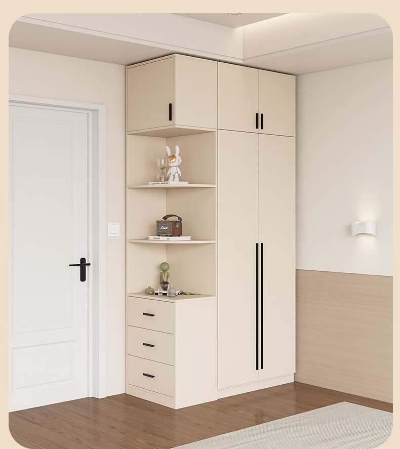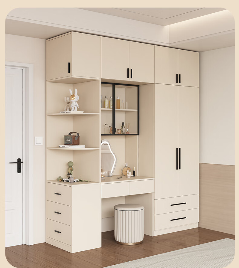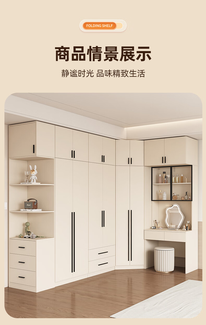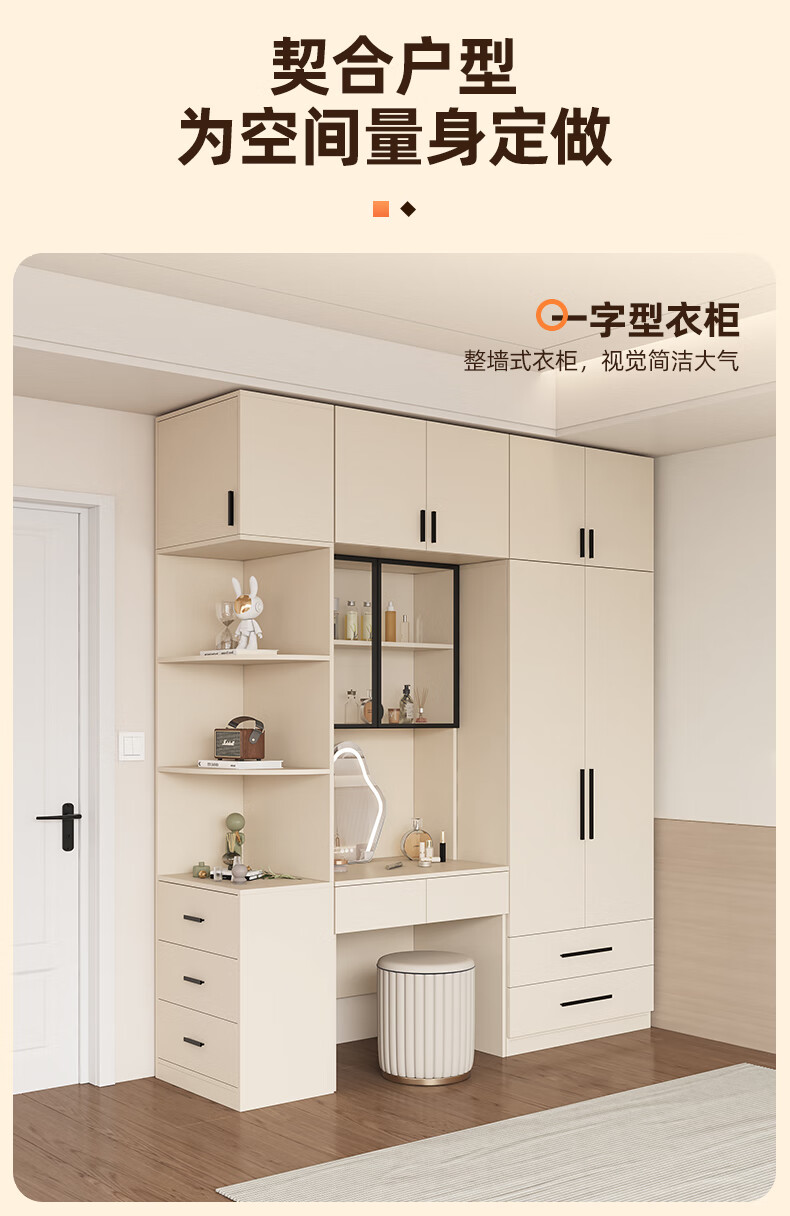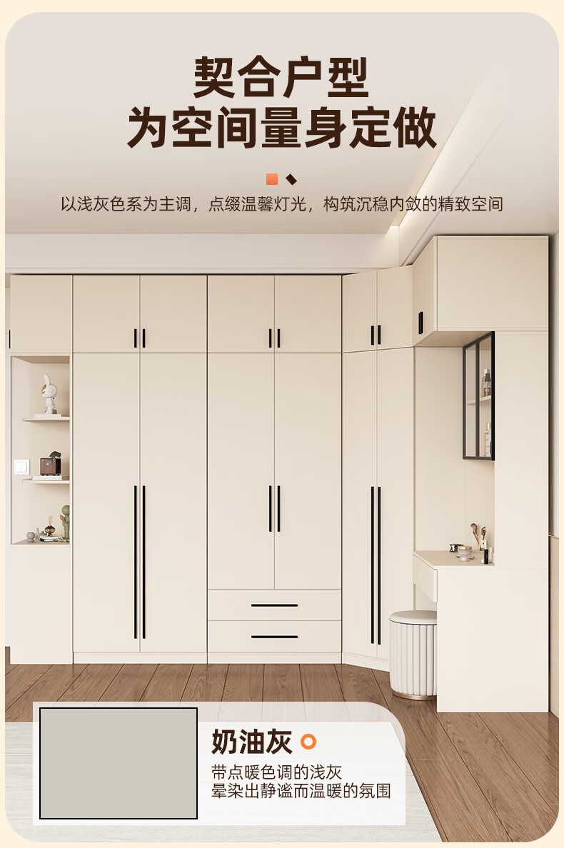 雨村实木衣柜现代简约奶油风家用卧室衣帽间梳妆台直角转角衣柜可定制 两门抽屉衣柜+边柜+书桌柜+顶柜