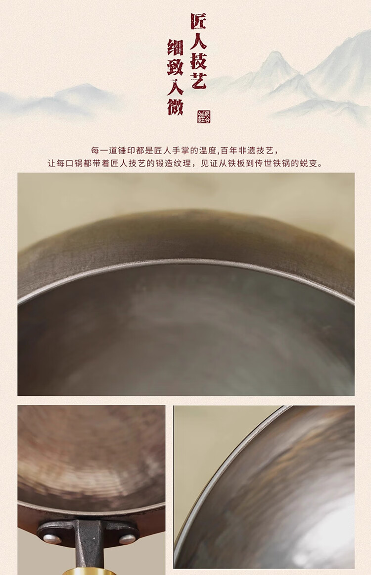 万代传铁锅章丘款炒锅不粘锅锻打无涂层老式炒锅燃气煤气灶通用圆底锅 【4-8人使用】 36cm 手工锻打古法黑锅