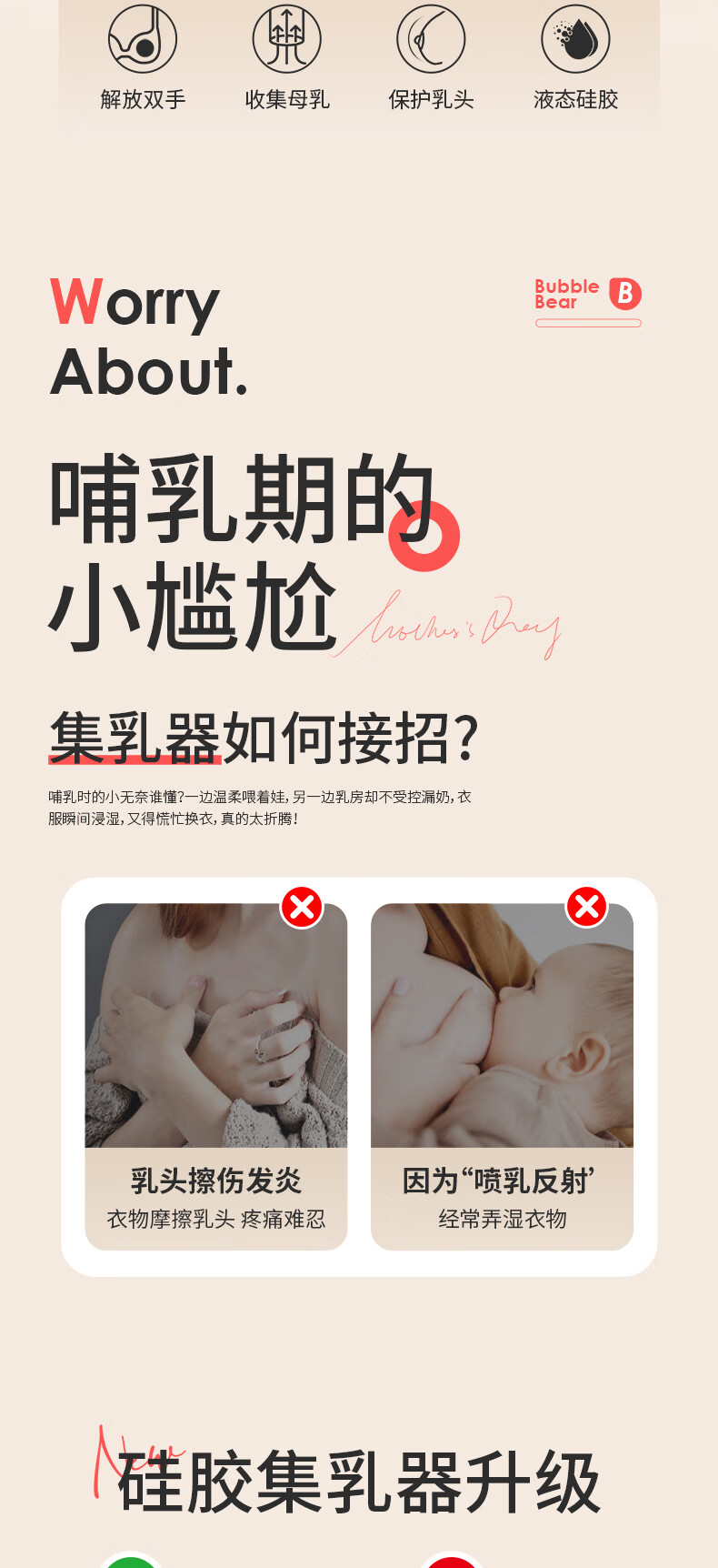 布比熊 BUBBLE BEAR集奶器母乳收集孕妇漏奶接奶器神器防溢集乳器吸乳护罩防溢乳垫 【新升级】一体式集奶器+收纳盒