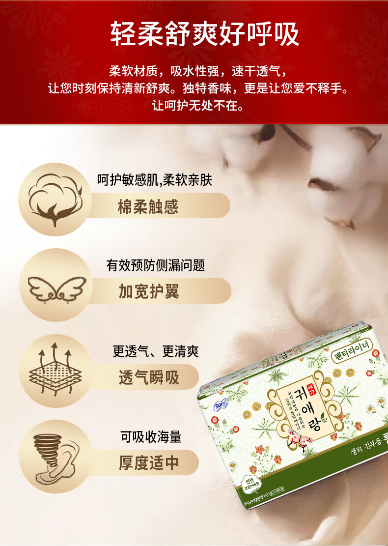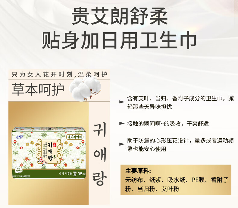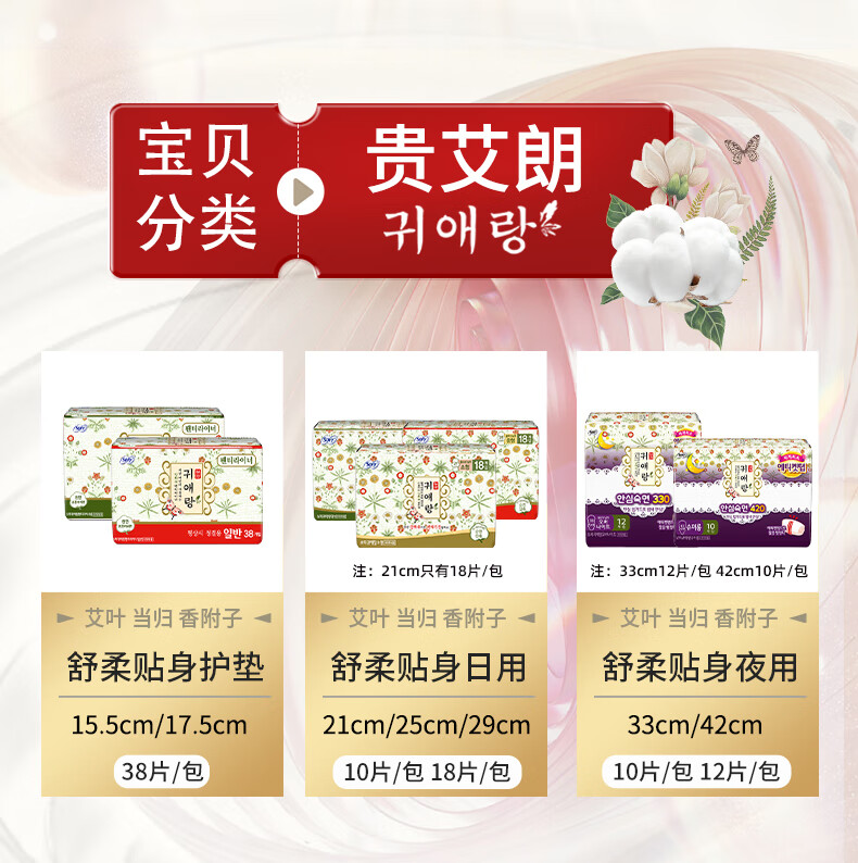 贵艾朗LG韩国原装进口绵柔亲肤日夜用组合套装原闺艾朗姨妈巾卫生护垫 护垫 175mm 38片 *4包