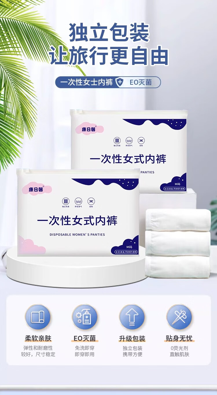 康日馨一次性内裤女款免洗无菌防外扩待产服内衣包 M 腰围63-73cm建议体重(90斤以下) 4袋20条(白色)