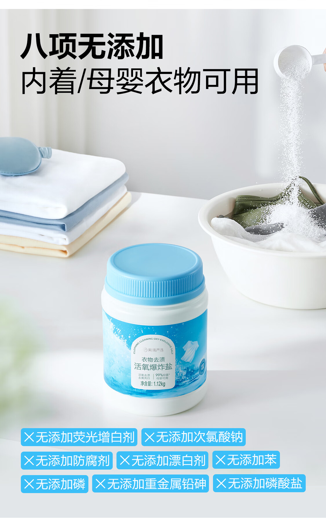 网易严选 多功能活氧爆炸盐一瓶解决多种污渍 衣物去黄果蔬厨具清洗神器 1120g 1瓶 升级版爆炸盐