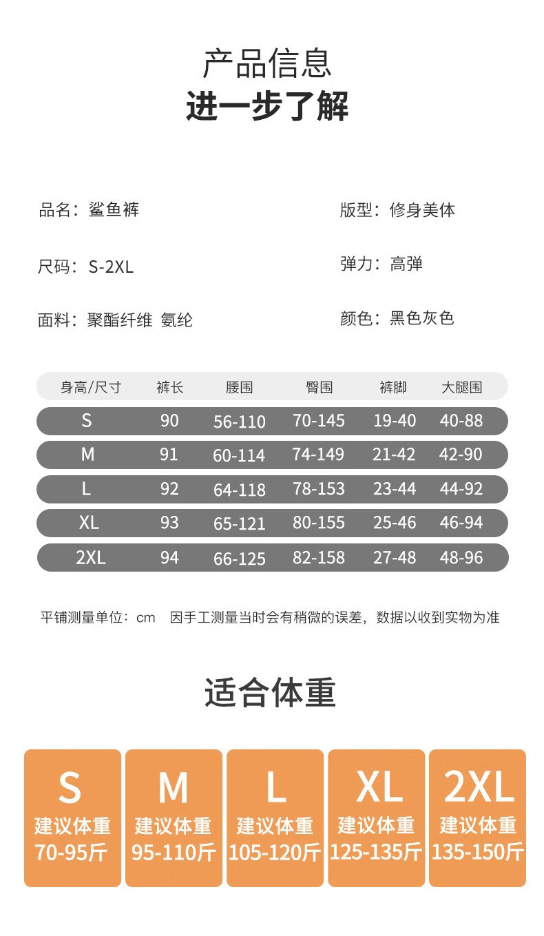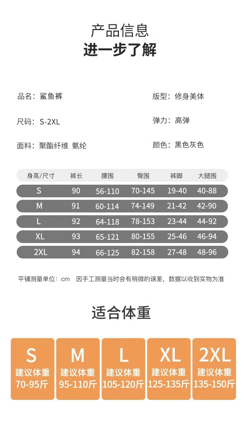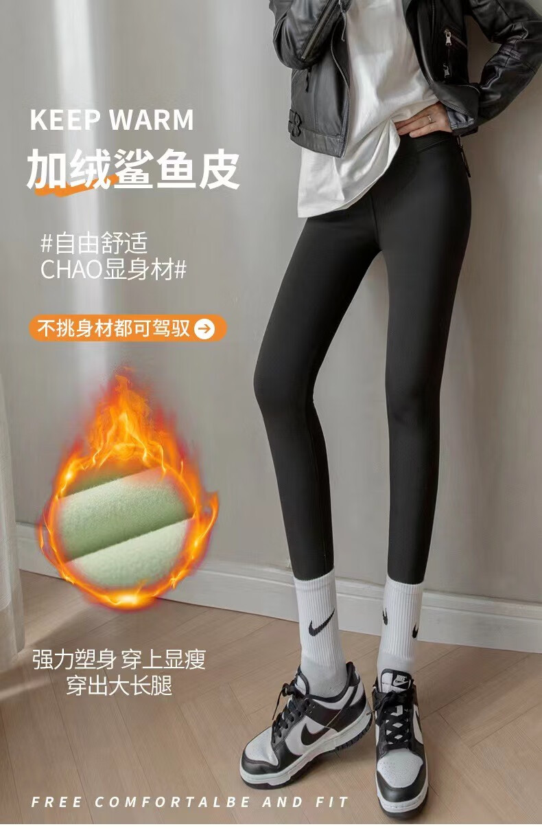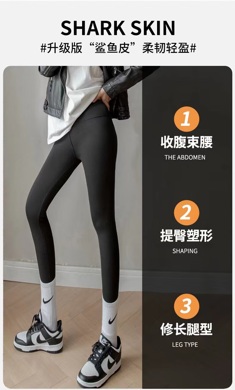 燠阳鲨鱼裤女外穿打底裤高腰收腹提臀显瘦运动紧身裤DM 纯色-加绒黑色 L 【105-115斤】