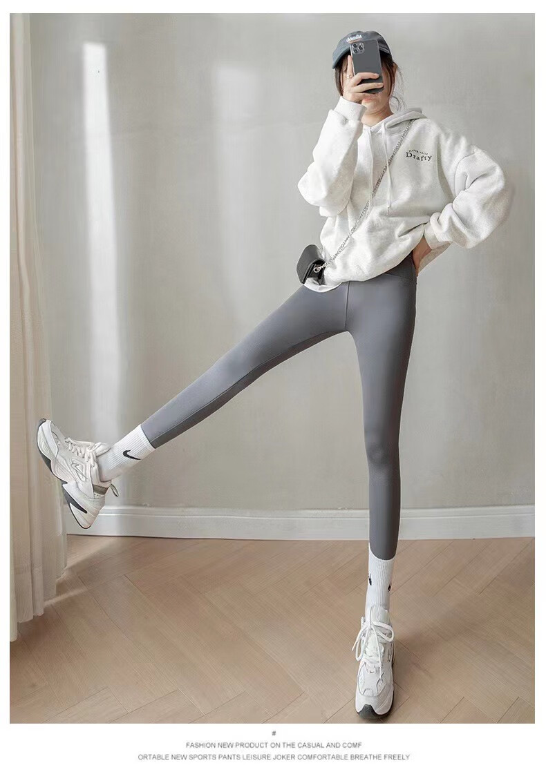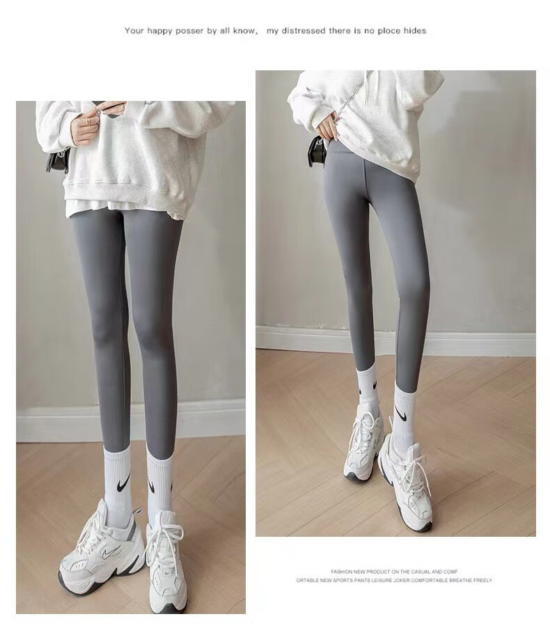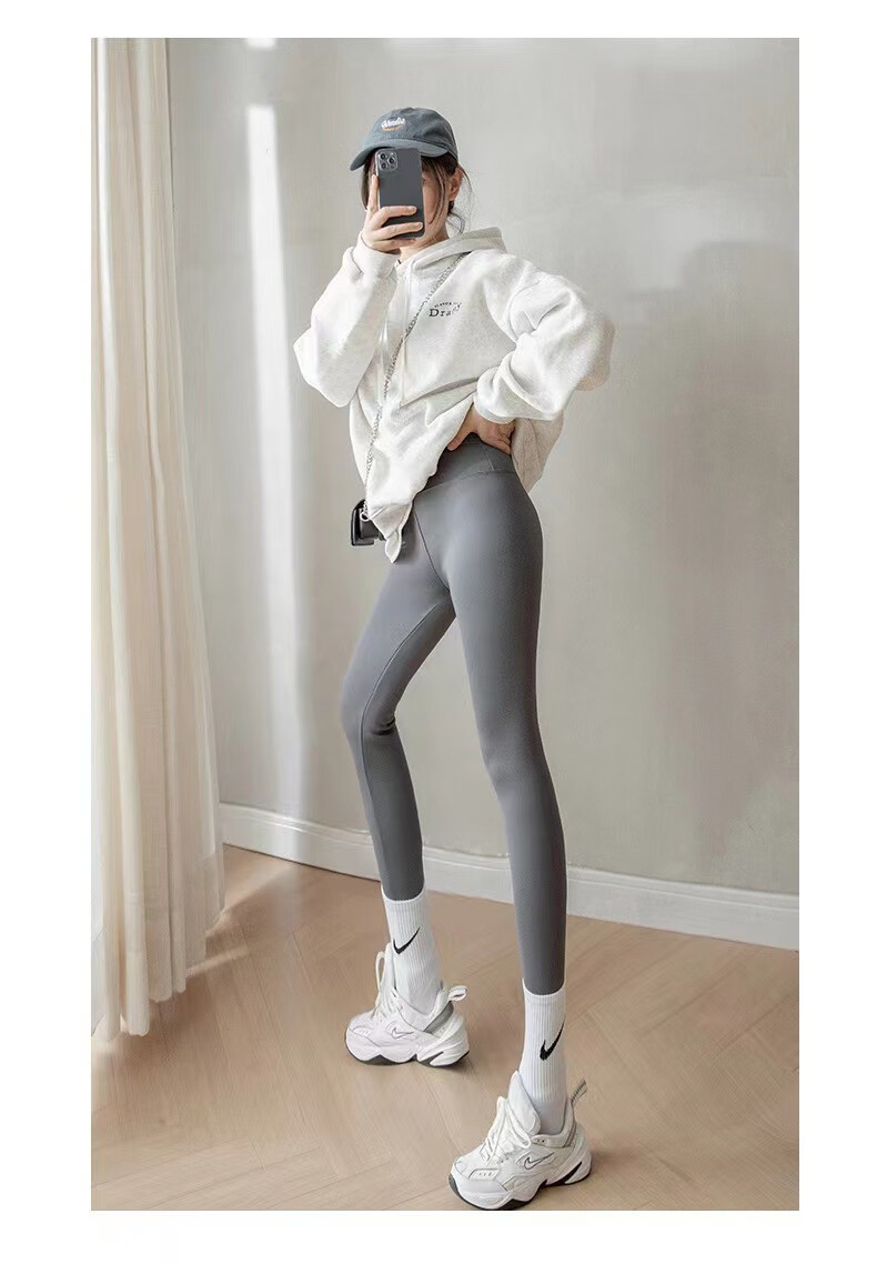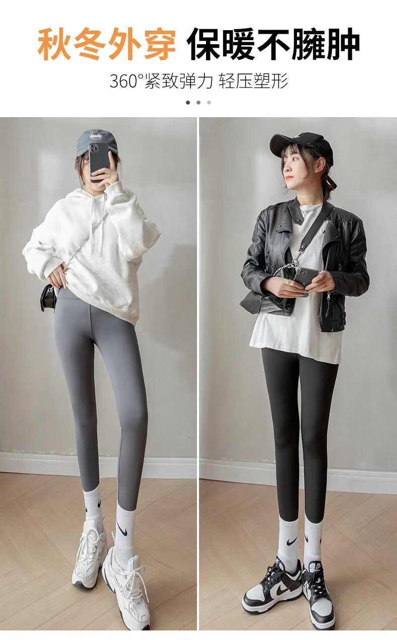 朵莱秀打底裤女外穿春季冬保暖高腰收腹无痕修身小脚裤 浅灰+浅灰 XL (建议125-150斤