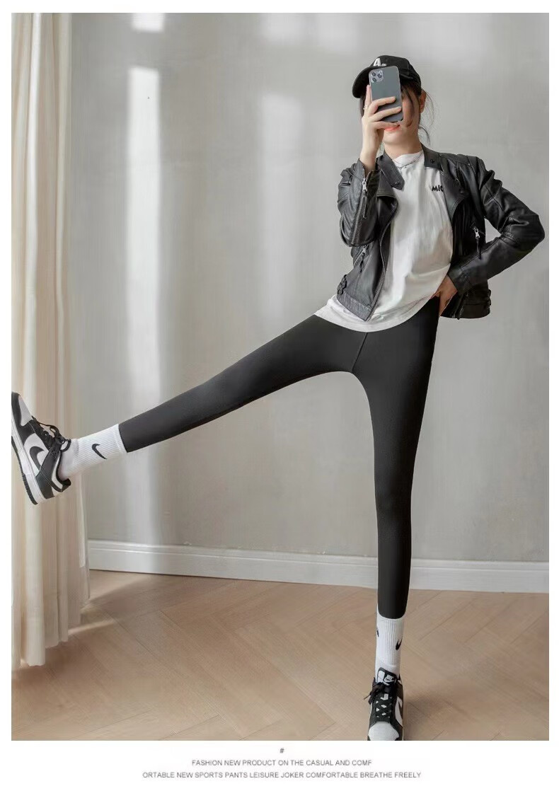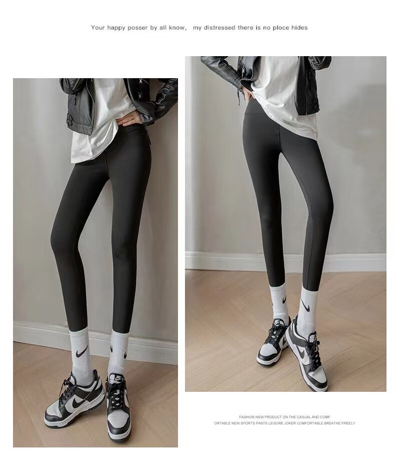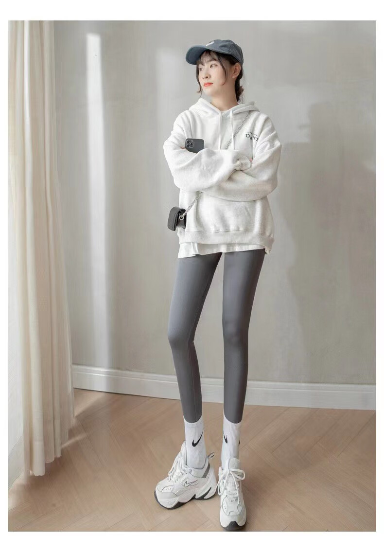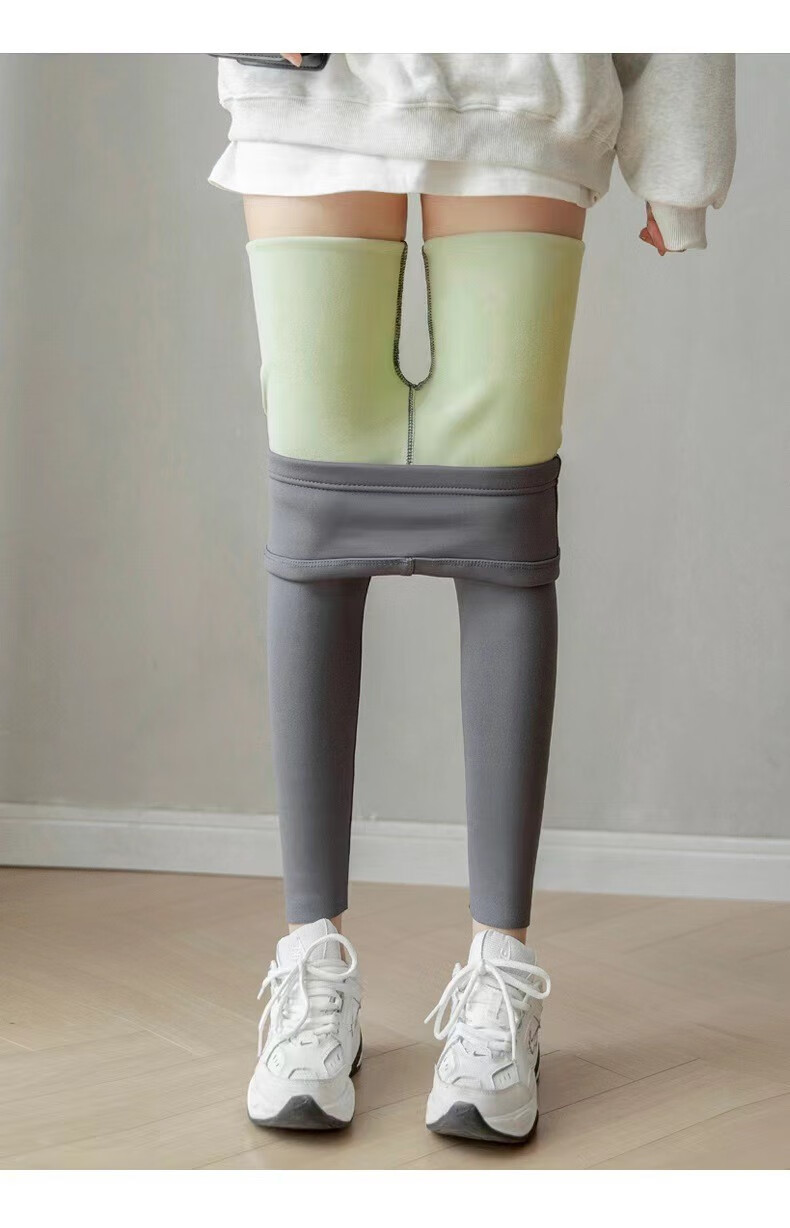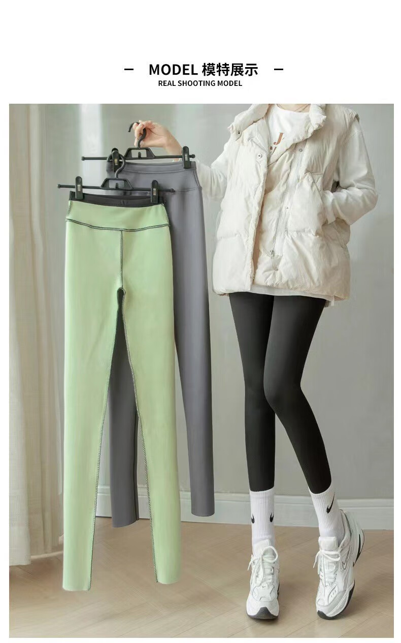 朵莱秀打底裤女外穿春季冬保暖高腰收腹无痕修身小脚裤 浅灰+浅灰 XL (建议125-150斤