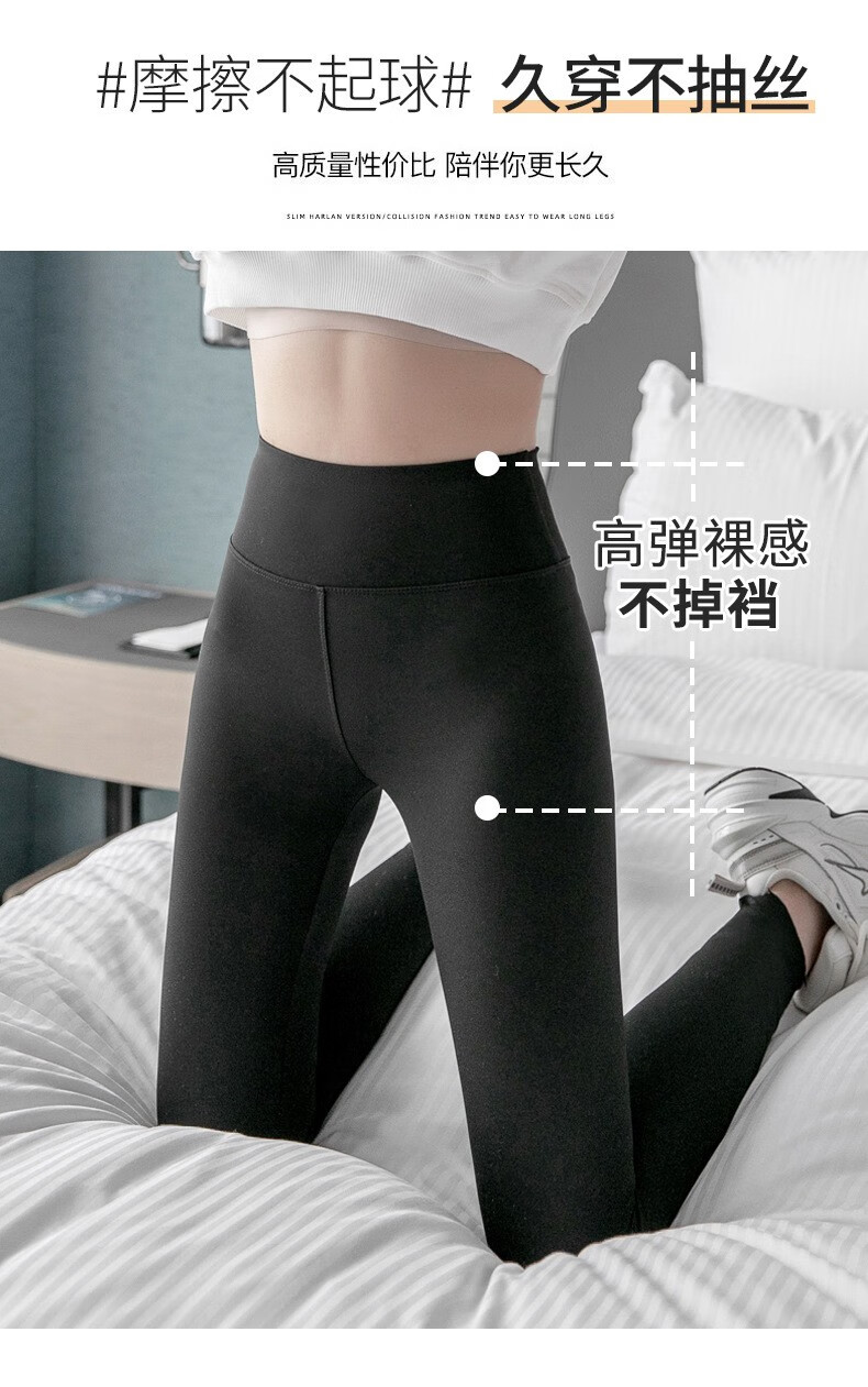 浪莎高腰打底裤女春秋外穿小脚裤黑色弹力显瘦紧身铅笔裤子女 黑色(秋冬加绒) L (105-115斤)