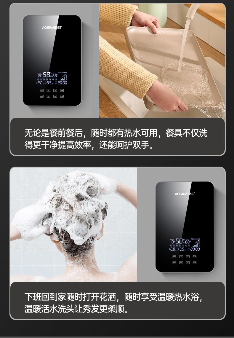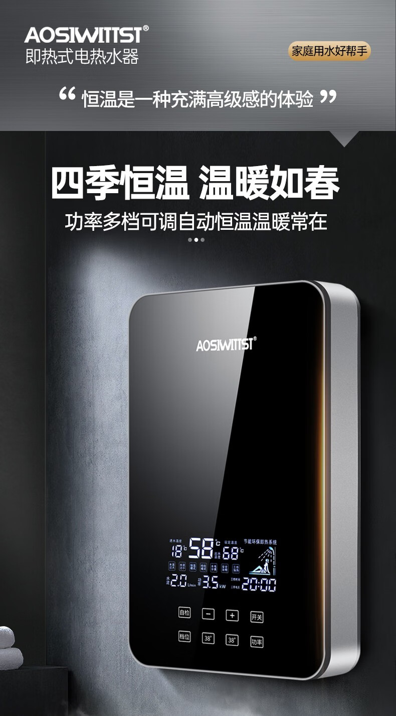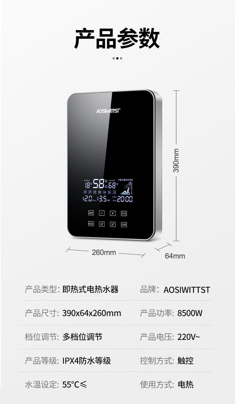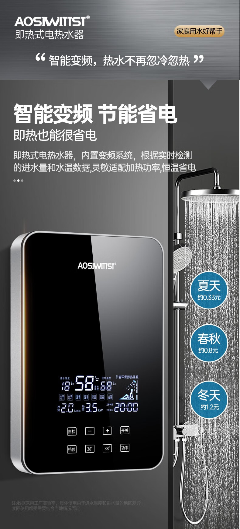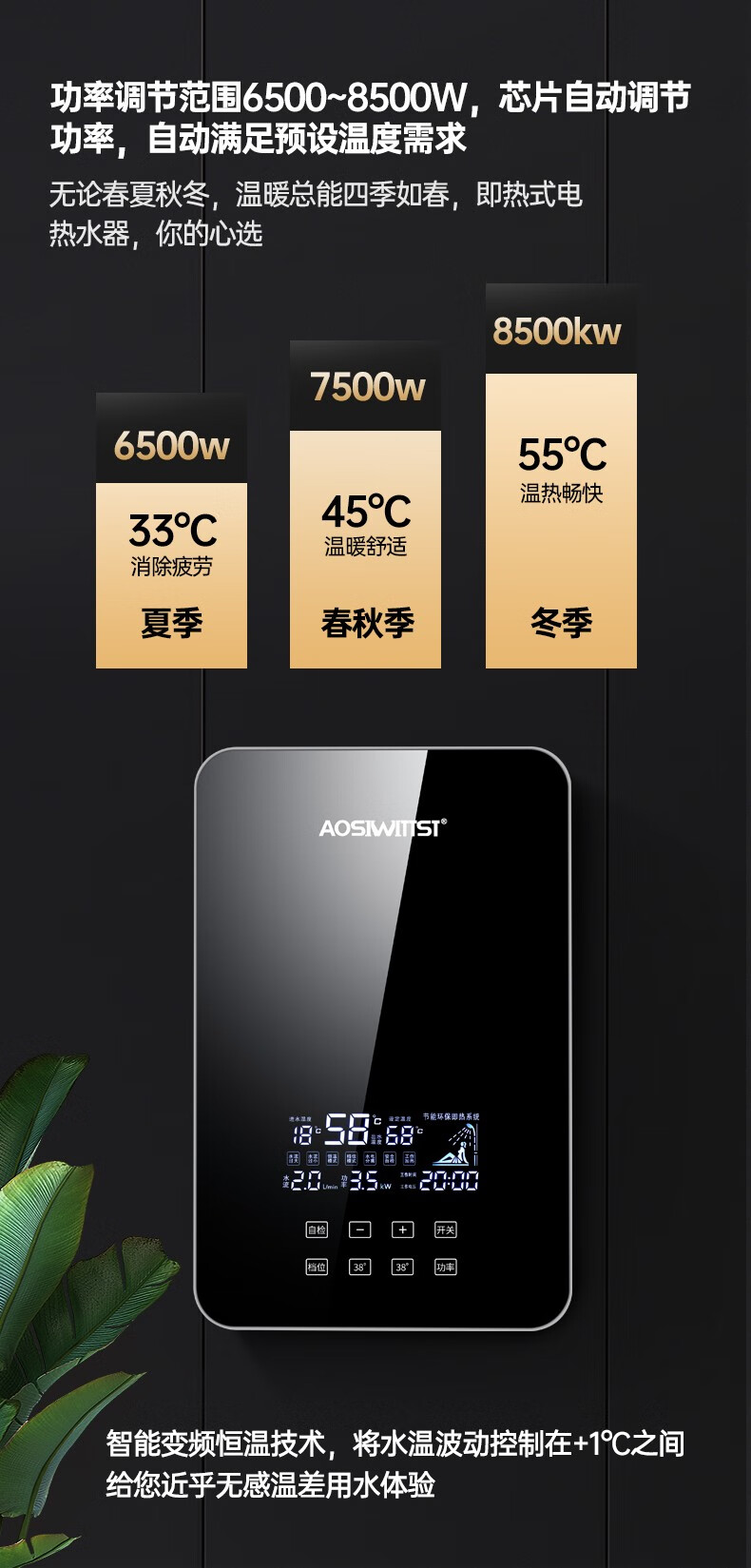 AOSIWITTST即热式电热水器家用洗澡速热变频恒温热的快过水热上门安装 8500W 黑色≥4平方电线可用