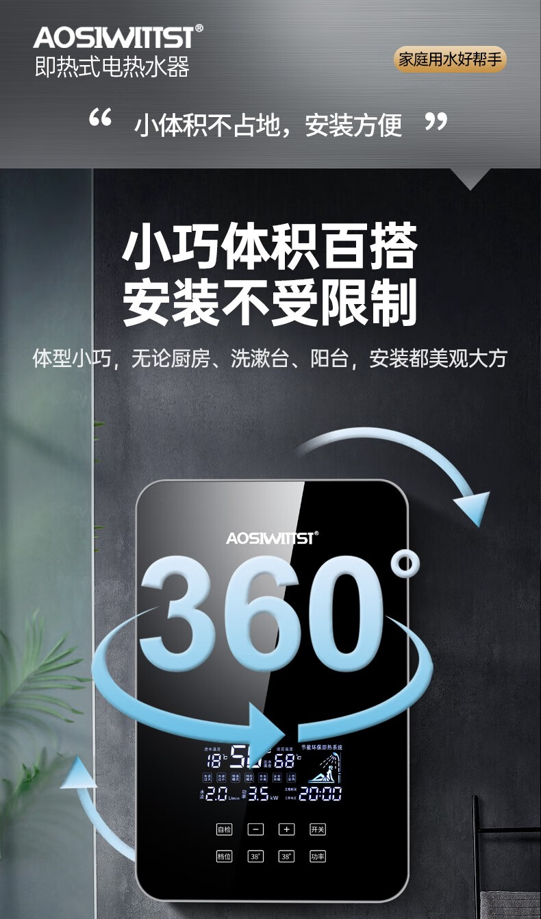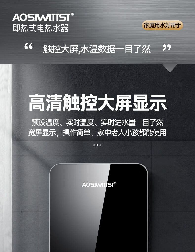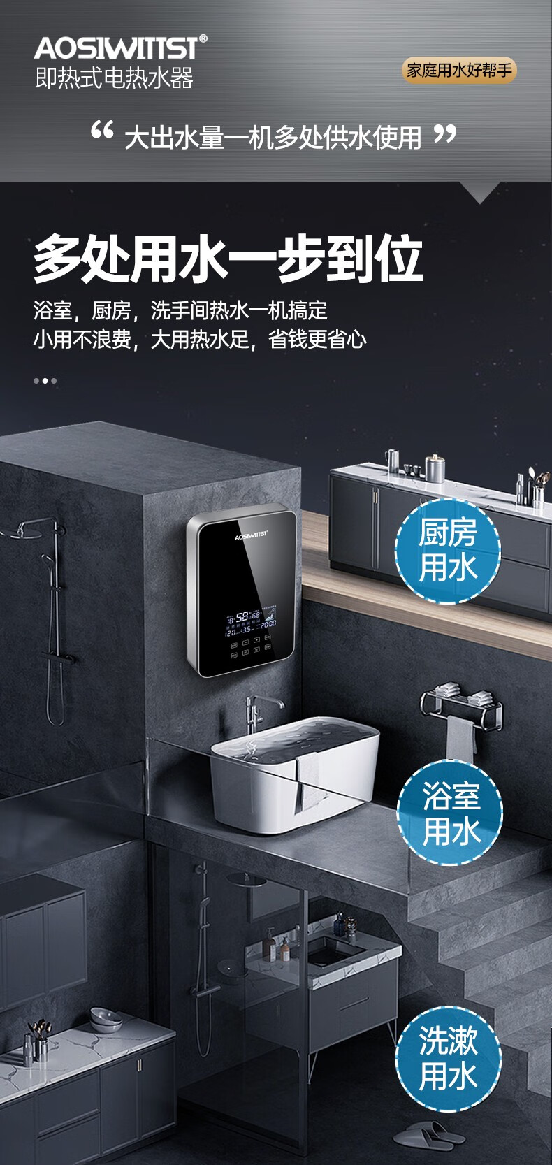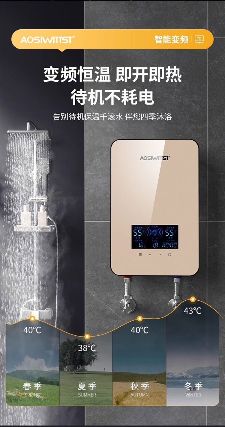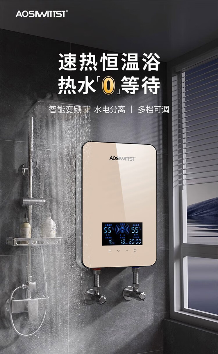 AOSIWITTST即热式电热水器家用洗澡速热变频恒温热的快过水热上门安装 8500W 黑色≥4平方电线可用
