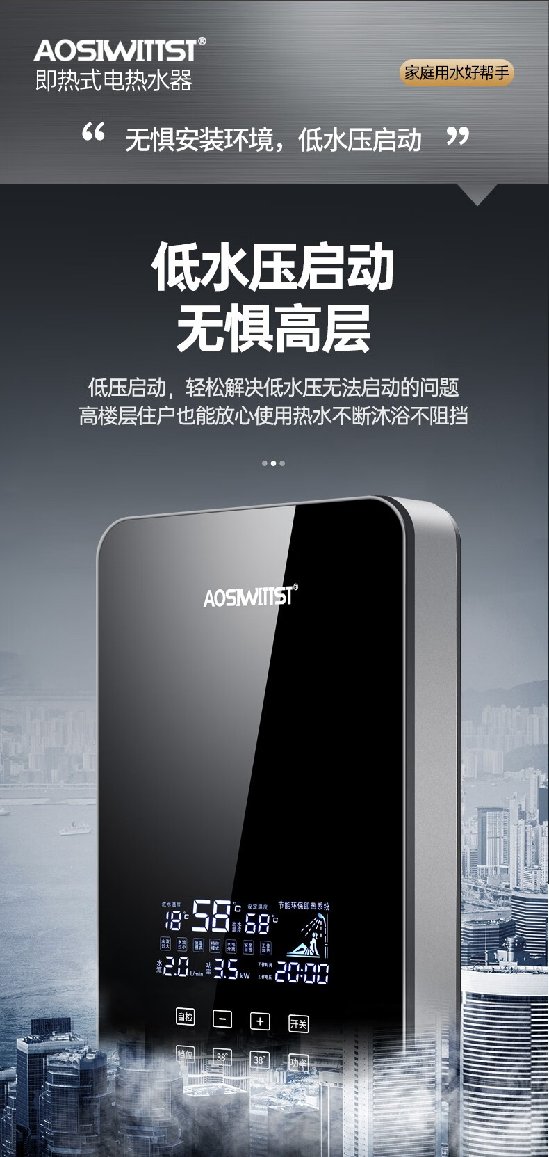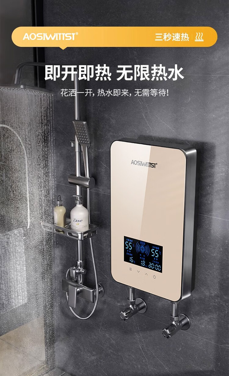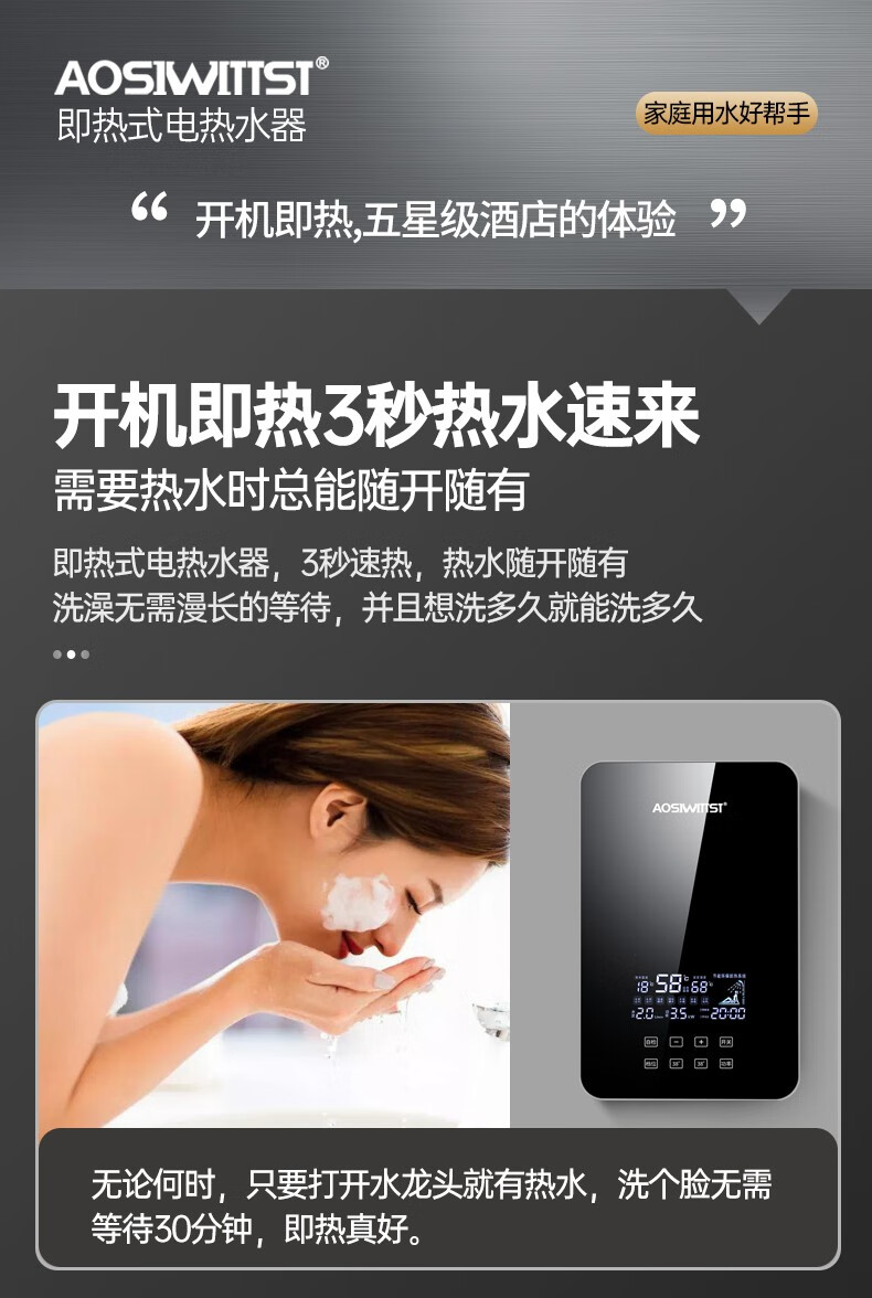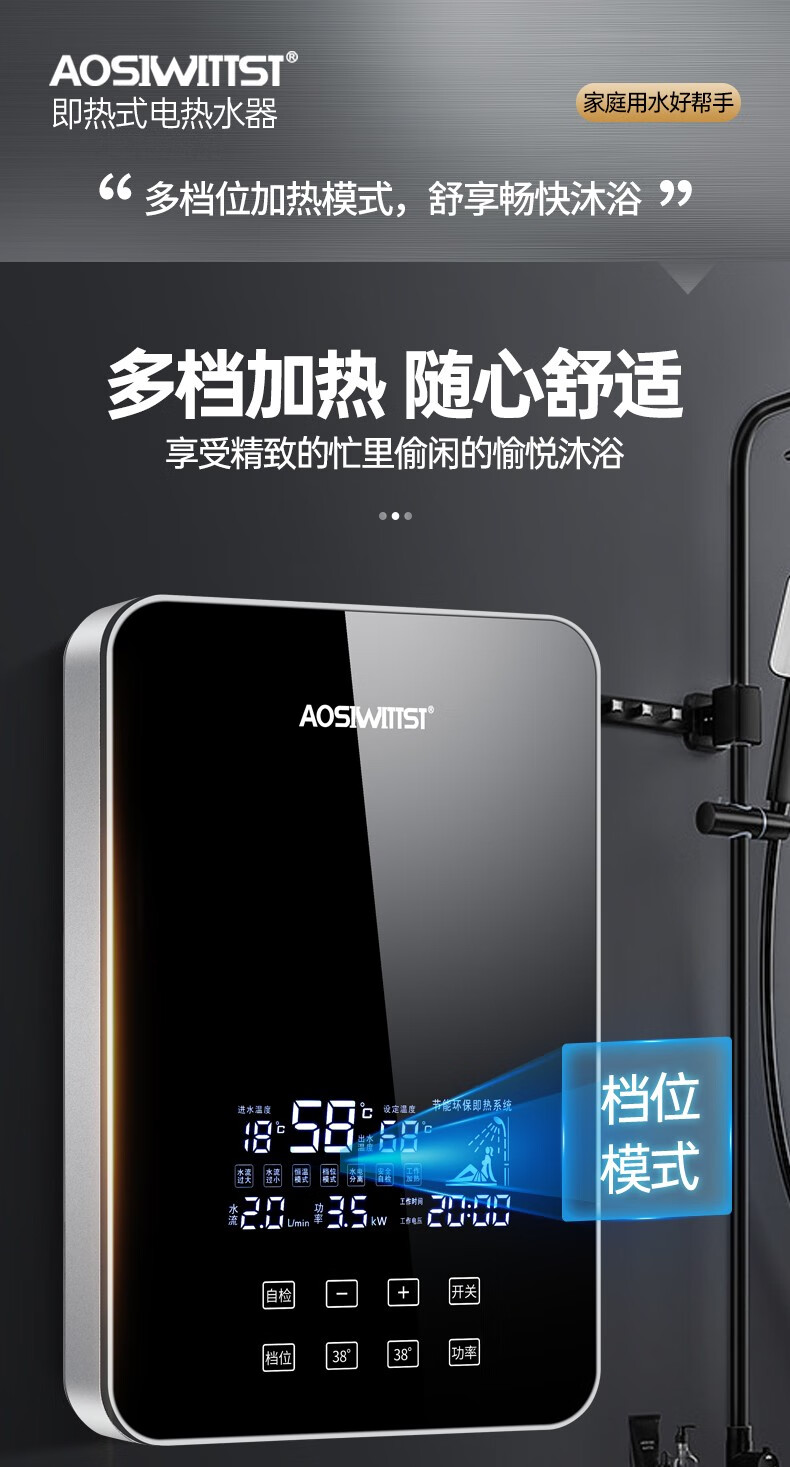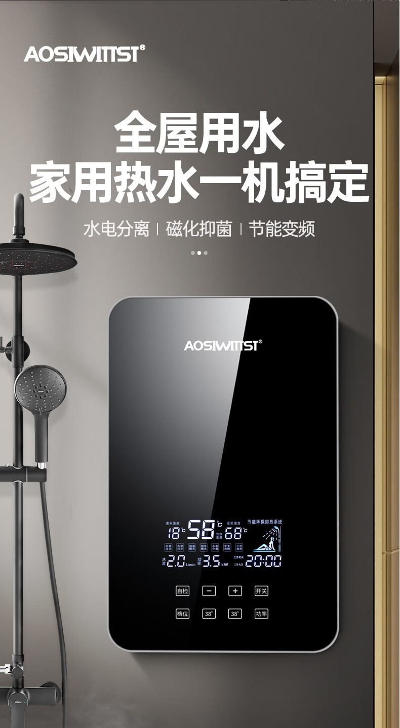 AOSIWITTST即热式电热水器家用洗澡速热变频恒温热的快过水热上门安装 8500W 黑色≥4平方电线可用
