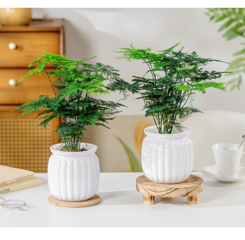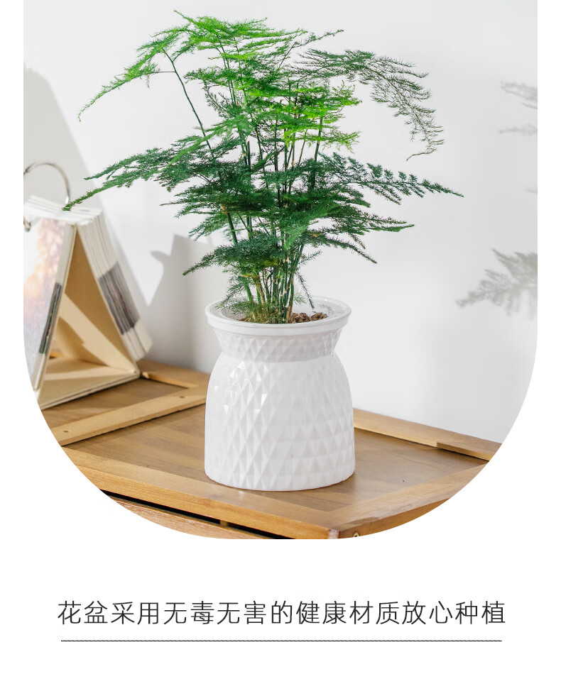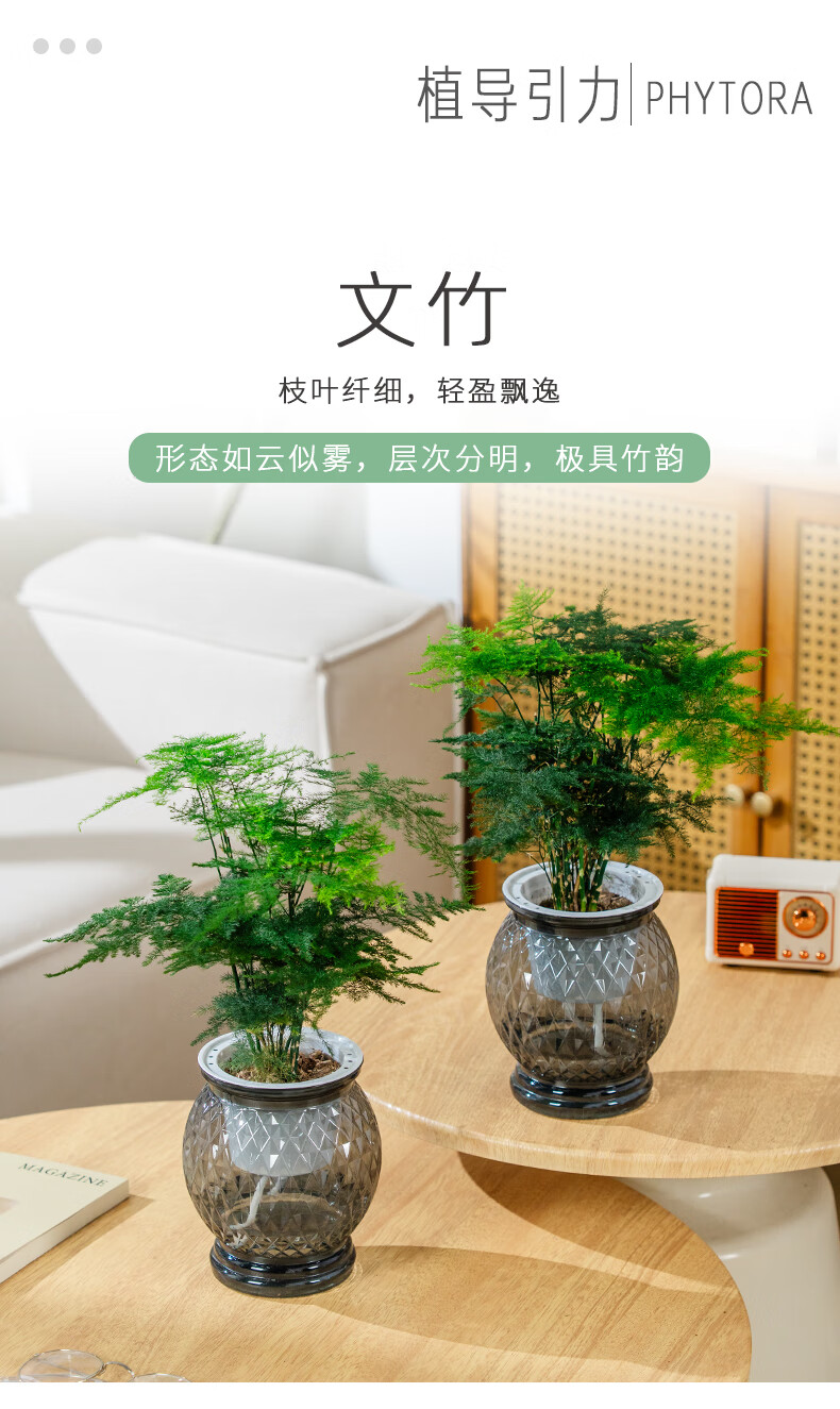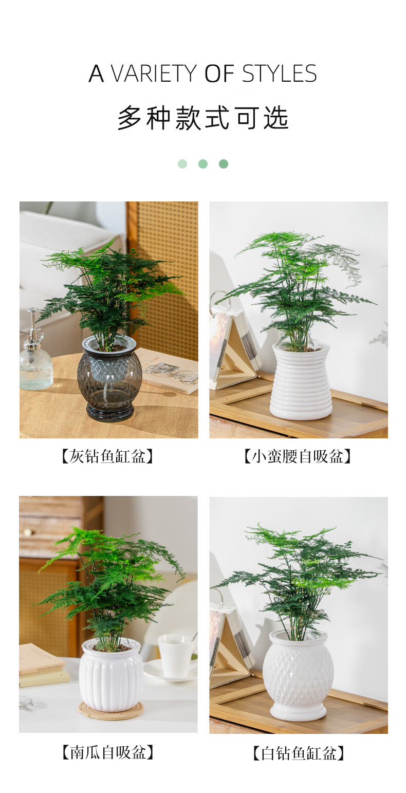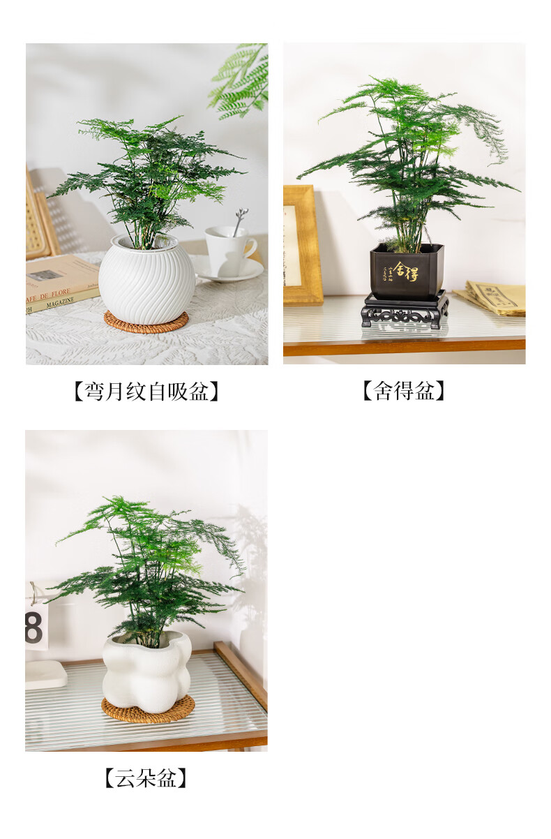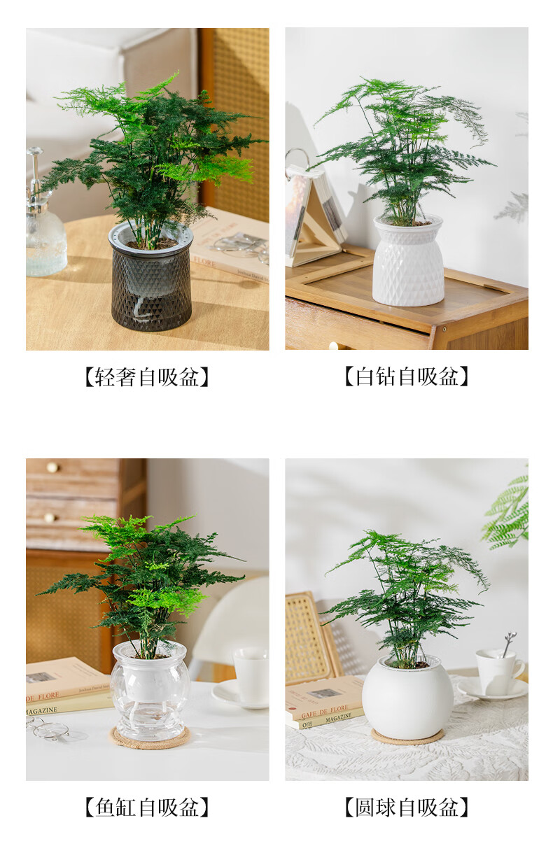 植导引力文竹绿植小盆栽四季常青室内桌面花卉植物 【2盆】文竹+轻奢灰自吸盆