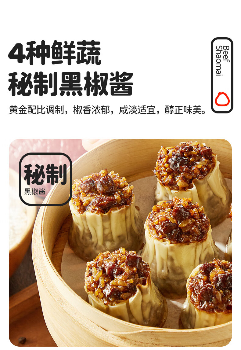 蒸笼头【黑椒牛肉多多纸皮烧麦】 儿童营养速食早餐 薄皮牛肉烧卖 黑椒牛肉多多烧麦(240g4个)*2袋