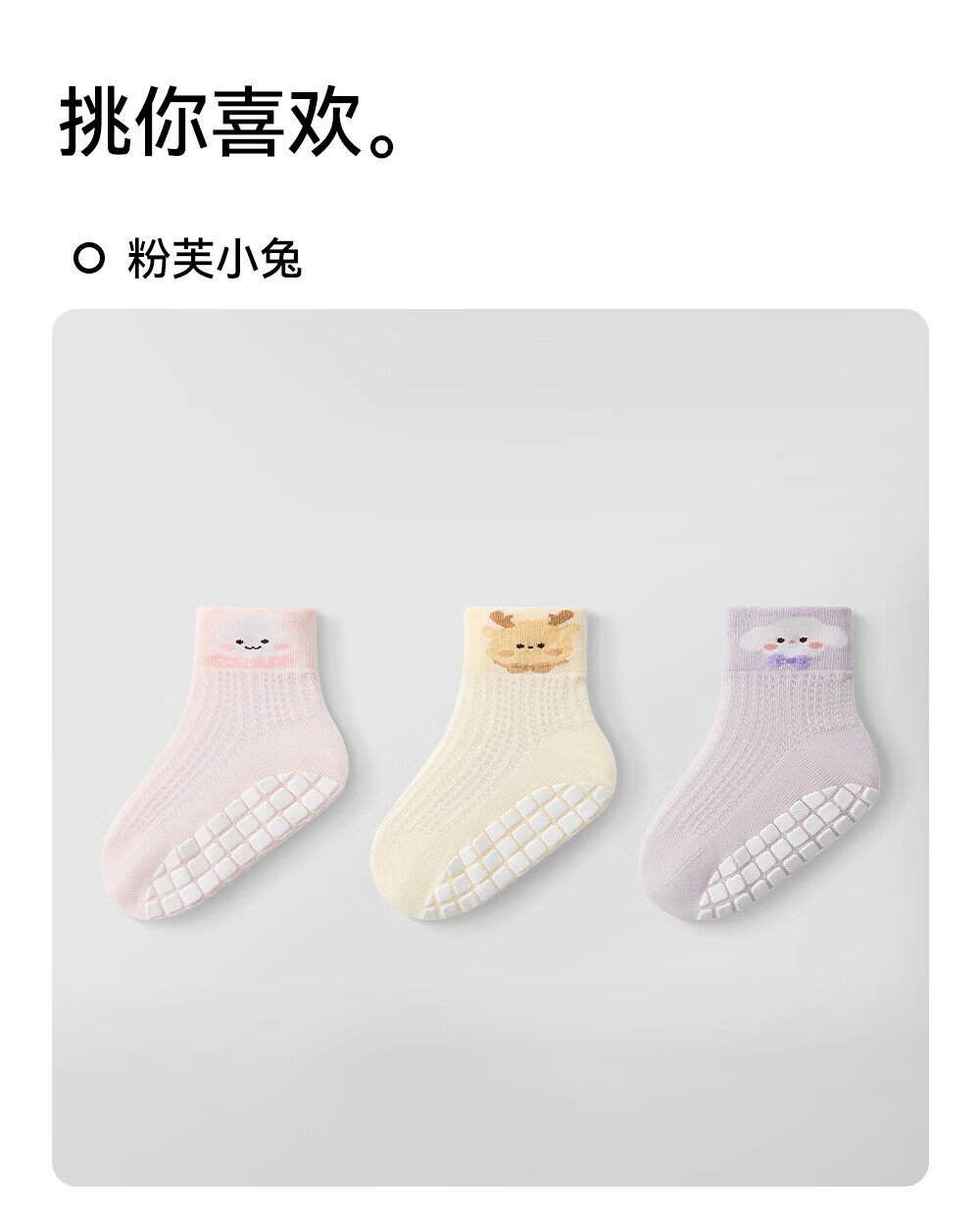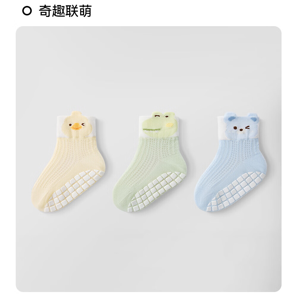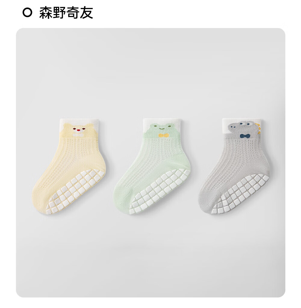 贝肽斯婴儿袜子夏季室内隔凉新生儿地板袜1-3岁宝宝防滑袜男女童中筒袜 森野奇友 3双 1-3岁 【适合脚长12-14cm】