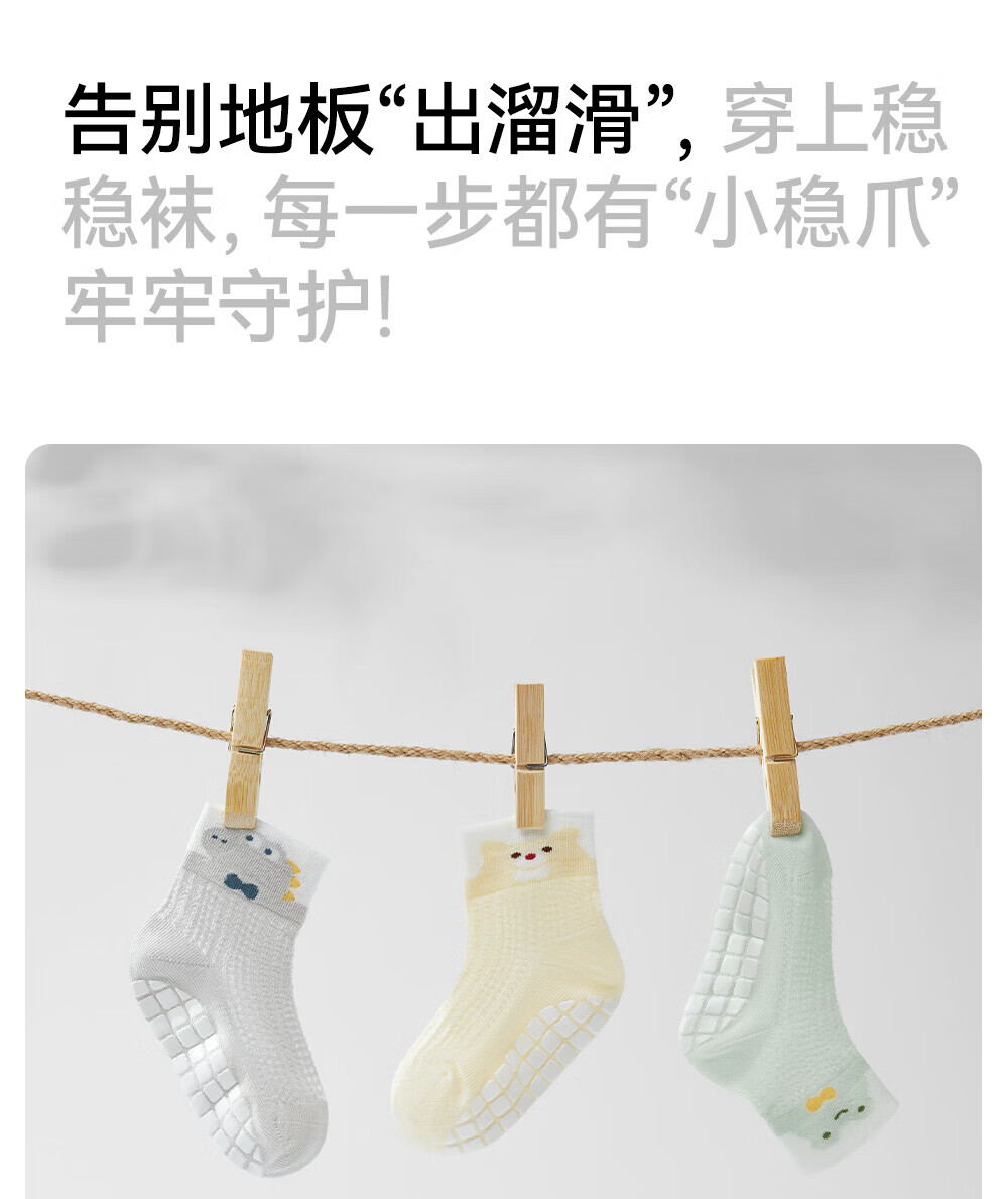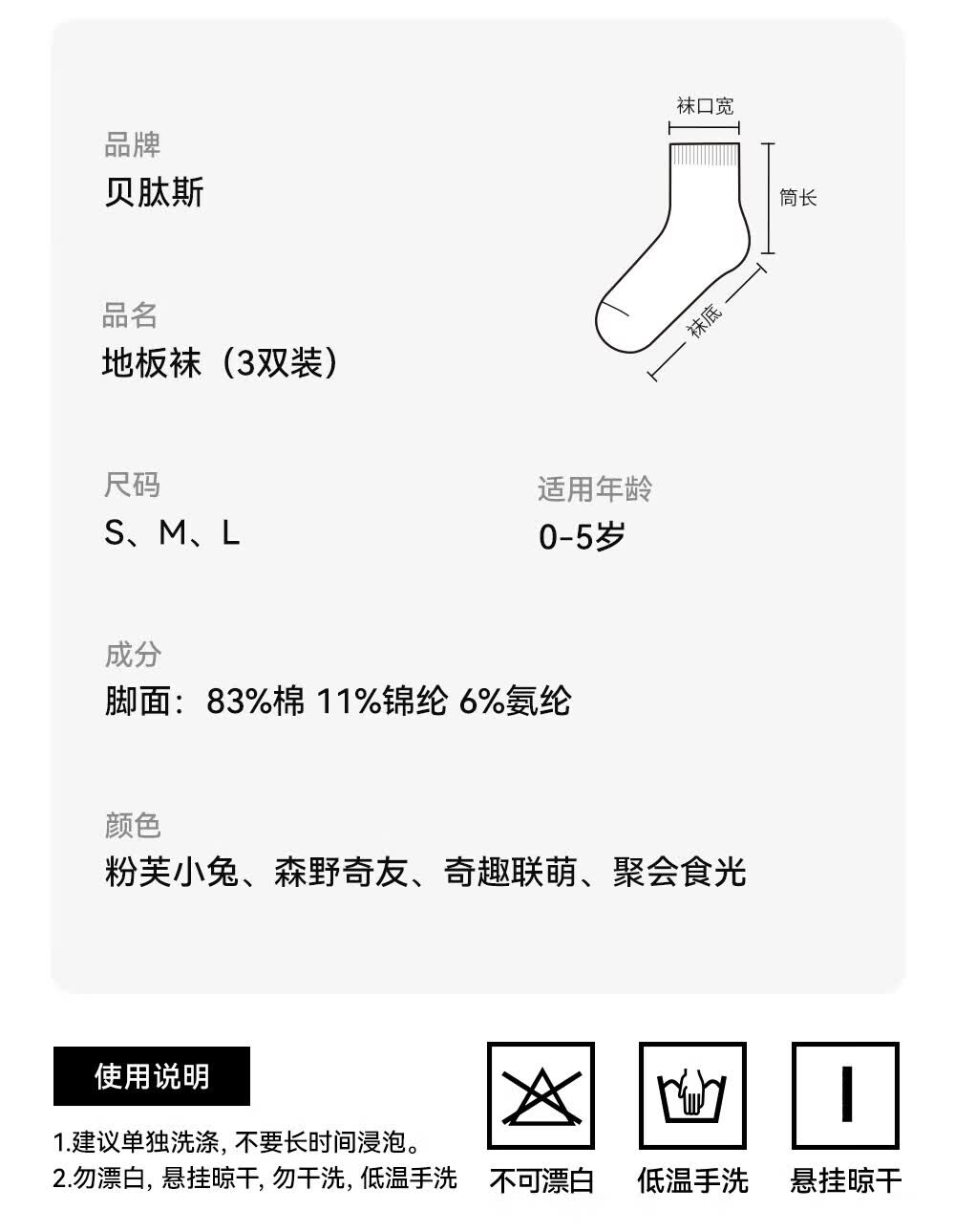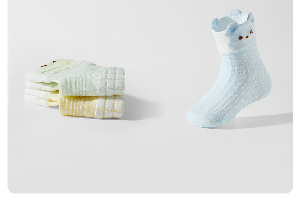 贝肽斯婴儿袜子夏季室内隔凉新生儿地板袜1-3岁宝宝防滑袜男女童中筒袜 森野奇友 3双 1-3岁 【适合脚长12-14cm】
