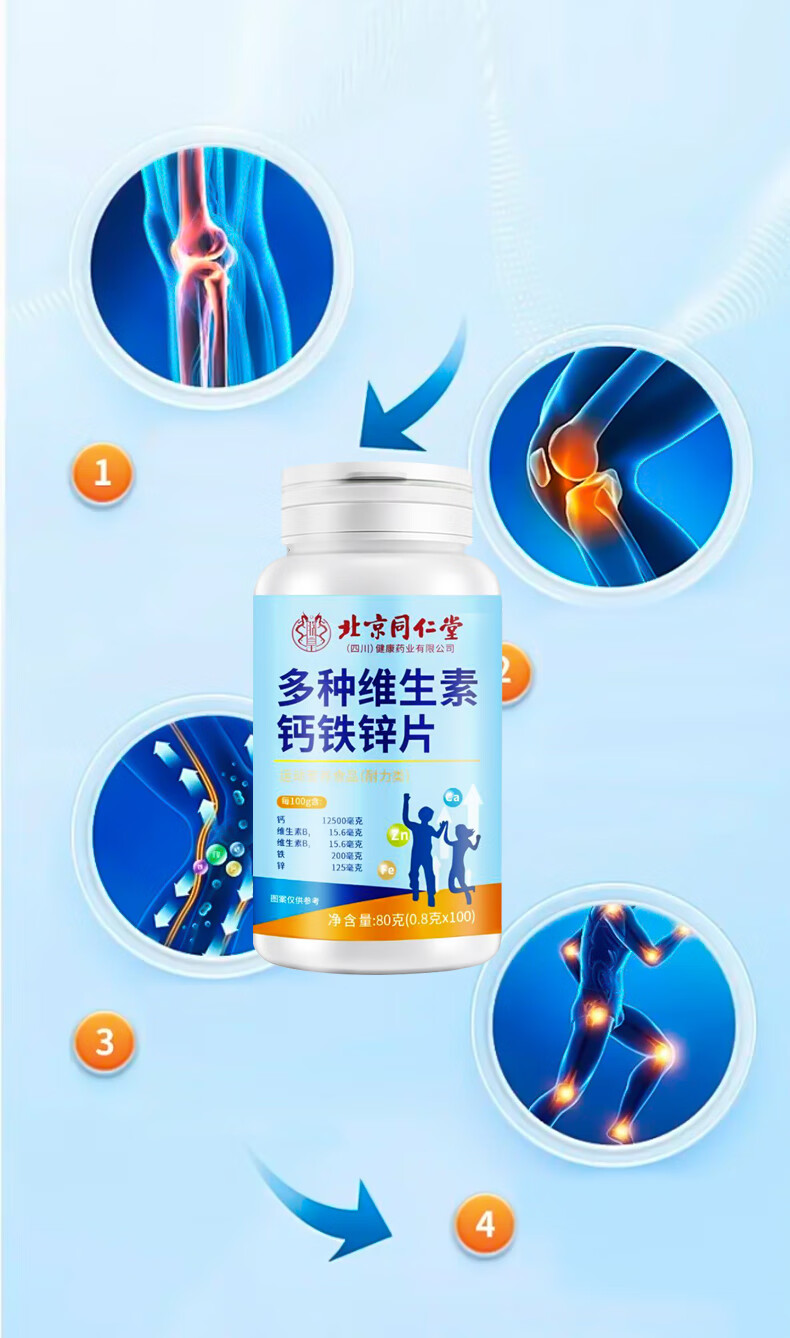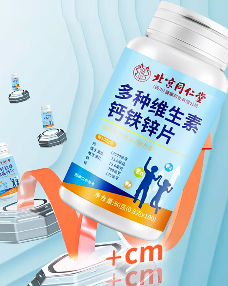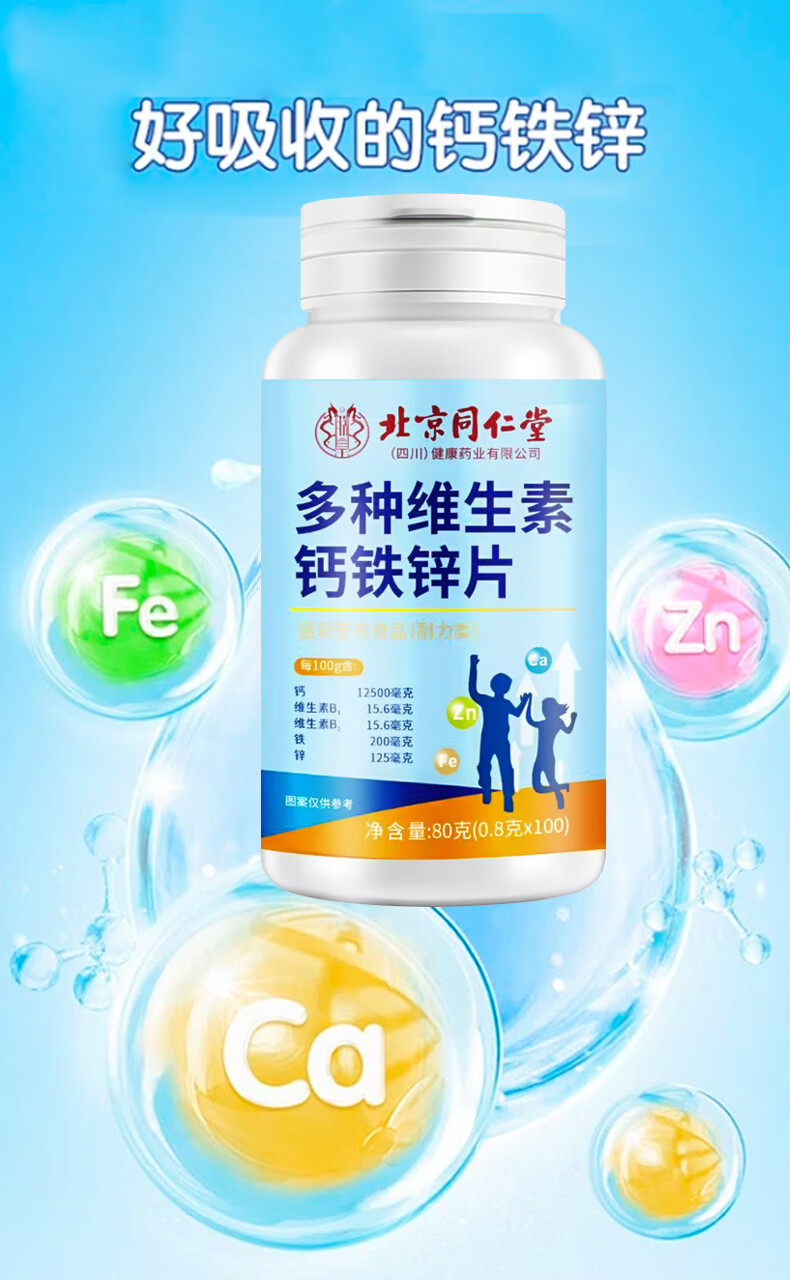 同仁堂北京朕皇 钙铁锌钙片多种维生素儿童青少年钙片3-5岁3-6岁4-22岁 拍1发2【钙铁锌】包含赠送共2瓶 100片*1瓶