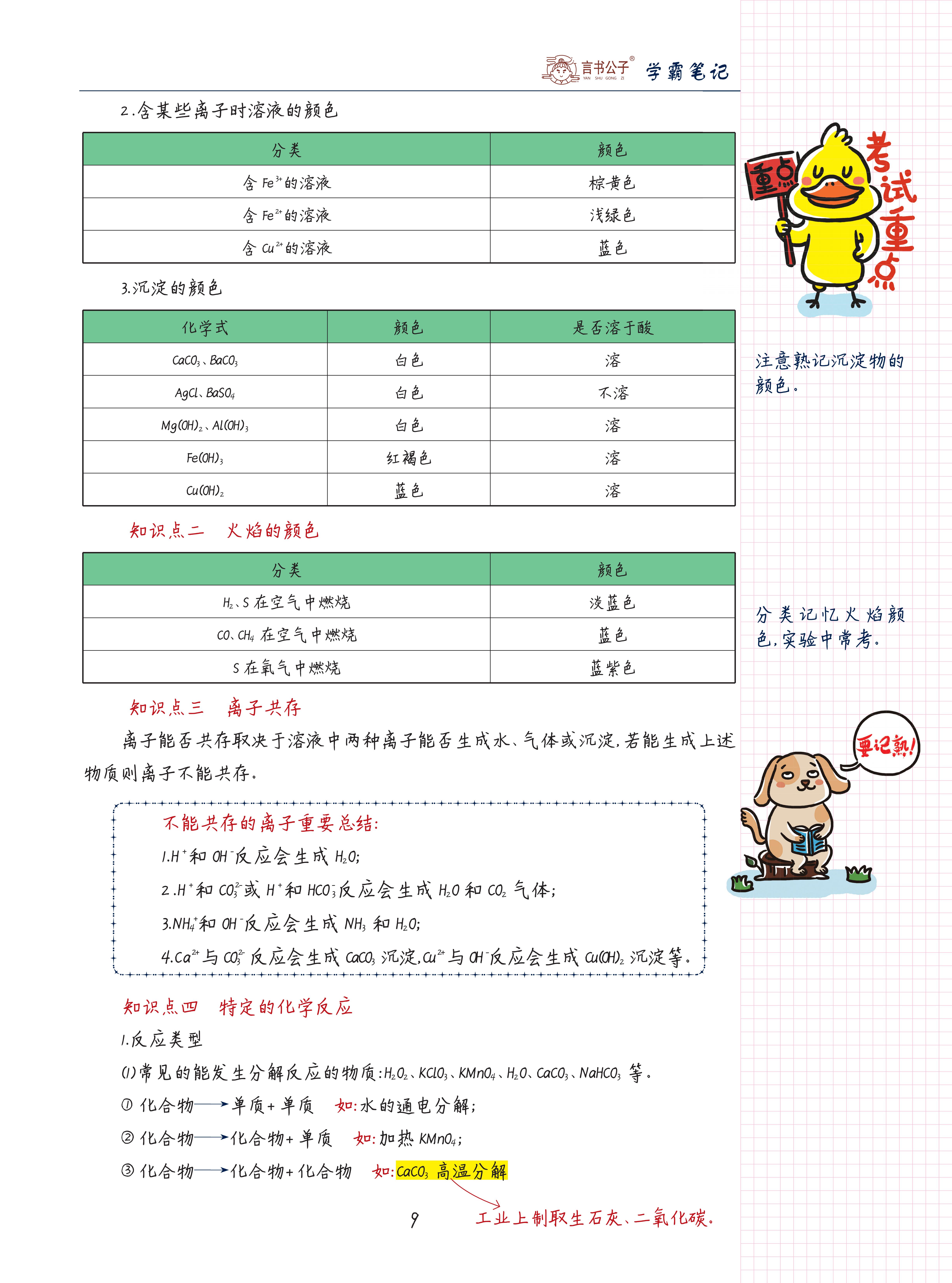 学霸笔记手写初中语数英物化历政7科衡水中学状元辅导书初三下册数学物理化学七八九年级初一初二总复习资料 【物理+化学+生物】共3本