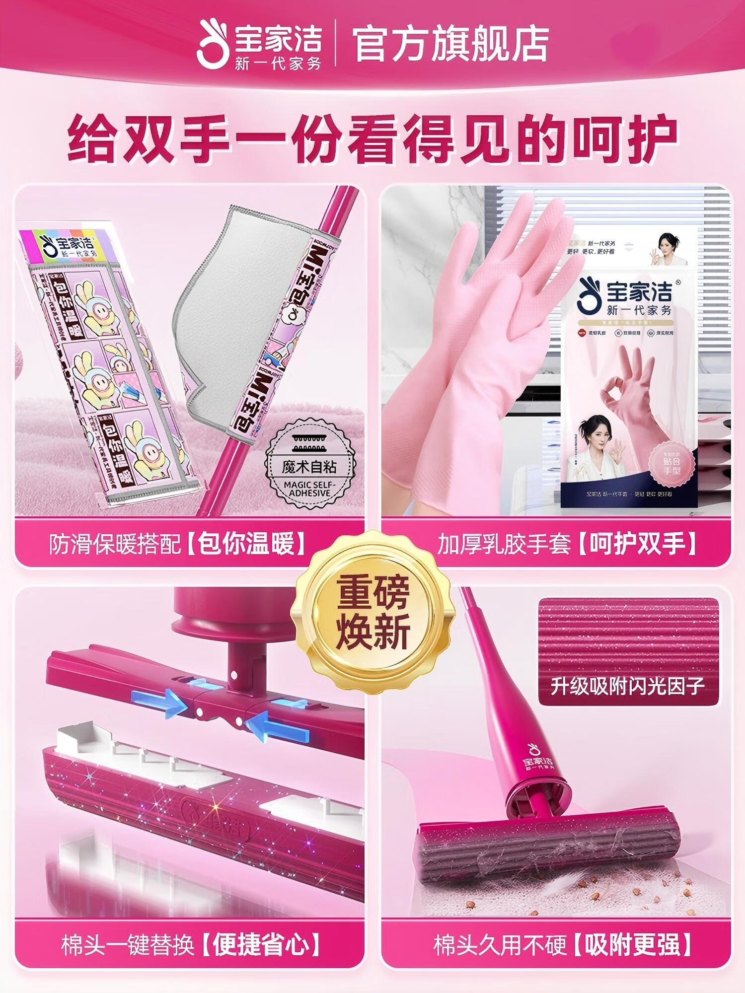 宝家洁【杨幂同款】胶棉拖把吸水海绵对折拖把一拖净免手洗2025礼盒 杨幂同款【冬日限定宝幂礼盒+桌面小拖把】+限量周边