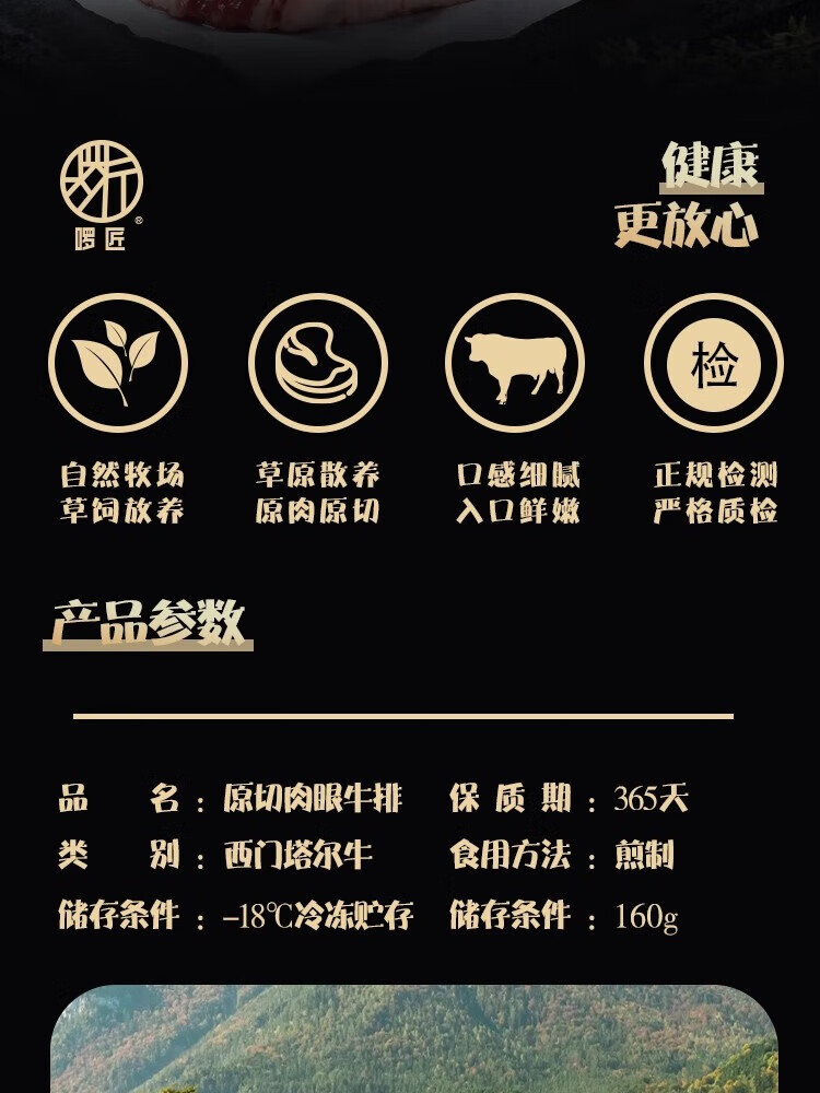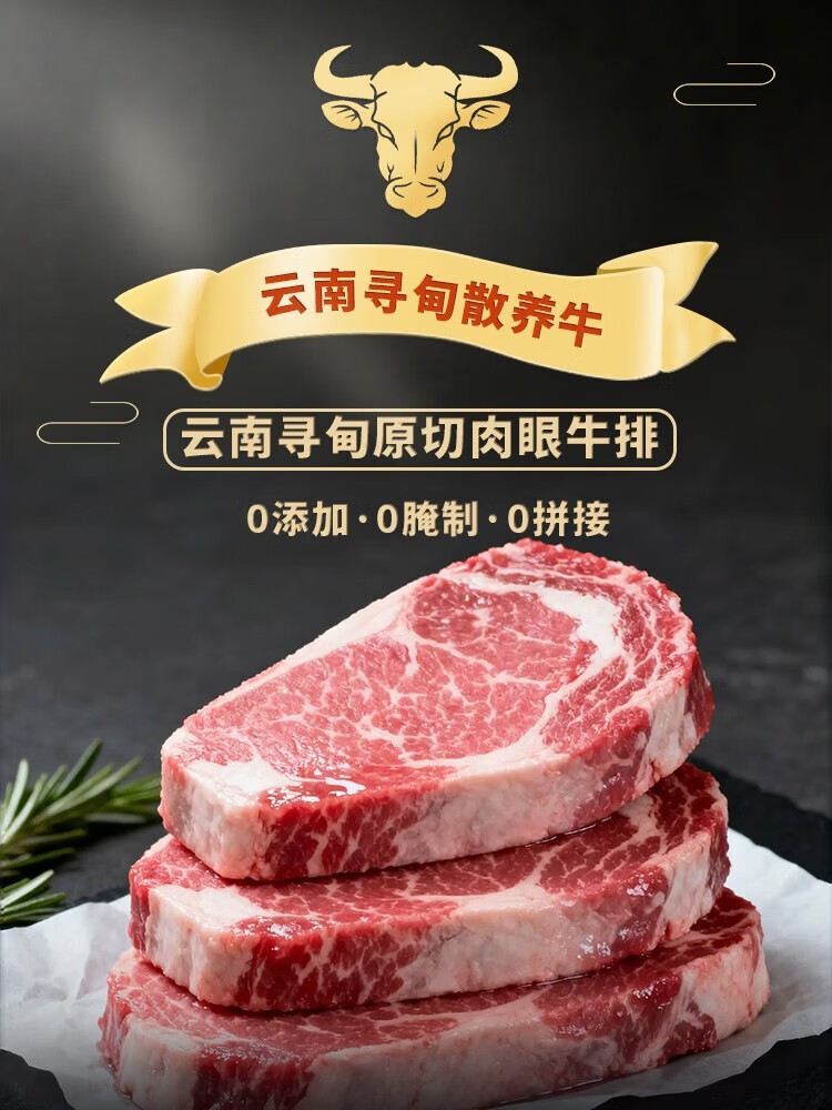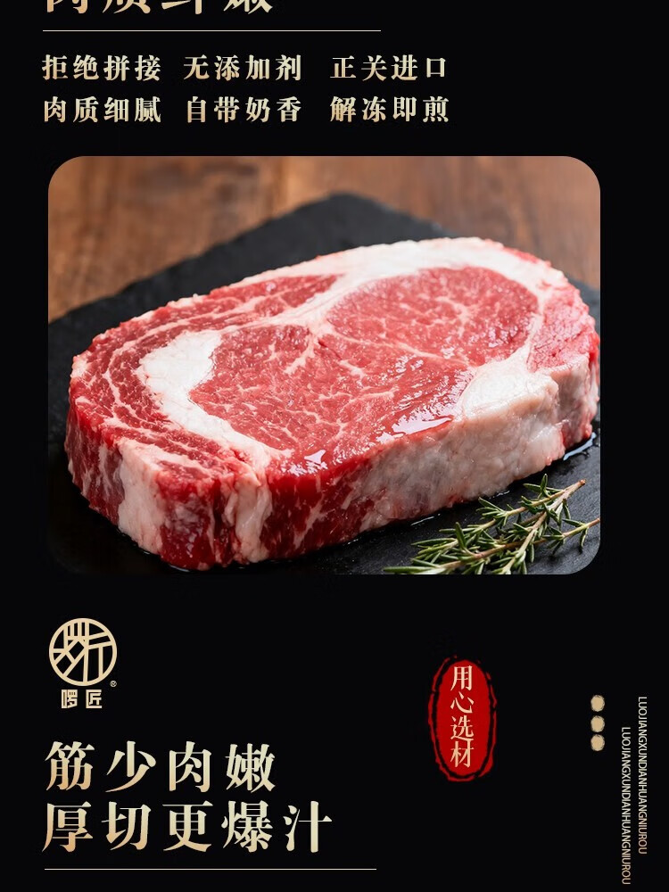 啰匠云南高山寻甸谷饲西门塔牛排黑椒牛扒清真雪花肉眼牛排生鲜 160g