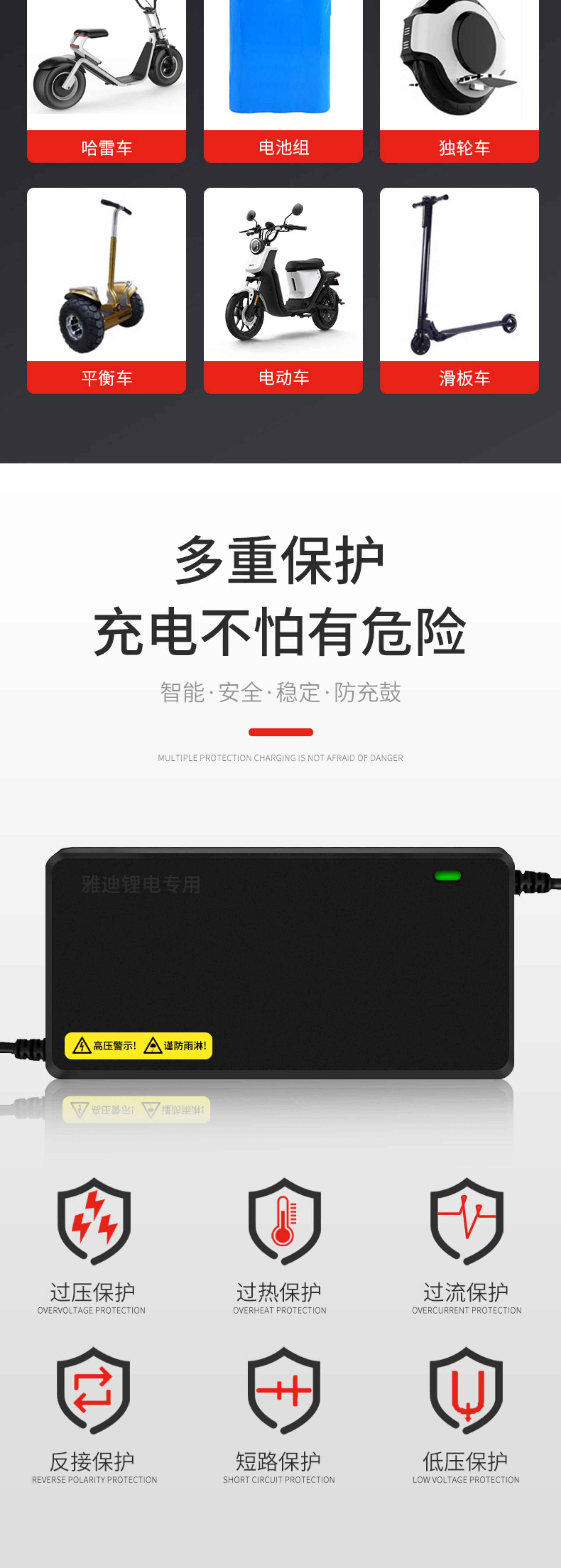 山头林村雅迪电动车充电器锂电池专用原装正品卡侬头麦克风48V2A3A12A20AH 雅迪锂电48V2A卡农头