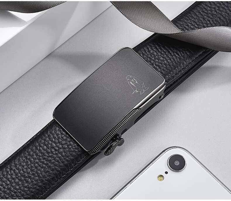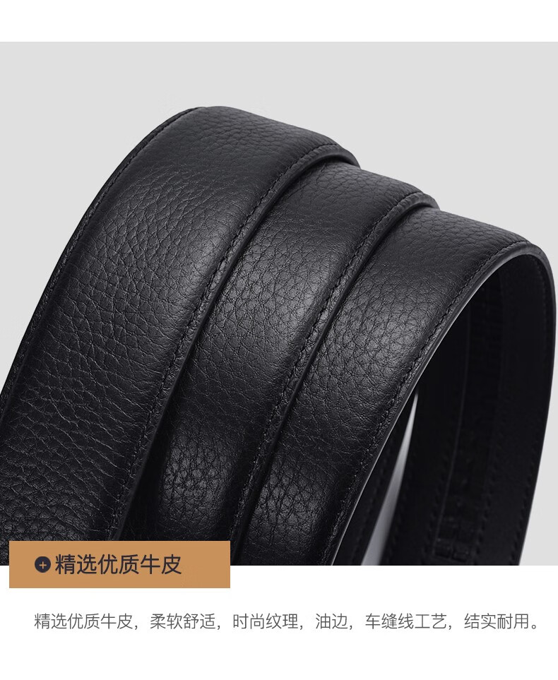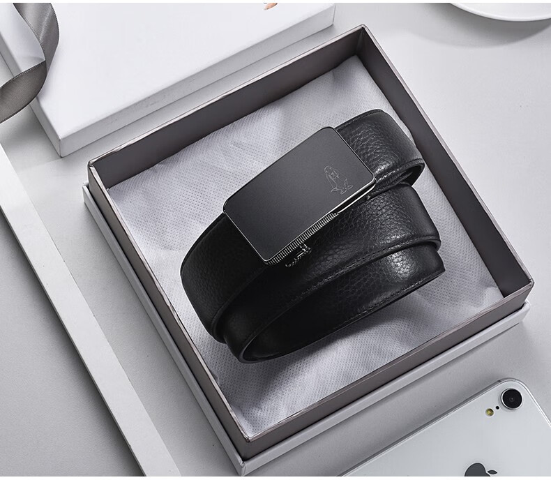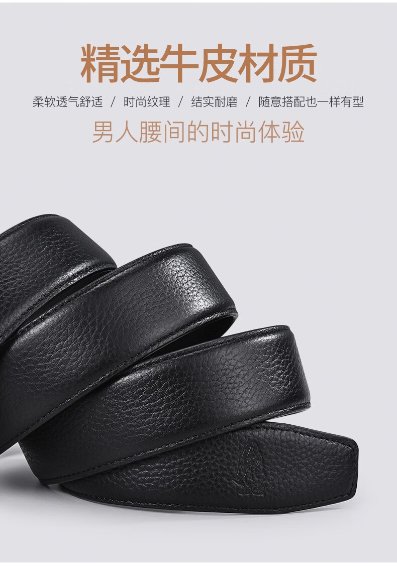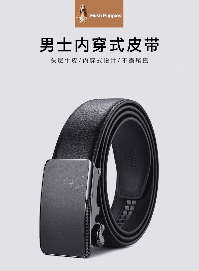 暇步士(Hush Puppies)皮带男士腰带内穿式自动扣头层牛皮皮带商务休闲真皮内扣裤腰带男 黑款510 125cm