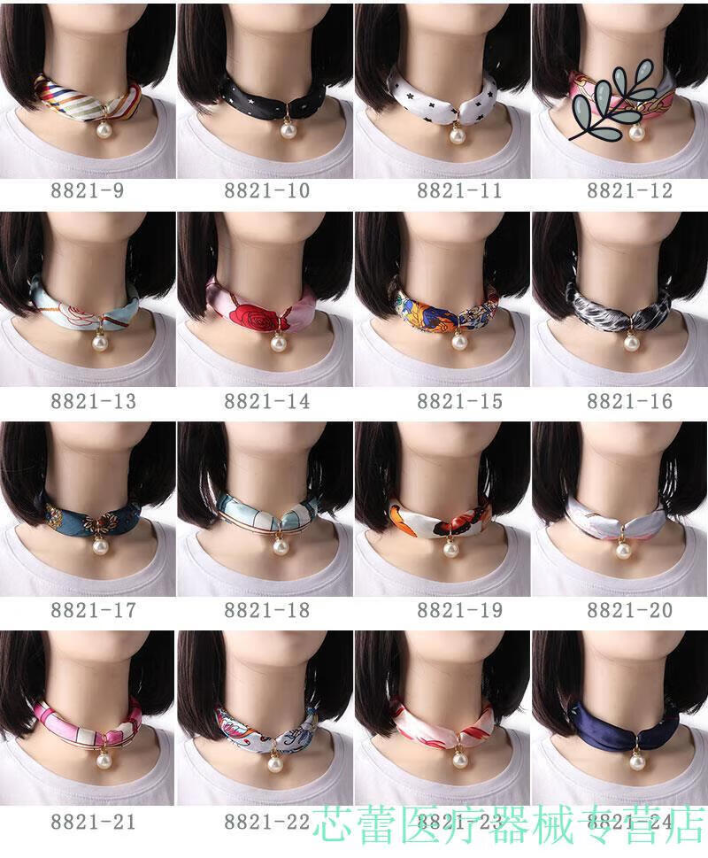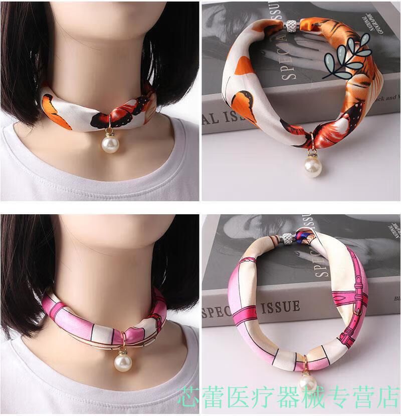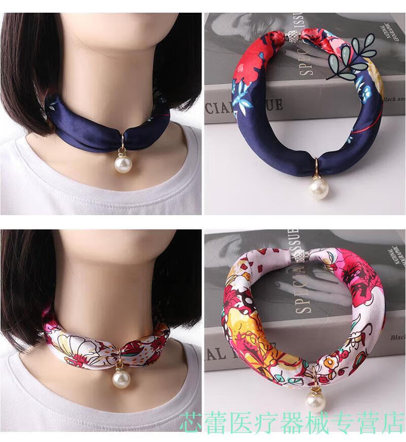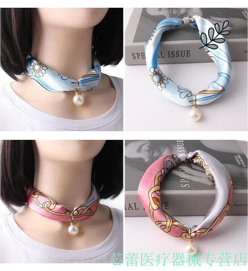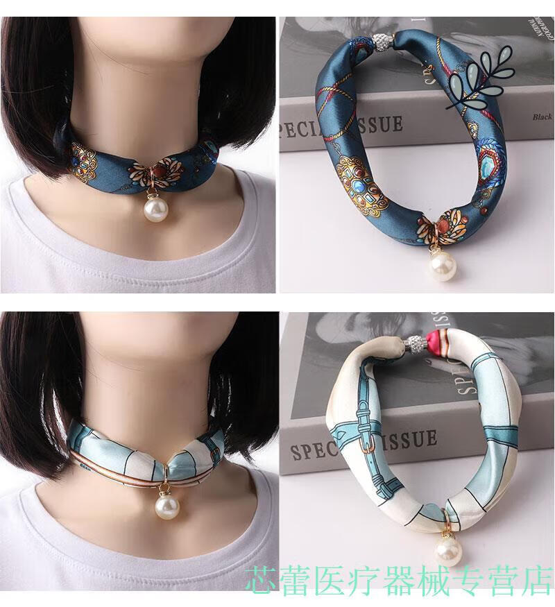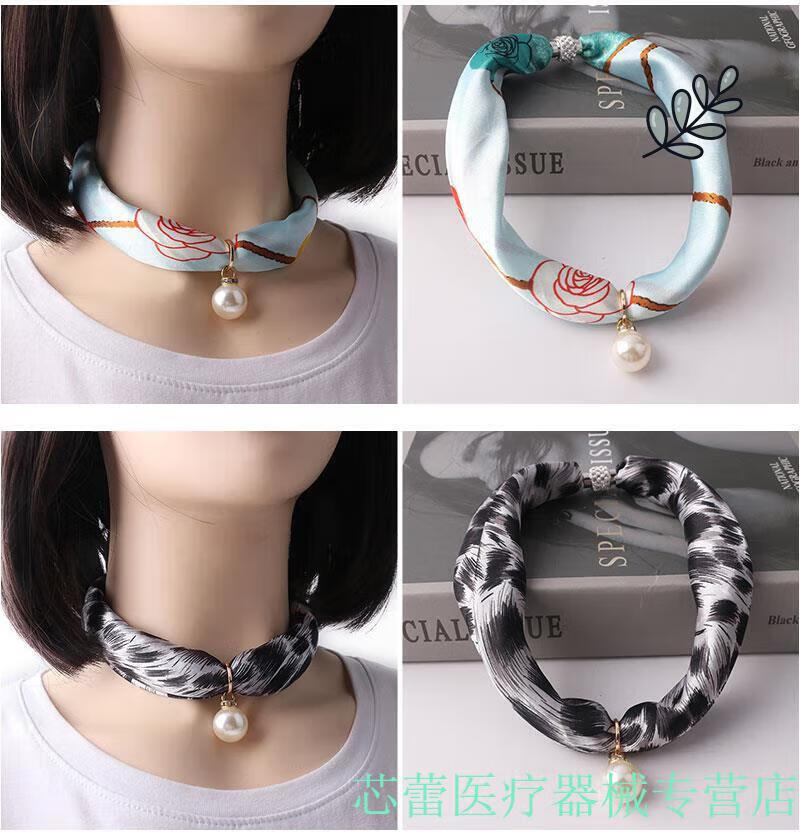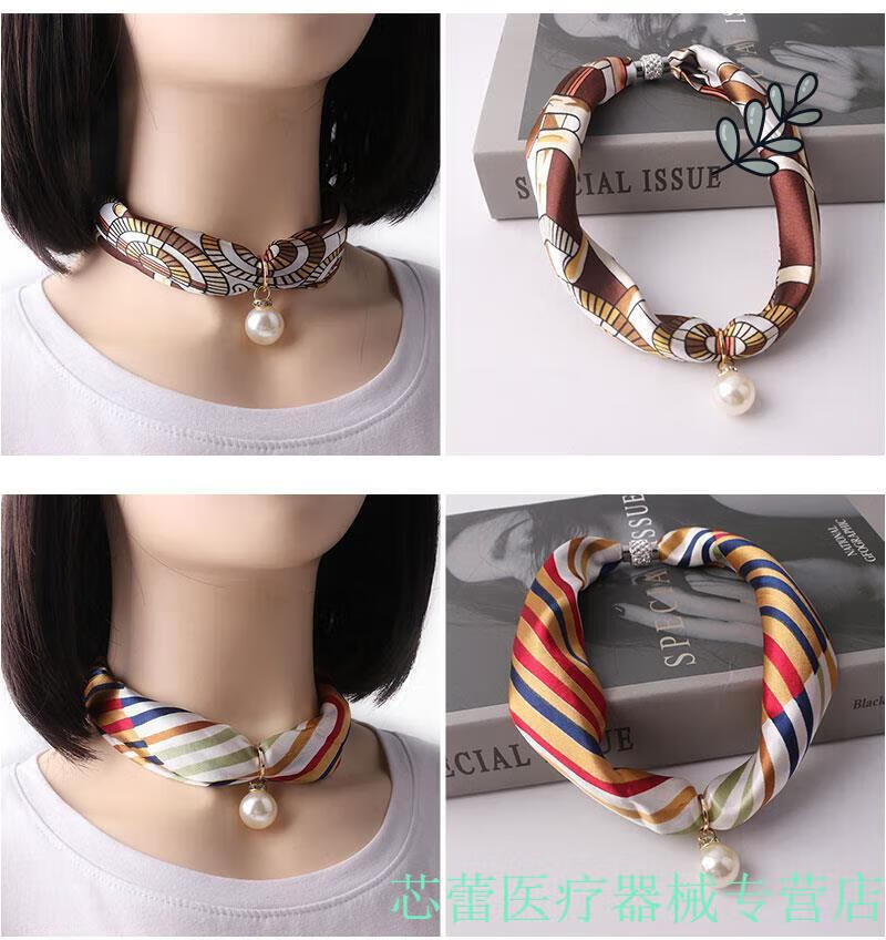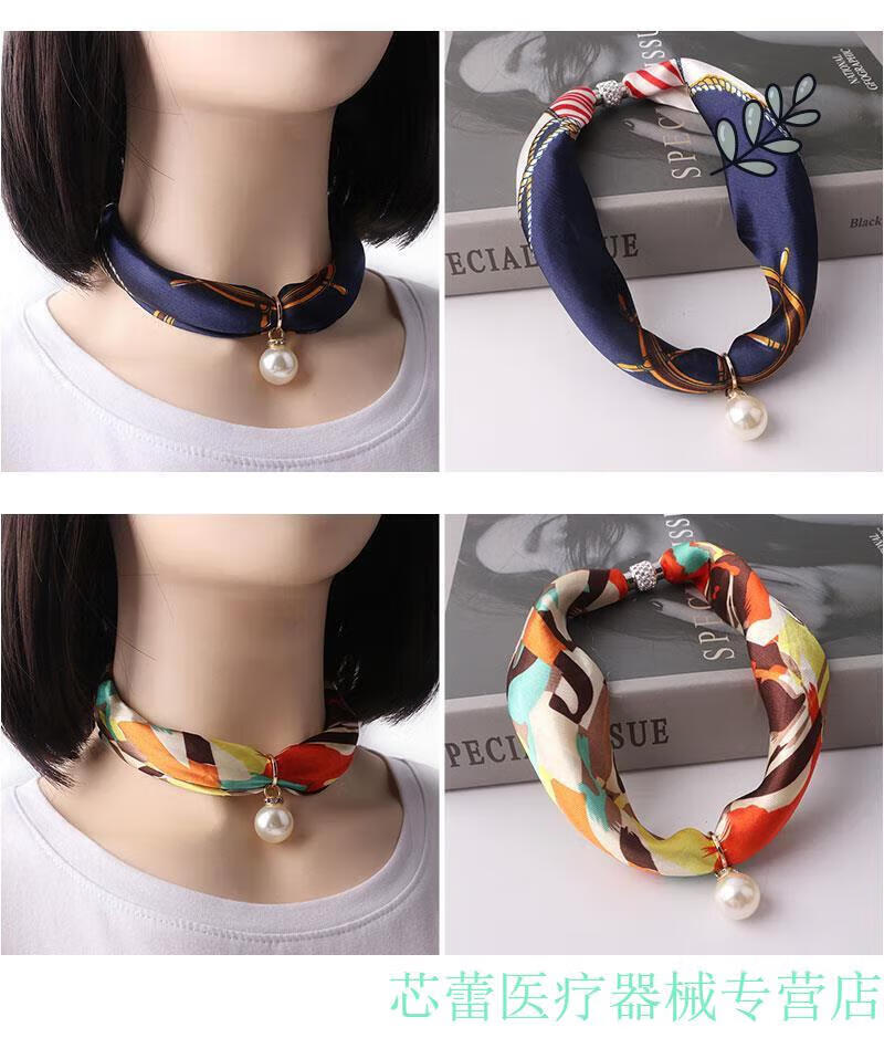 通用脖子遮疤痕神器甲状腺术后遮挡项链夏季珍珠仿真丝巾女士脖子遮疤 翠绿色 8821-1