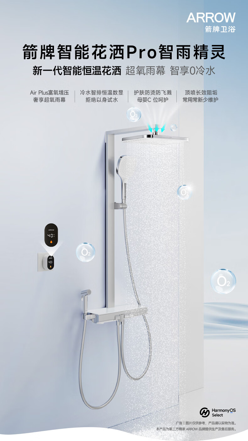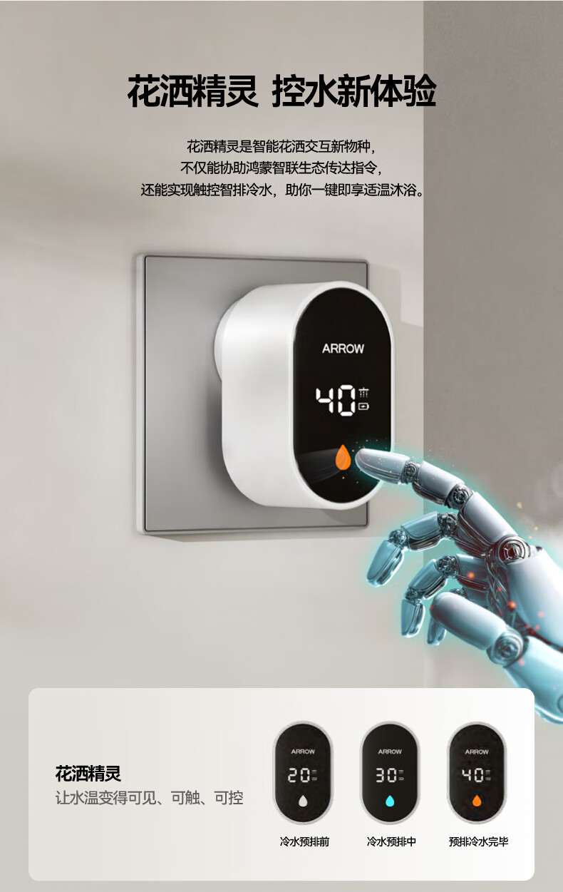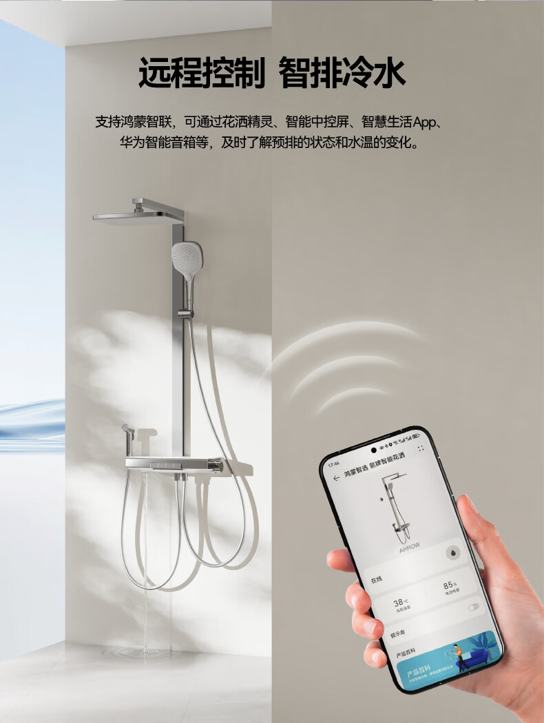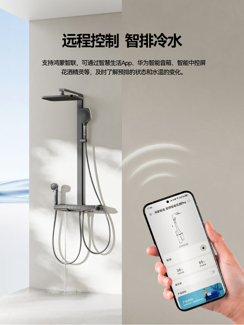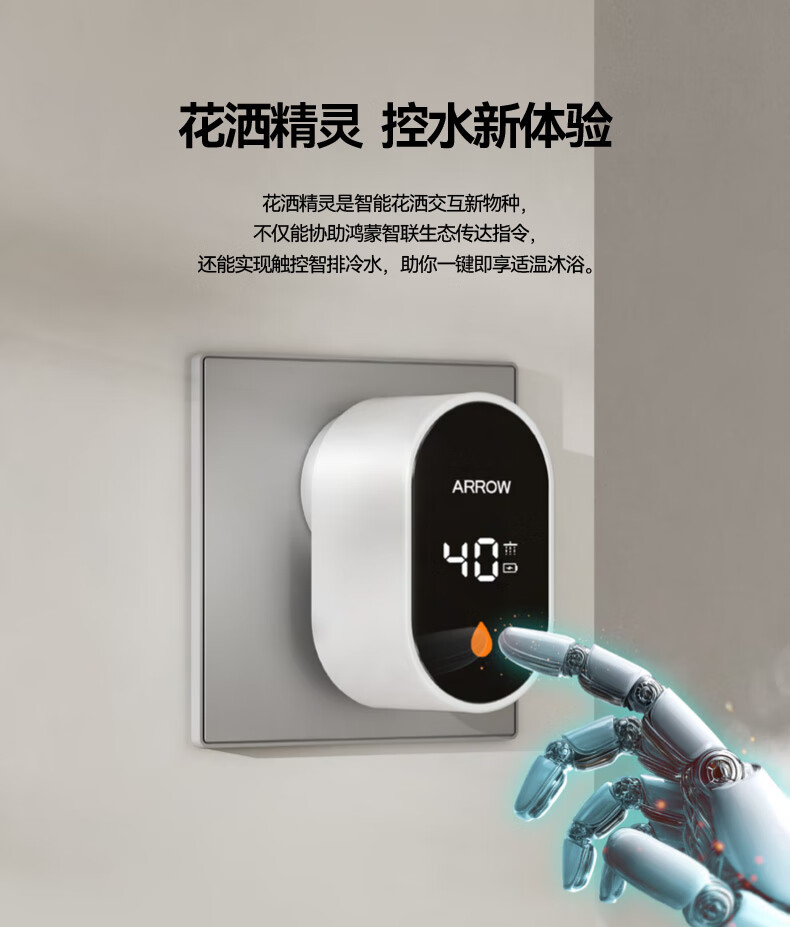 箭牌(ARROW)鸿蒙智选【智雨精灵】淋浴花洒套装0冷水恒温琴键增压花洒 鸿蒙智选花洒Pro-金属灰色