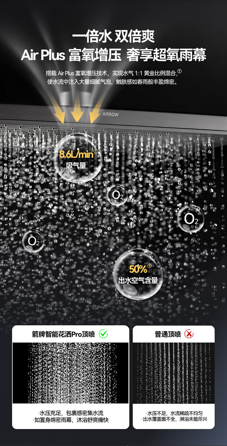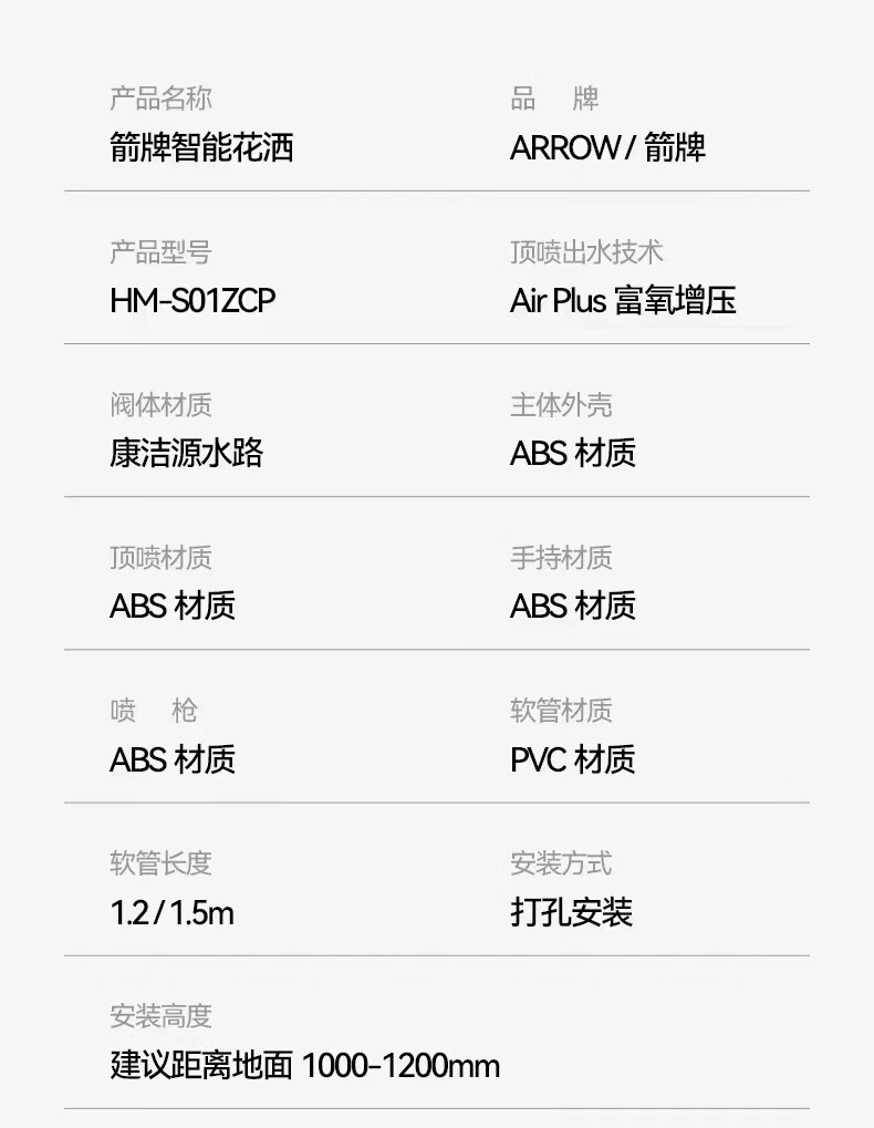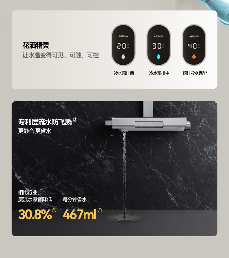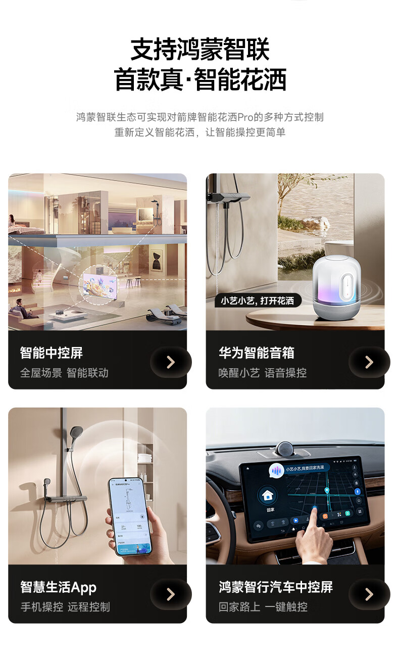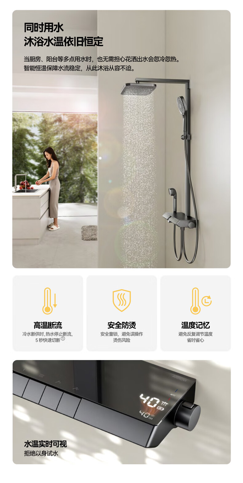 箭牌(ARROW)鸿蒙智选【智雨精灵】淋浴花洒套装0冷水恒温琴键增压花洒 鸿蒙智选花洒Pro-金属灰色