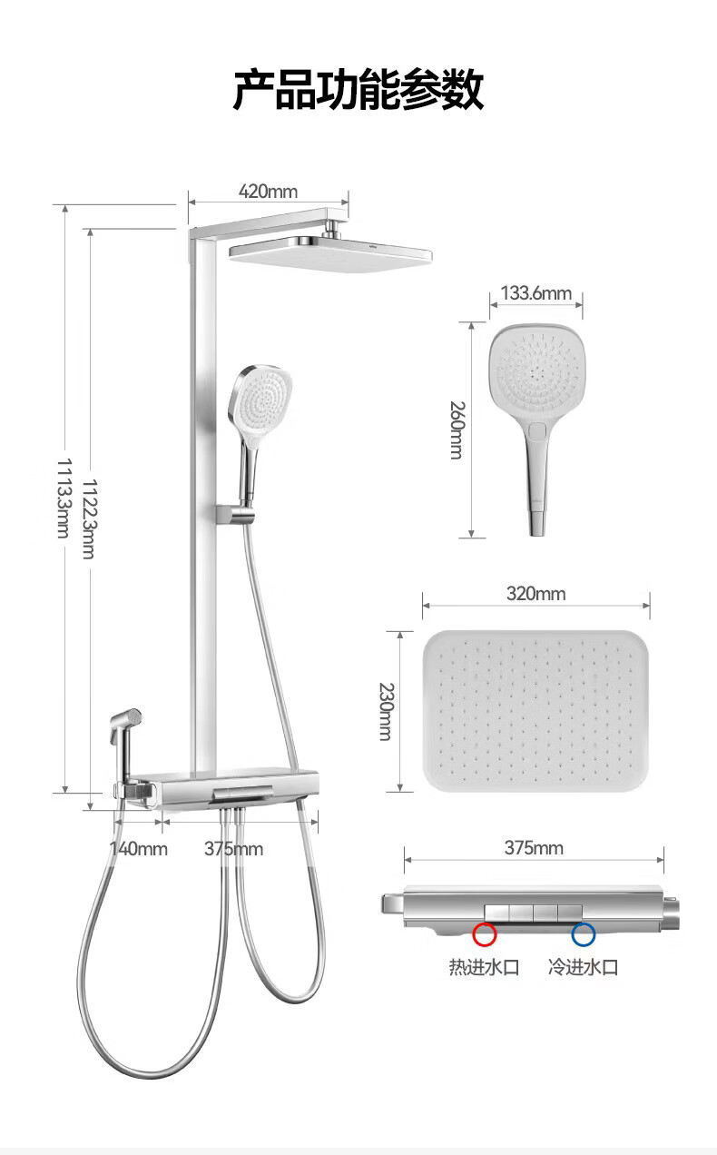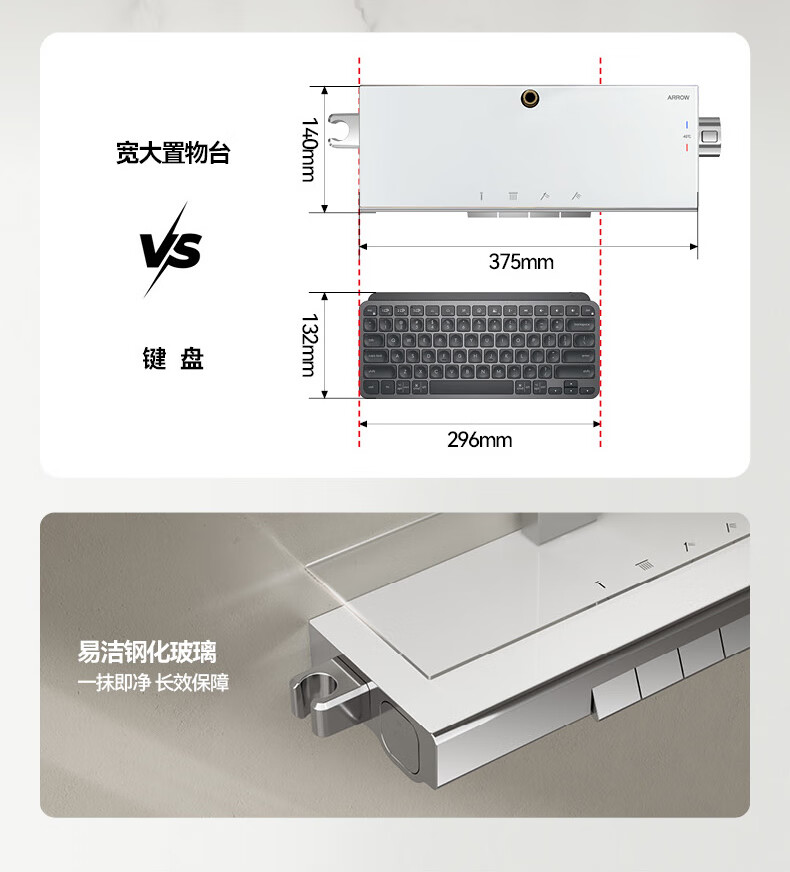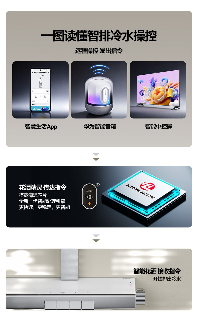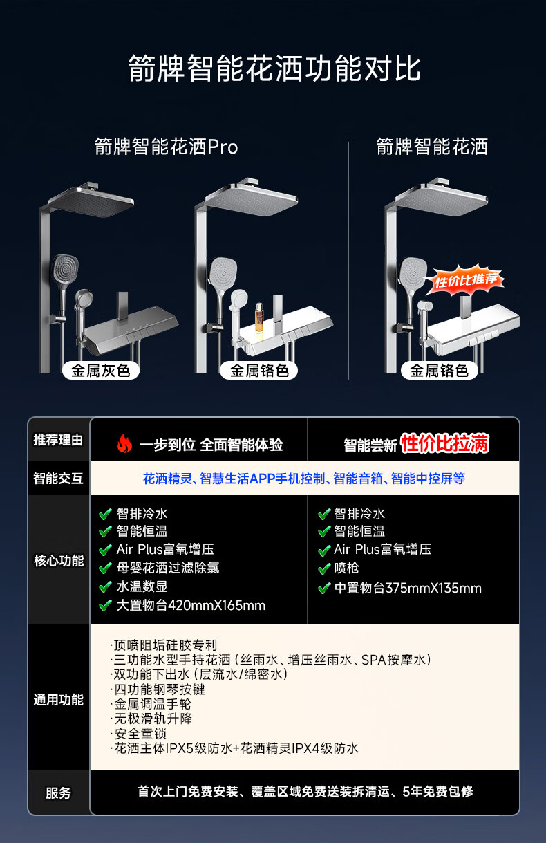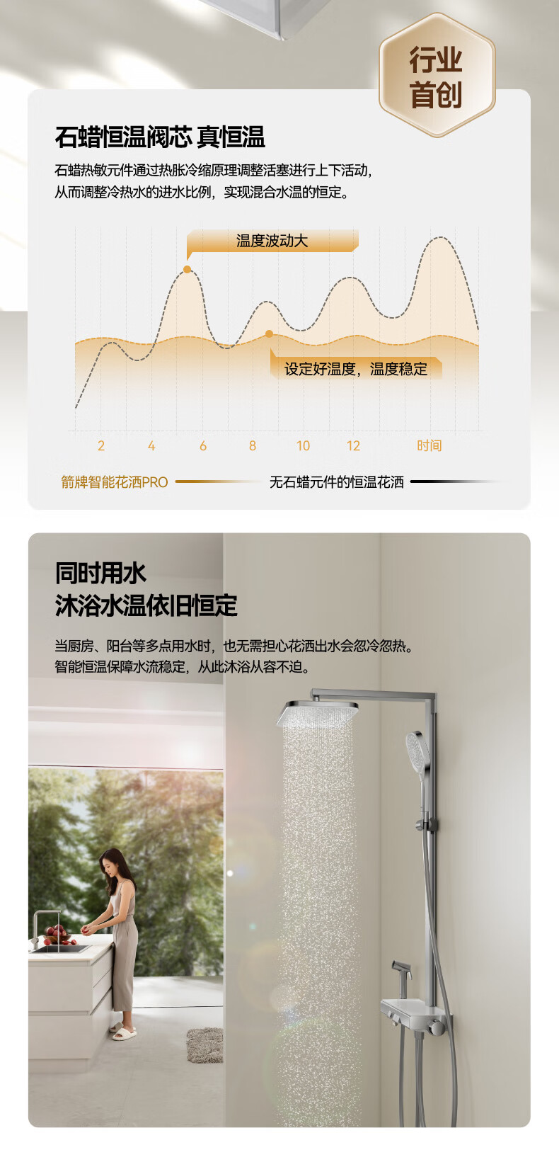 箭牌(ARROW)鸿蒙智选【智雨精灵】淋浴花洒套装0冷水恒温琴键增压花洒 鸿蒙智选花洒Pro-金属灰色