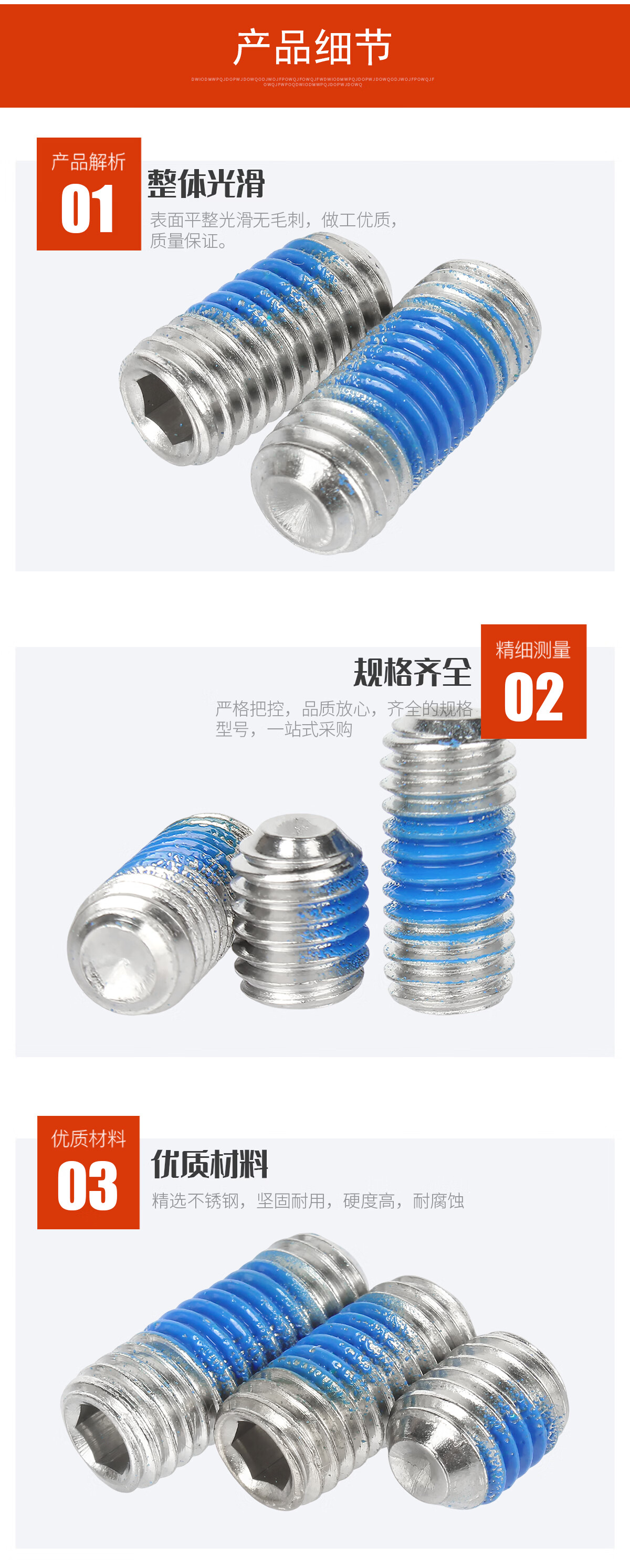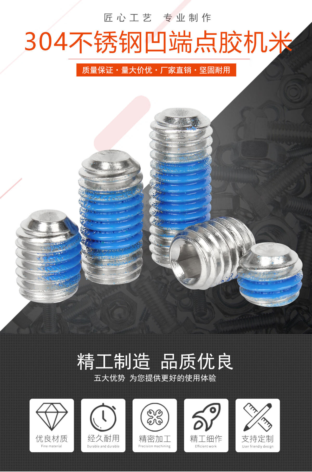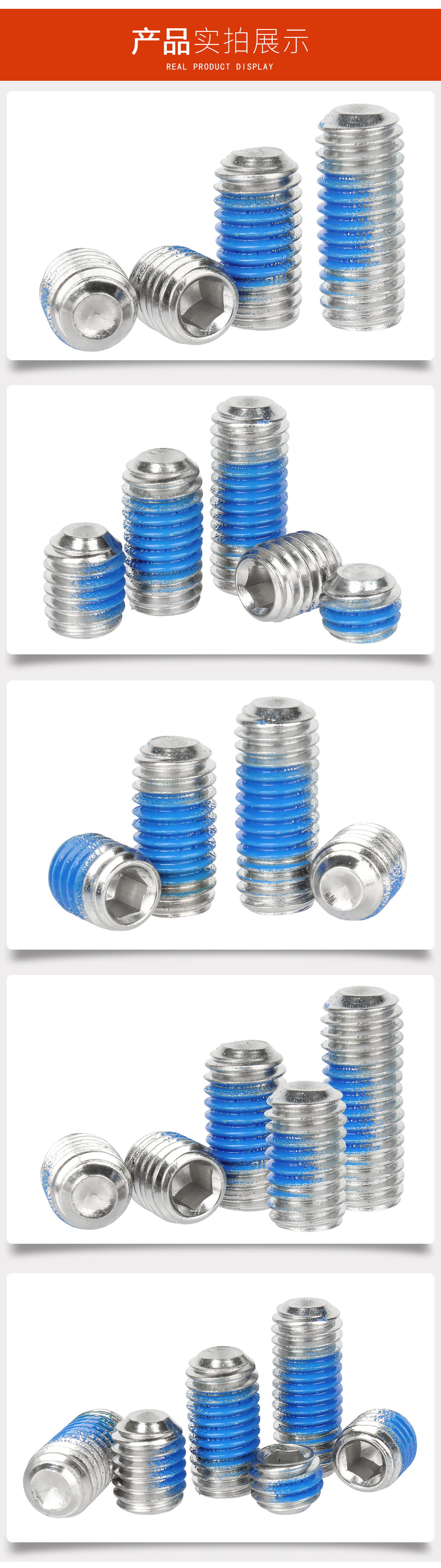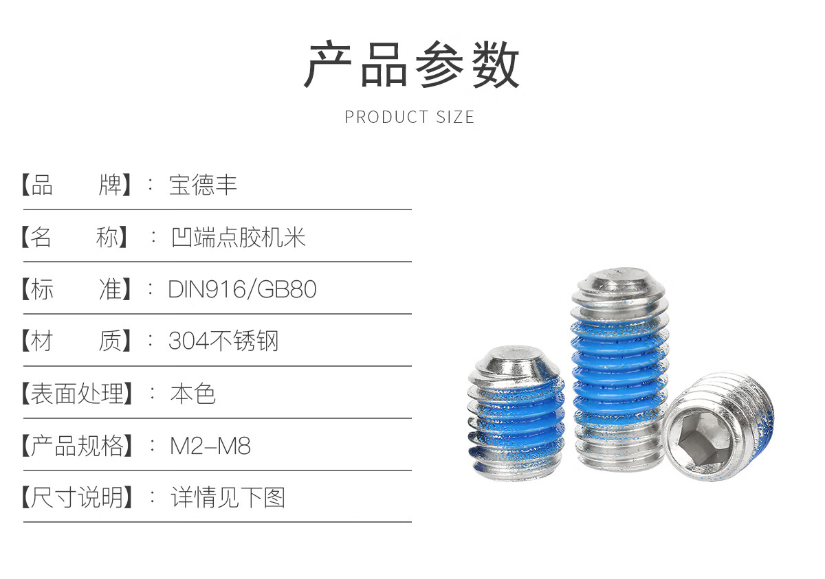 宝德丰304不锈钢无头内六角点胶凹端紧定机米涂蓝胶螺丝钉防松防滑顶丝 M2.5x4(50只)