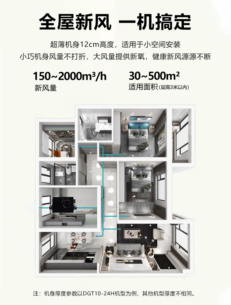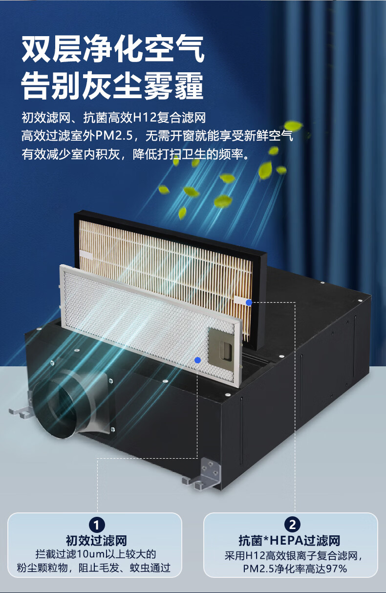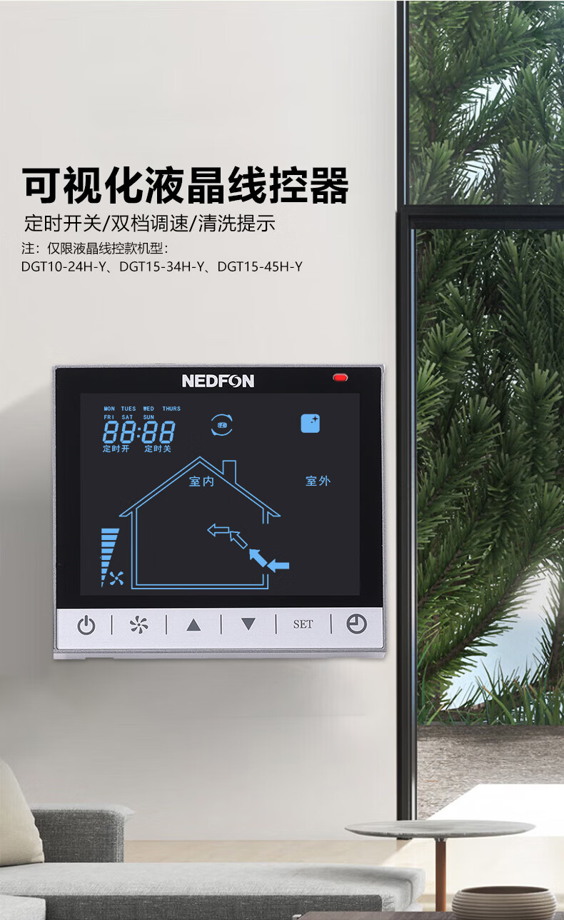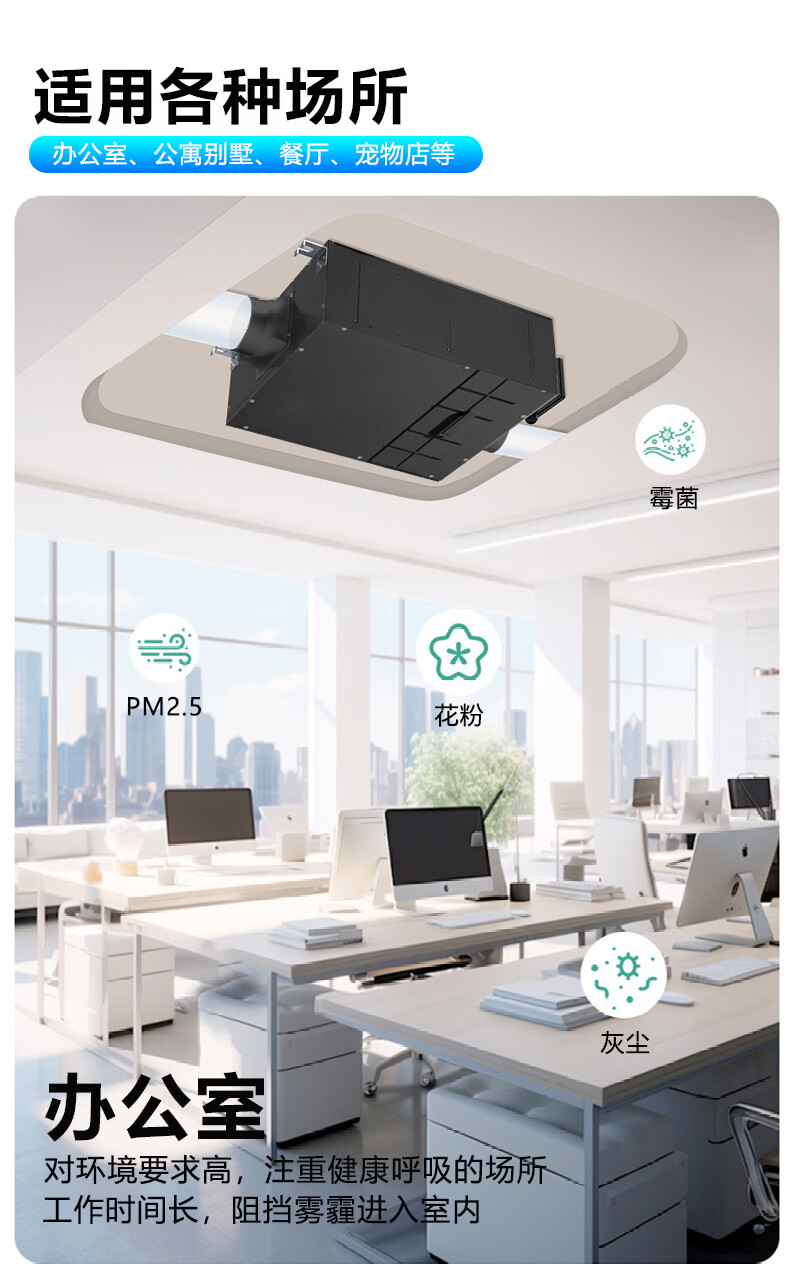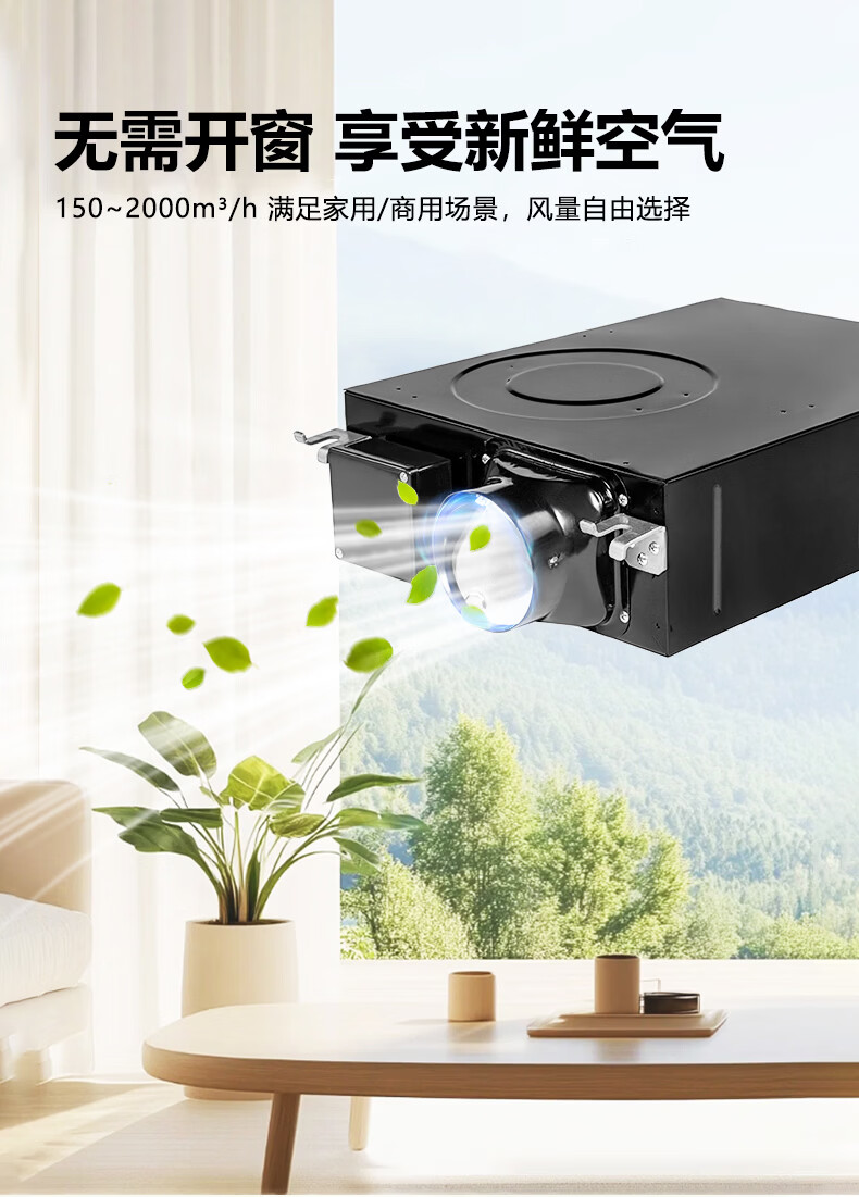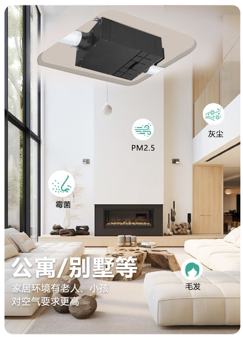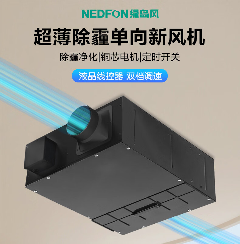 绿岛风(Nedfon)超薄单向新风机家用过滤PM2.5除霾办公室吊顶管道式全屋新风系统 吊顶式 150m³/h 40-59㎡