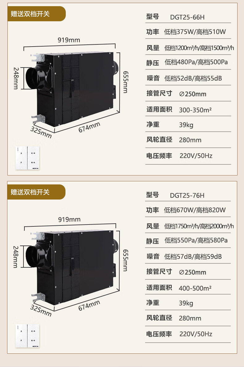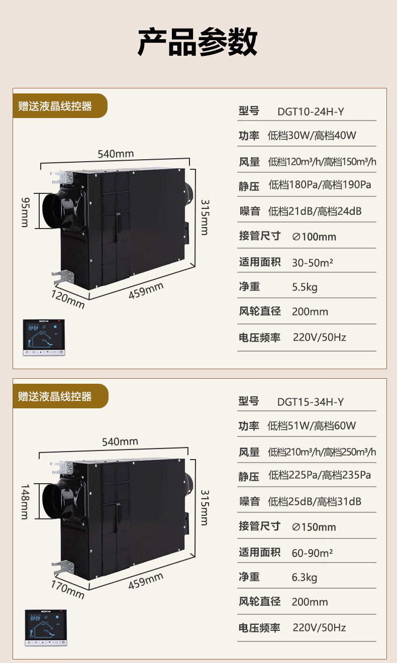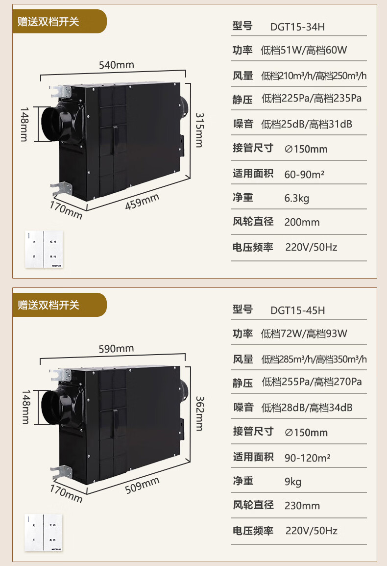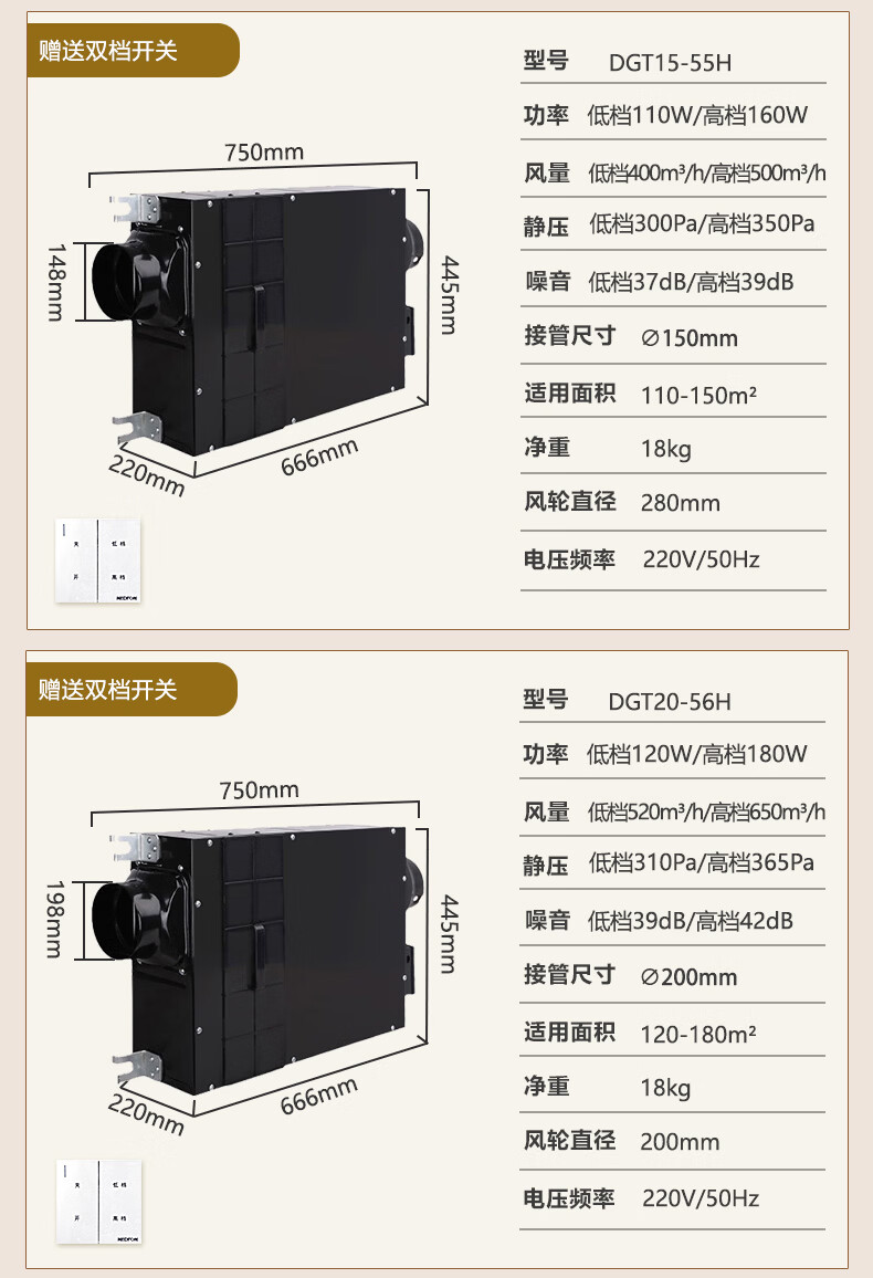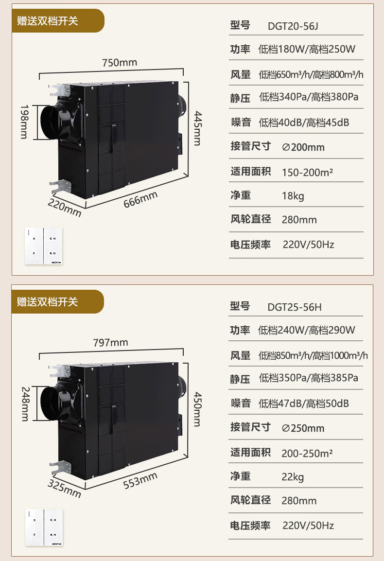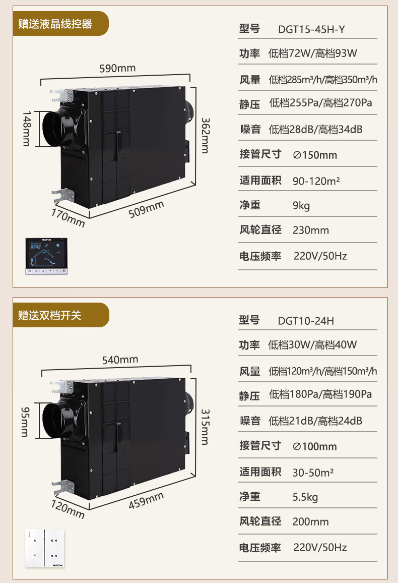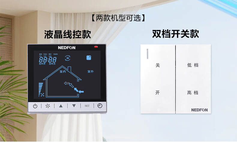 绿岛风(Nedfon)超薄单向新风机家用过滤PM2.5除霾办公室吊顶管道式全屋新风系统 吊顶式 150m³/h 40-59㎡