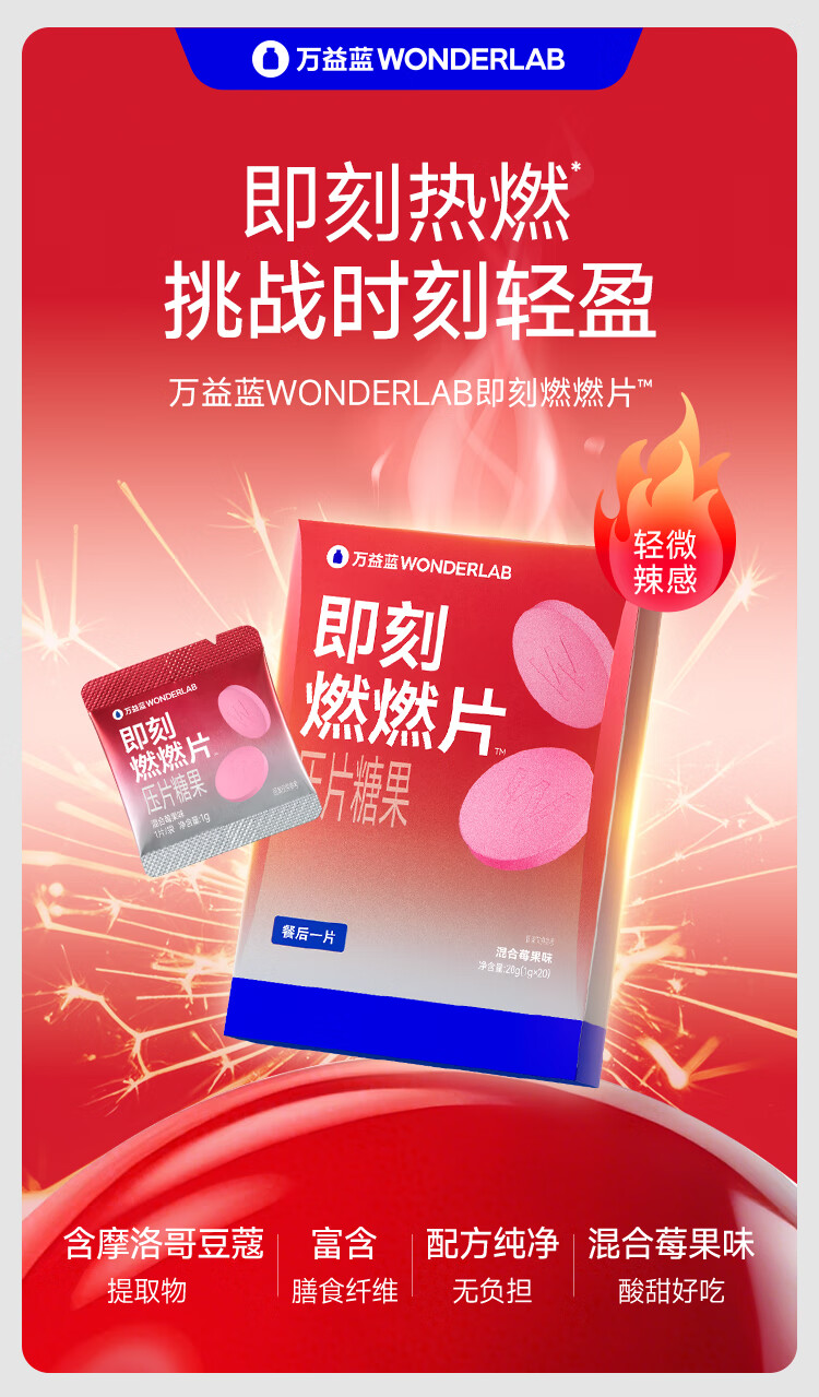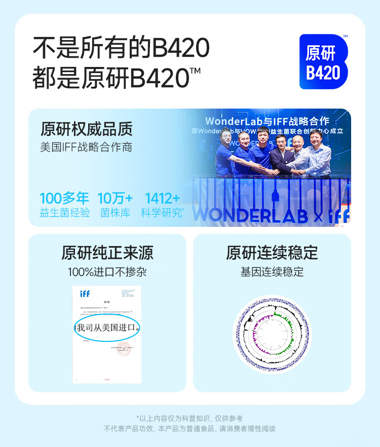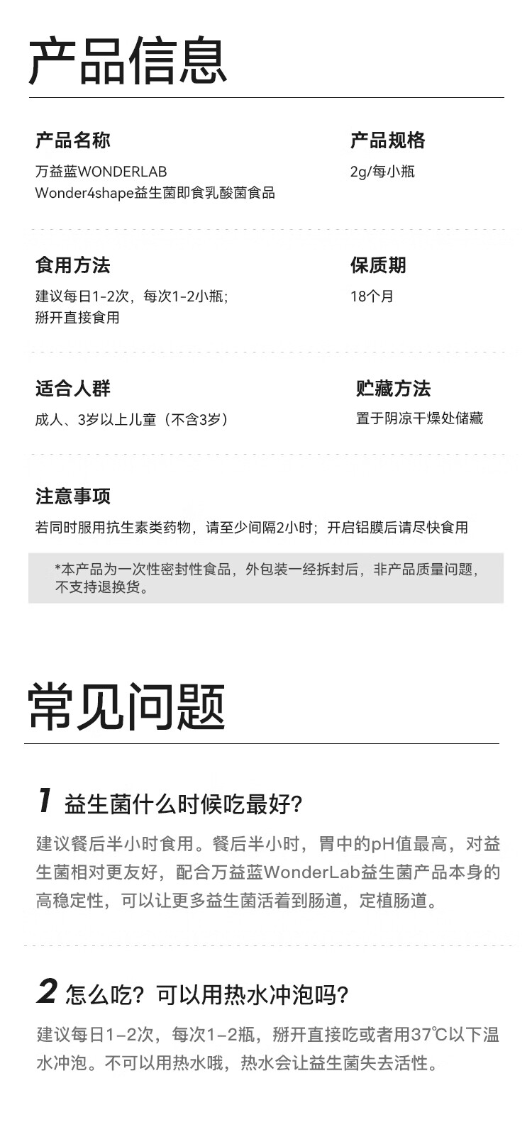 万益蓝(WONDERLAB)成人B420益生菌 浅蓝小蓝瓶成人益生菌粉200亿益生元 燃燃片压片 【80%用户选择拍2】京仓配送-10瓶*2盒